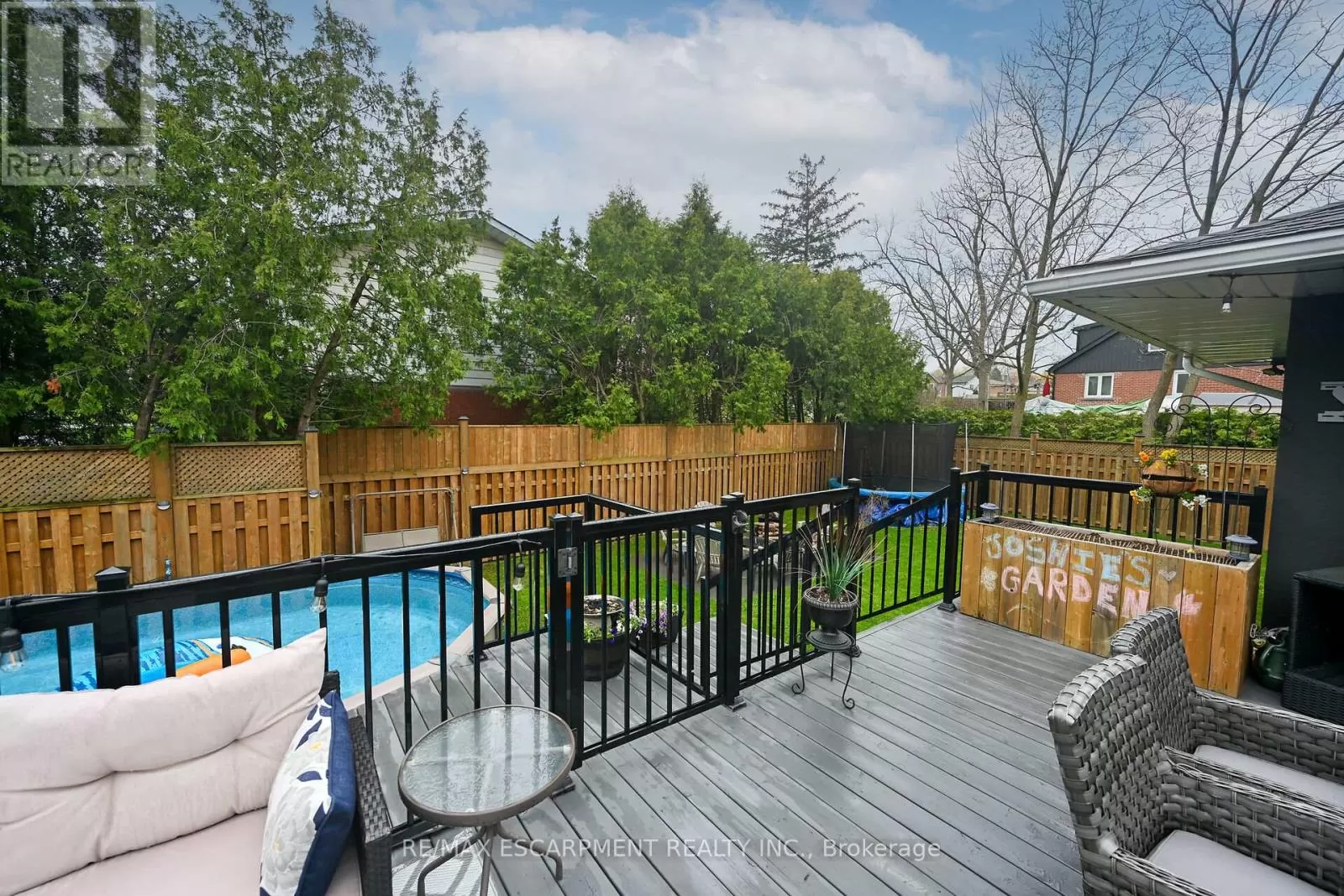 Cross Streets: Garth Rd and Sanitorium Rd. ** Directions: Garth Rd to Sanatorium. Welcome to 205 Sanatorium Rd! Located in the highly sought after Westcliffe family friendly neighbourhood, close to most amenities includingnature trails, schools and Mohawk College, shopping (Meadowlands Plaza and Upper James shops), public transit plus a short drive to downtownHamilton, Go Station and McMaster University, quick access to Linc, 403 and QEW! This home is impressive, sitting on a rare and oversizedcorner lot with 80 ft frontage, featuring large and well-appointed rooms. As you enter you will find a welcoming foyer leading you to the livingroom with large picture window and linear fireplace. There is a chefs dream kitchen, with stainless steel appliances including a gas stove,granite countertops, tons of modern cabinetry and a huge centre island measuring 5 x 7, this kitchen is not only for cooking but for family andfriends to gather! There is a large and bright dining room, two main floor bedrooms, laundry room, a two piece bathroom and a four piecebathroom with walk in shower and free-standing tub. Upstairs you will find two more bedrooms, a perfect teenage retreat or home office! Thelower level features a self contained inlaw suite with a modern kitchen, two bedrooms with lots of closet space, three piece bathroom andseparate laundry. The rear yard oasis is stunning and is extremely private and peaceful; multi level decks, above ground heated swimming pool,fire pit patio area, newer fencing. Other features and updates include; mature lot with extensive landscaping, newer garden walls and concretewalkways, recently paved driveway to park approximately 5 cars, attached garage, roof approx. 4 yrs, forced air furnace and A/C unit 2 yrs,almost all windows approx. 5 yrs, 200 amp service. BONUS: City approved for a 500 SF main floor addition blueprints available. Dont miss thisopportunity to own this beautiful home! (id:27476)