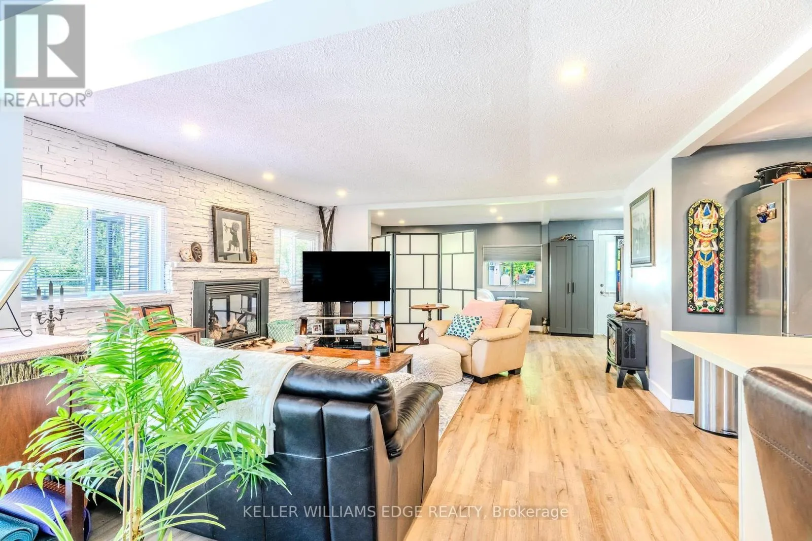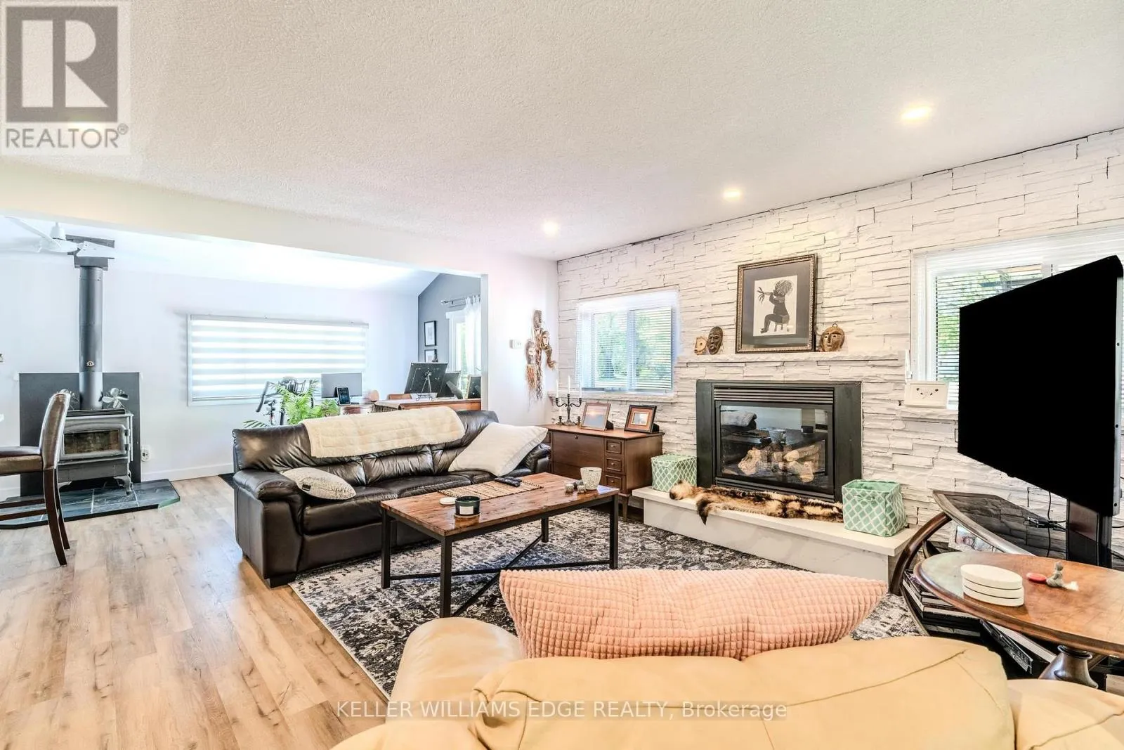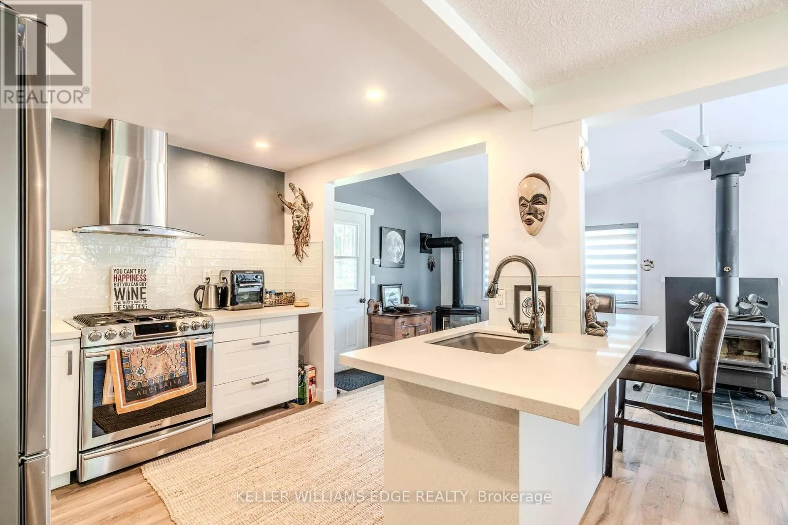 Cross Streets: Hwy#6 N/12th Concession. ** Directions: North on Highway #6, right on 12th Concession Rd E. Drive to end of the road, turn left into Fernbrook Park, keep to the right of the clubhouse, there is a road, pond will be on your left when driving, house just before bend on right. Welcome to the serene setting at Fernbrook Resort, a 50+ lifestyle cottage atmosphere w/clubhouse amenities including an indoor & outdoor pool. This open concept 1-bedroom home sits on a premium pie-shaped lot faces a pond and backs on to a forest!! Home has been recently renovated (2020) from top to bottom, has a beautiful beach vibe, a must see!! Vinyl plank flooring throughout, Caesarstone countertops, top of line appliances. The kitchen is open to the dining room and family room - great for entertaining. The family room boast a beautiful gas(propane) fireplace, the dining room also has a wood-burning stove. 3-piece bathroom, laundry room. Sunny large front deck for enjoying your morning coffee. There are 2 sheds, one on the side of the property and one in the rear for storage. The clubhouse includes tennis courts, indoor pool, gym, outdoor pool, hot tub and suntan deck. Centrally located for quick access to QEW and 401, Waterdown, Hamilton, Guelph, Cambridge. Units cannot be financed or used as collateral for a loan. Lot fees are approx. $801/Month to be verified with park management which includes lot, taxes, water, water testing, and use of the resort amenities. Hydro, propane extra. Buyer must be approved by the Park. (id:27476)