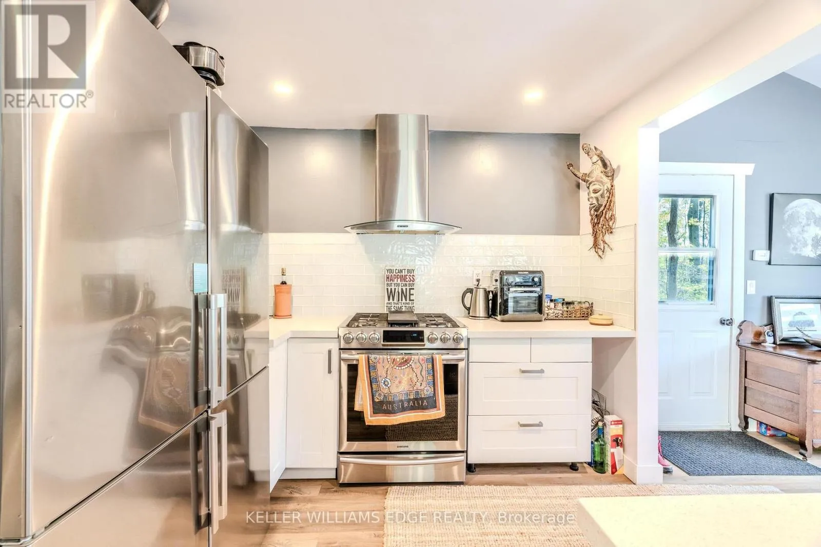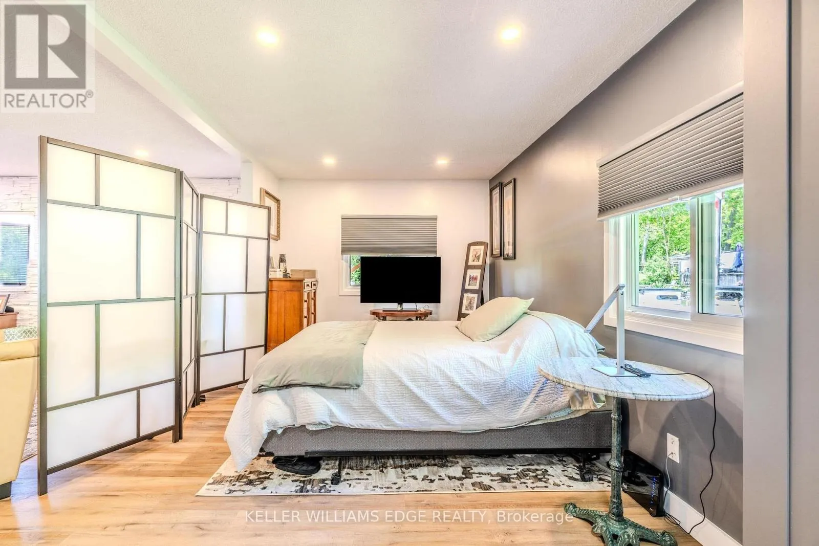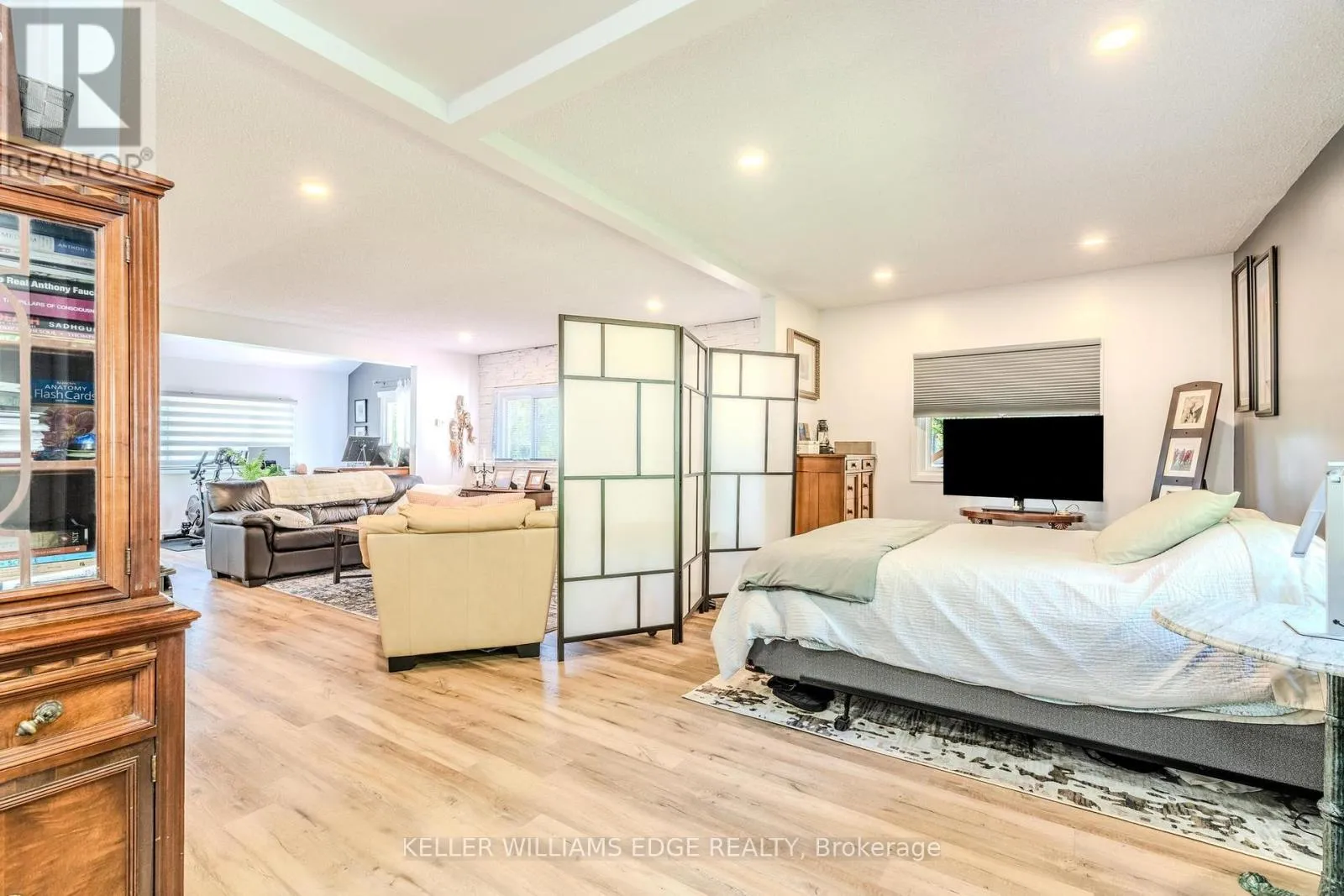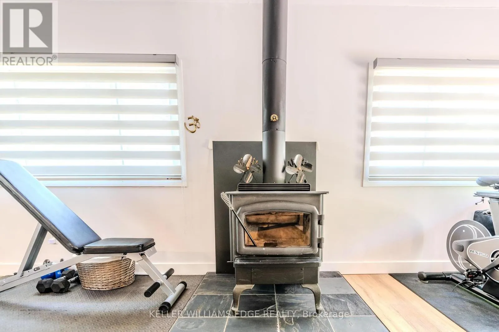 Cross Streets: Hwy#6 N/12th Concession. ** Directions: North on Highway #6, right on 12th Concession Rd E. Drive to end of the road, turn left into Fernbrook Park, keep to the right of the clubhouse, there is a road, pond will be on your left when driving, house just before bend on right. Welcome to the serene setting at Fernbrook Resort, a 50+ lifestyle cottage atmosphere w/clubhouse amenities including an indoor & outdoor pool. This open concept 1-bedroom home sits on a premium pie-shaped lot faces a pond and backs on to a forest!! Home has been recently renovated (2020) from top to bottom, has a beautiful beach vibe, a must see!! Vinyl plank flooring throughout, Caesarstone countertops, top of line appliances. The kitchen is open to the dining room and family room - great for entertaining. The family room boast a beautiful gas(propane) fireplace, the dining room also has a wood-burning stove. 3-piece bathroom, laundry room. Sunny large front deck for enjoying your morning coffee. There are 2 sheds, one on the side of the property and one in the rear for storage. The clubhouse includes tennis courts, indoor pool, gym, outdoor pool, hot tub and suntan deck. Centrally located for quick access to QEW and 401, Waterdown, Hamilton, Guelph, Cambridge. Units cannot be financed or used as collateral for a loan. Lot fees are approx. $801/Month to be verified with park management which includes lot, taxes, water, water testing, and use of the resort amenities. Hydro, propane extra. Buyer must be approved by the Park. (id:27476)