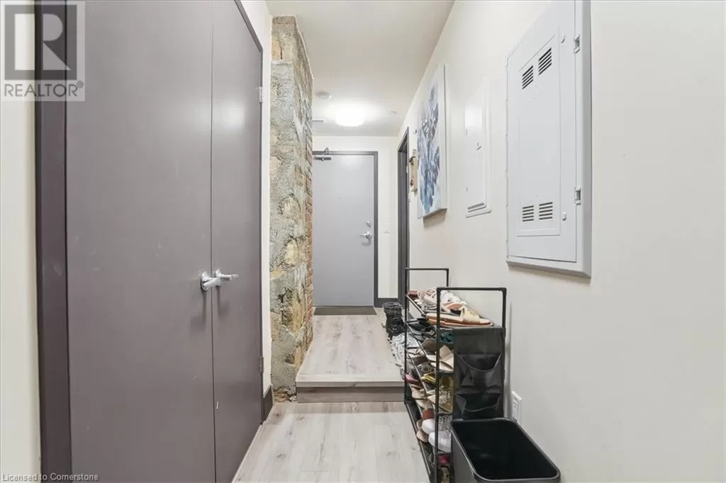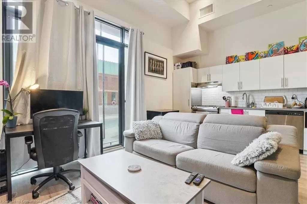 Intersection of King St E and Catherine St N Welcome to Gore Park Lofts, where convenience meets city living! This stunning one-bedroom unit offers a bright and modern space that maximizes every inch with impeccable design and a smooth, flowing layout. It embodies the essence of efficient living with high ceilings that creates a cozy yet expansive atmosphere. Ideally situated in close proximity to-the waterfront trail, art gallery, farmers market, GO station, hospital, and an assortment of unique restaurants and shopsâand conveniently located near McMaster University, this urban gem is waiting for you to call it home. (id:27476)