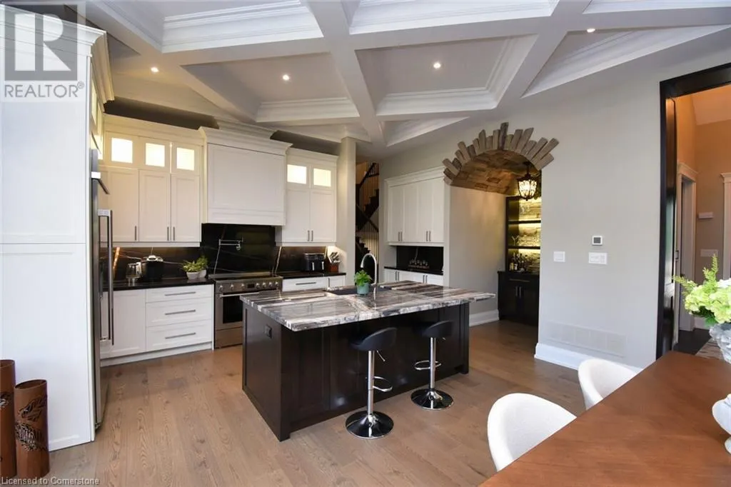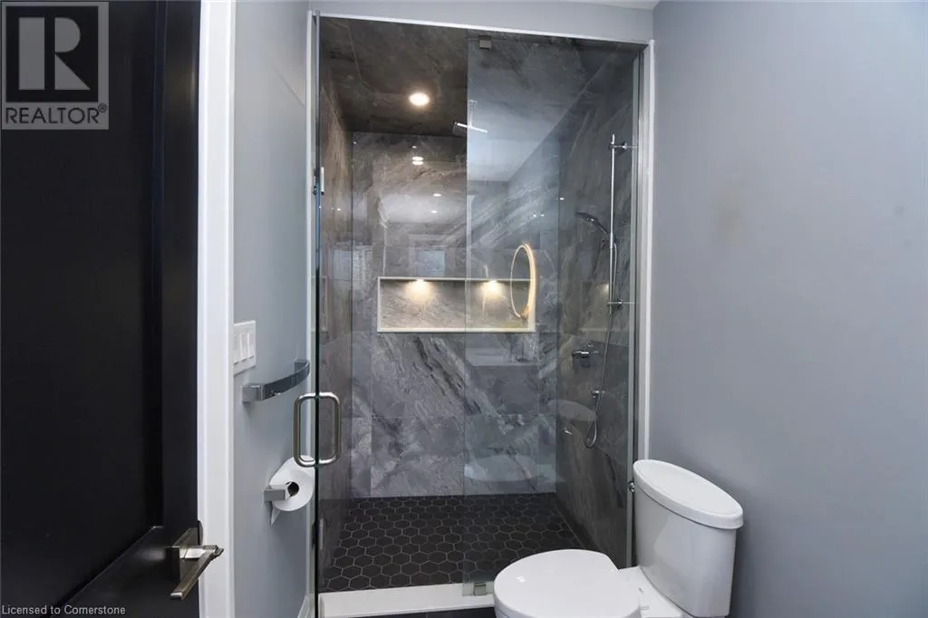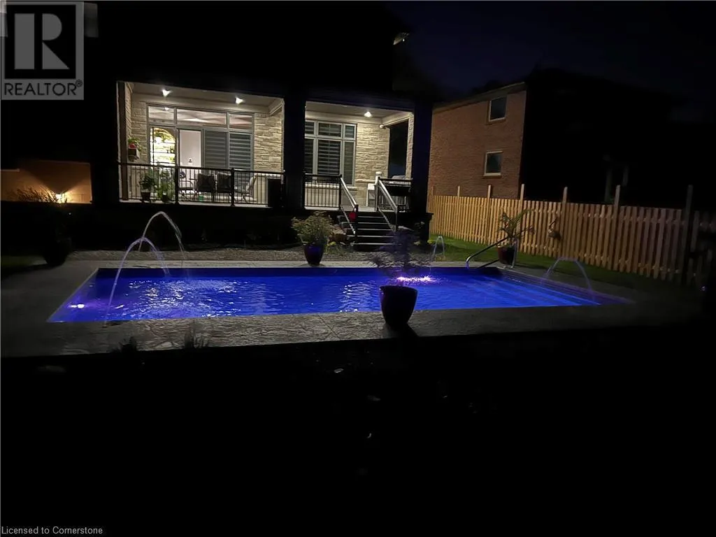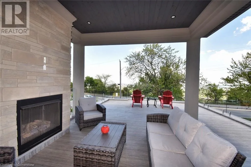 West of Upper Ottawa Stunning custom home on Hamilton's Mountain Brow with panoramic city & lake views from two levels! Features 11' coffered ceilings with crown moulding , private elevator, main floor bedroom with ensuite, powder room & dog wash. Upper-level family room with fireplace opens to a deck with spectular views. Backyard oasis includes saltwater pool, pool shed with remote shutter, outdoor fireplace & 2-pc bath. Three bedrooms upstairs with ensuites. Basement includes a 2-bed executive suite with separate laundry, heat & A/C. Parking for 8+ cars, 3-car garage, and 2 tankless water heaters. A rare luxury offering! (id:27476)