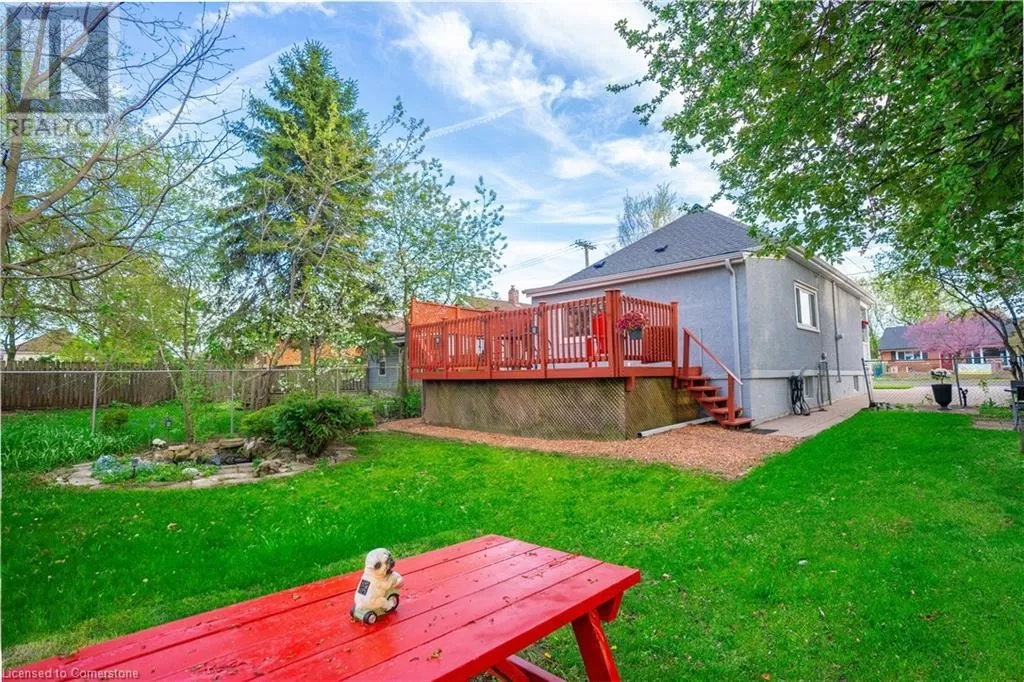 East 9th and Fennell Ave E Welcome to this Charming, 3+1 bedroom, 1 bathroom, All stucco bungalow in the highly sought after Centremount neighbourhood. This home sits on an impressive 113 foot deep lot surrounded by mature trees offering both comfort and privacy. The main floor features an enclosed foyer leading into a spacious living room including a brand new electric fireplace feature, new paint and great natural light partnered with 2 bedrooms. The main floor continues with a bright kitchen including entrances to the third main floor bedroom and 4 piece bathroom. The basement has been fully finished including a den, rec room and spacious 4th bedroom with updates including new paint and flooring throughout the entire space. The laundry room offers ample room for storage while maintaining laundry room functionality. As you enter the backyard, you'll be charmed by the large deck overlooking the pond feature surrounded by mature trees offering you privacy and a sense of seclusion, perfect for relaxing & entertaining. The home is located only minutes away from all essential amenities. Don't miss the opportunity to own this impressively well maintained all stucco bungalow on the Hamilton mountain. (id:27476)