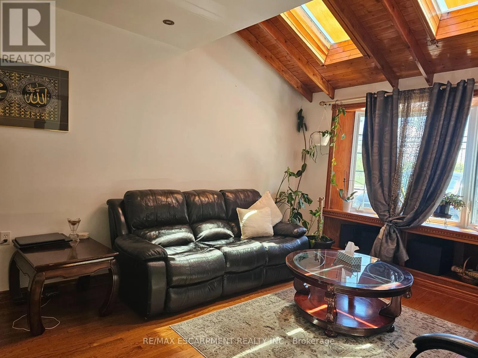 Cross Streets: UPPER JAMES. ** Directions: UPPER JAMES TURN EAST ON TWENTY RD. Great country setting on huge 66 x 250 ft deep tree lot. with lots of parking Yet only 1 minute drive to all City conveniences. Updates include marble entry. Large updated kitchen (2022) updated main bath with ensuite privilege 2022, family room with vaulted ceilings and gas fireplace,. Plenty of natural light with numerous skylights, enclosed Sun porch., Could possibly have potential for in-law set up .Quick easy access to the "Linc Expressway / Red Hill Expressway." Ideal for commuters to either Toronto or Niagara bound destinations. One of a kind excellent large lot for either building an addition or custom home (id:27476)