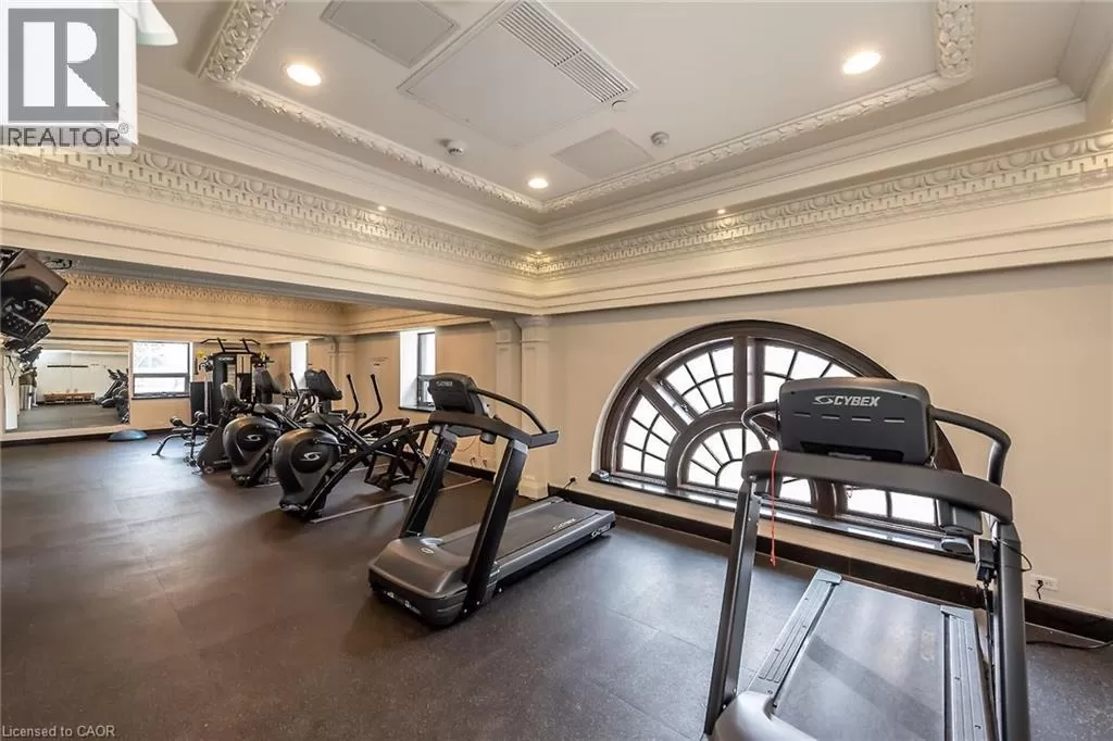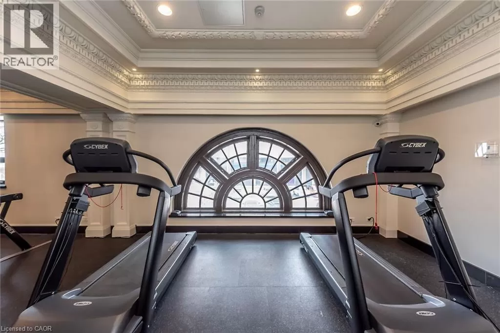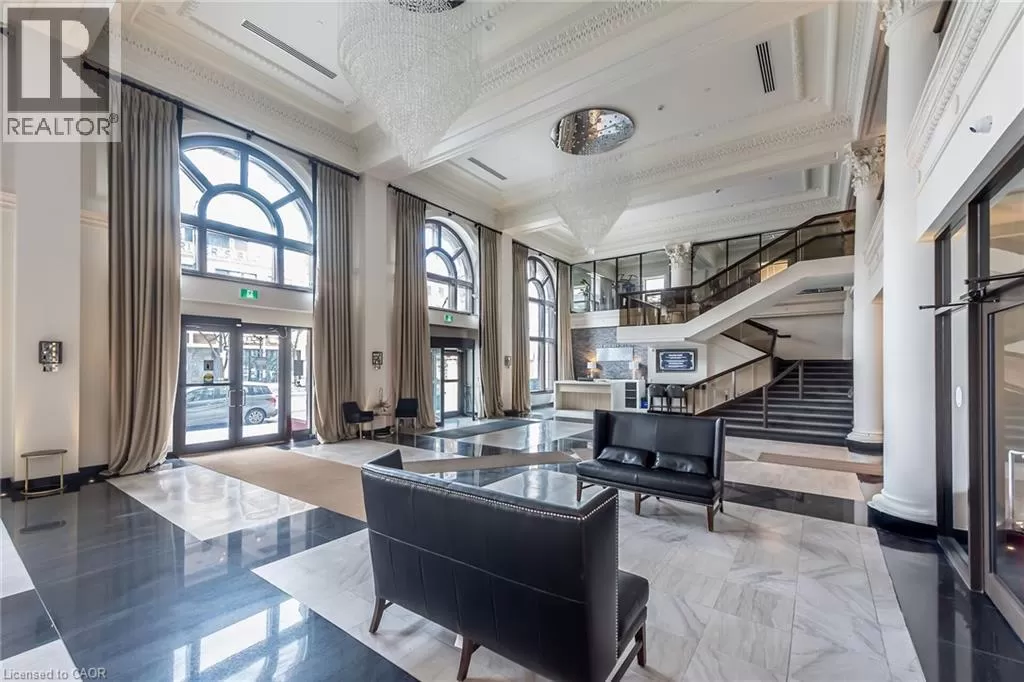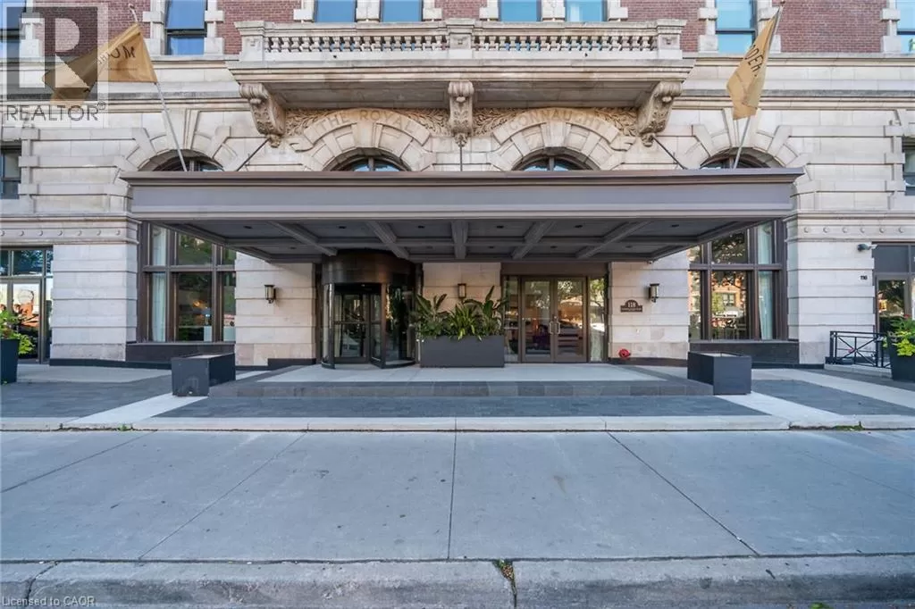 King Street East between John St and Catharine St. Awesome Gore Park location! Steps to all the best downtown Hamilton amenities! Trendy shops, great restaurants, Hamilton market, Gore Park, public transit & GO Station are all here! Downtown living at its best! An excellent location for health care professionals and students. Hamilton Health Sciences locations, McMaster University, and Columbia College are all nearby. This clean, freshly paiinted, carpet-free, 9th floor condo in the beautifully restored, historic Residence of Royal Connaught, has one underground parking spot included. There is in-suite laundry with white washer and dryer included, kitchen breakfast bar, and stainless steel kitchen appliances. An east-facing balcony and floor to ceiling windows provide awesome views overlooking the roof top terrace. You will enjoy the equipped gym, spectacular party room, media room & roof top terrace with comfortable seating, BBQ's and fireplace feature. This smoke-free building has 24 hour on-site security. Immediate possession is available. Don't miss this opportunity to be a part of the downtown Hamilton vibe! (id:27476)