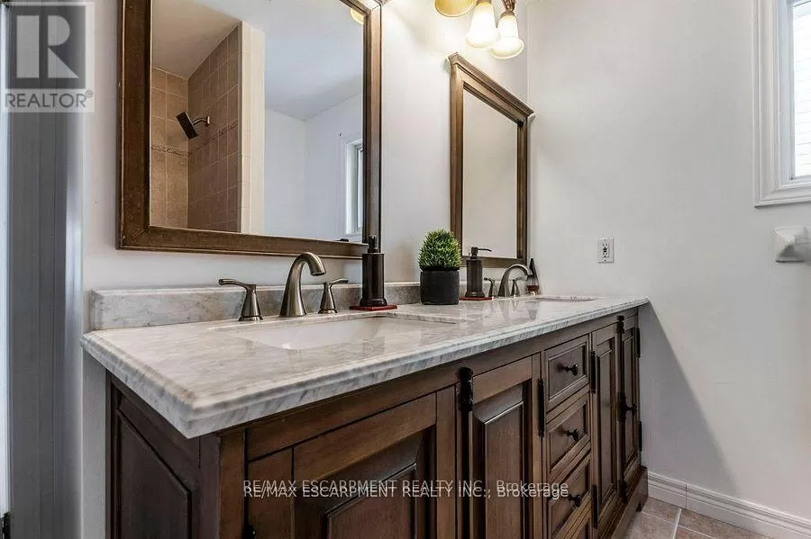 West on Rymal Road, Right on Spadara Drive Welcome to this gorgeous 4 level backsplit in a highly desirable West Mountain neighbourhood of Falkirk East. You will be sure enjoy the very spacious and open concept design of the main living area including Living room, dining room and kitchen with plenty of cabinets and quartz countertop, ideal for entertaining family and friends. The upper level boasts three bright bedrooms with the primary bedroom allowing access to the backyard with deck with newer Hot tub. The main bathroom is a good size and offers a double sink vanity with tasteful marble top. Go down a few steps to find a large family room/office, a cozy place to curl up and watch a movie or spend time with the kids. Another 3-piece bathroom and bedroom finishes off the level before you go down a few more stairs to the unfinished very spacious basement just waiting for you to make it your own. There is over 2600 Sq/Ft of living space in total. This property also offers an over sized attached garage with inside entry and concrete driveway. Located in an ideal area close to good schools, shopping, parks and Highway access. This is truly a must-see home. (id:27476)