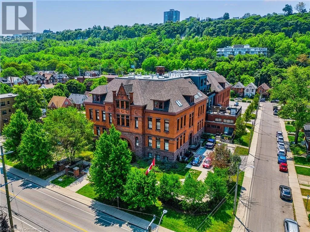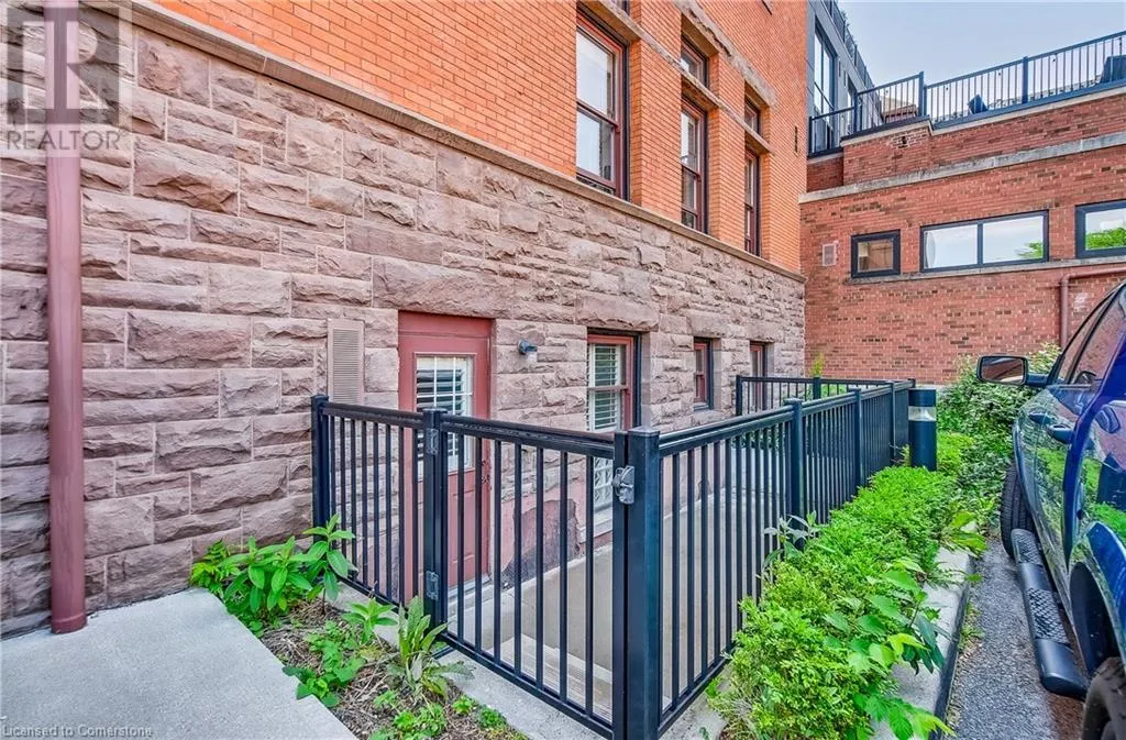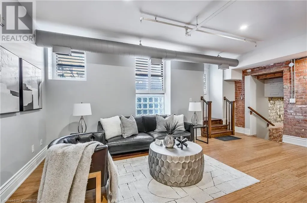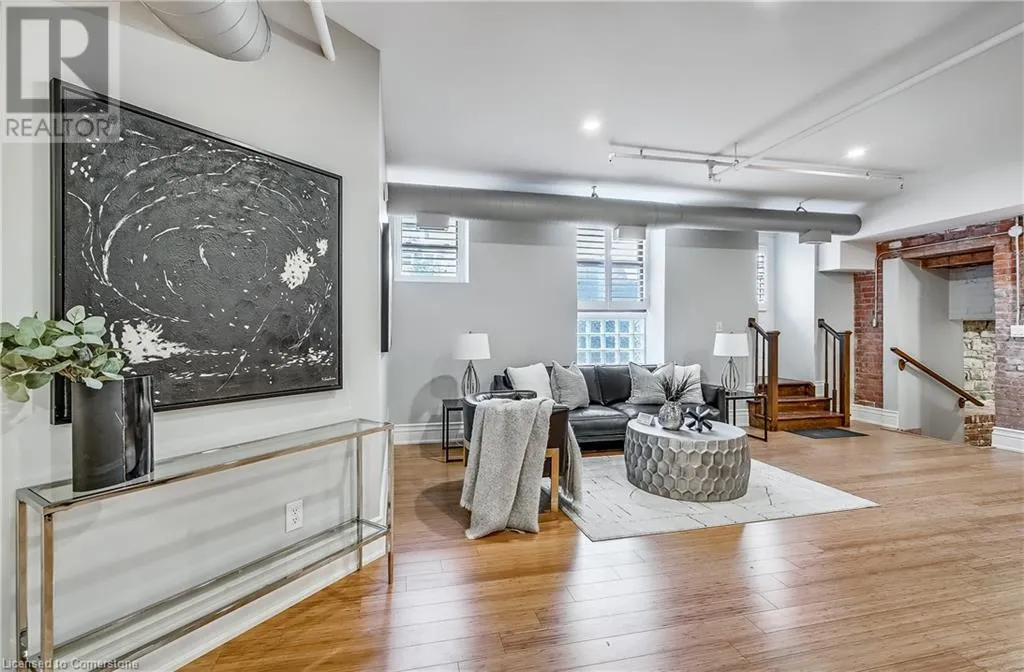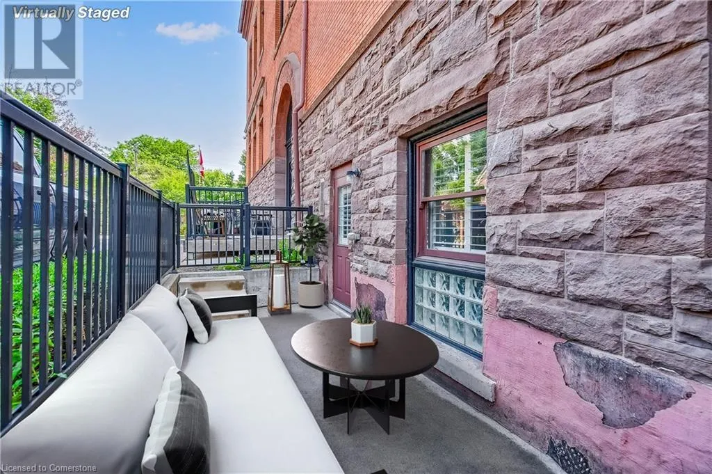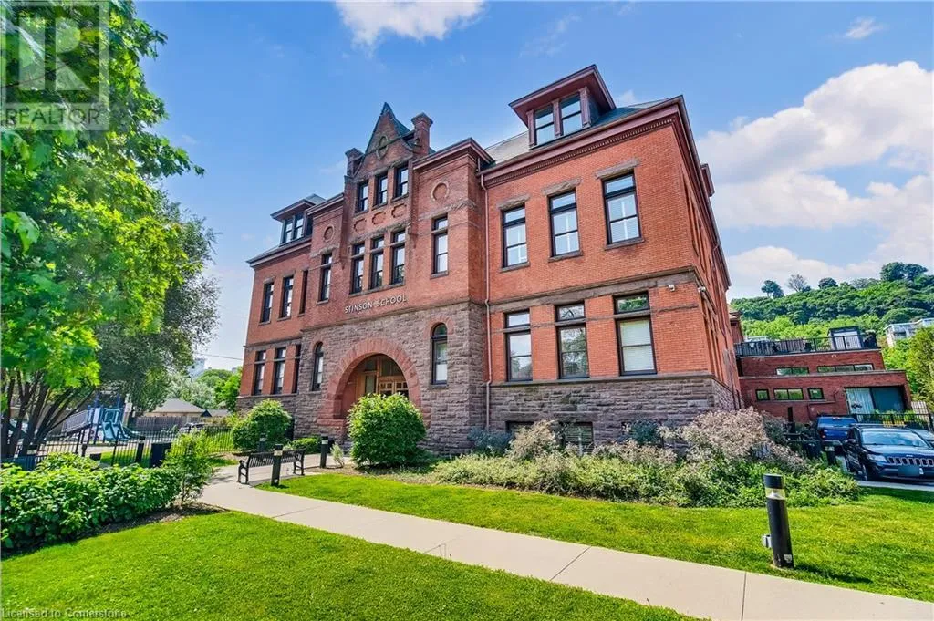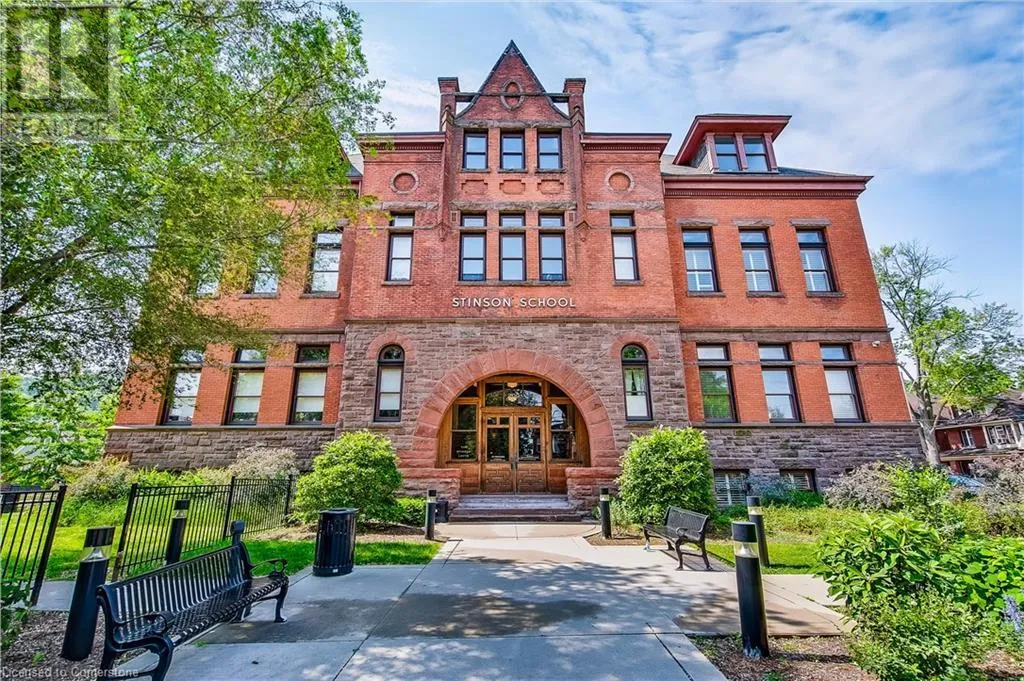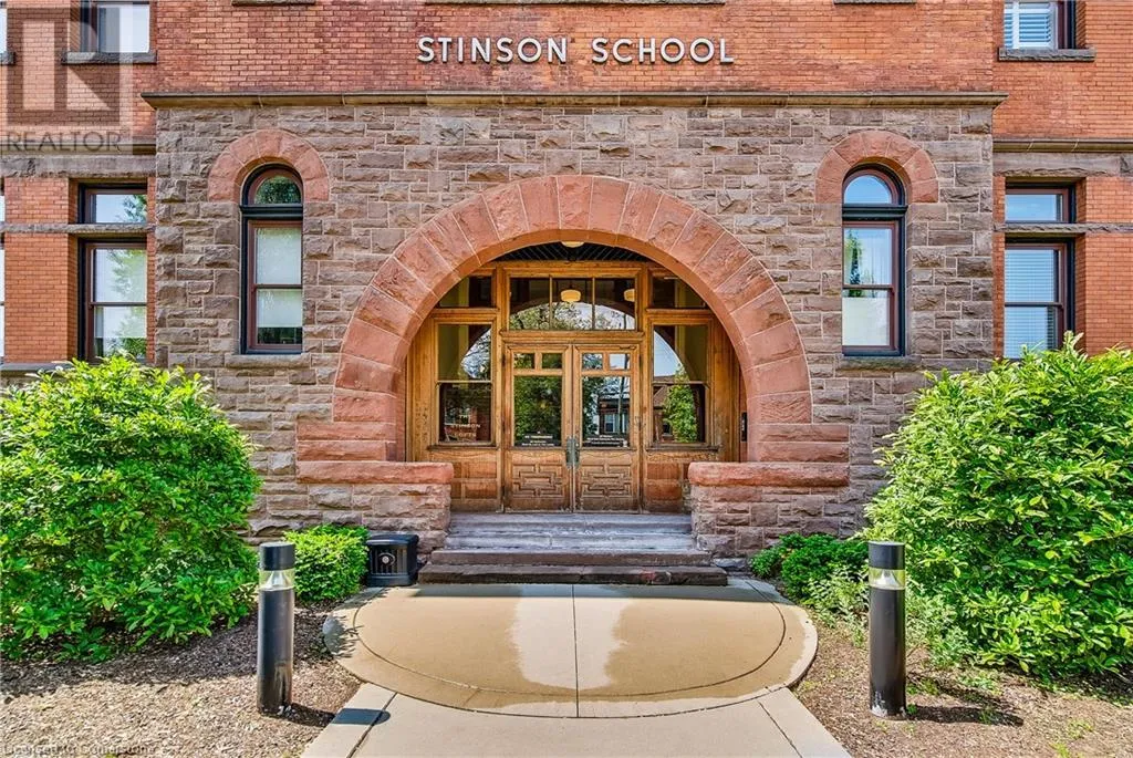 Stinson St between Wentworth St S & Victoria Ave Welcome to a showstopping, one-of-a-kind hard loft in the iconic Stinson School Lofts. Originally built in 1894 and thoughtfully converted into a boutique residential building, this landmark Victorian schoolhouse blends historic architecture with modern design in a way thatâs truly unmatched. This spacious ground-floor 1-bedroom, 1-bathroom loft boasts soaring ceilings, exposed brick walls, and industrial-style exposed ductwork, creating an authentic and edgy loft aesthetic. The expansive open-concept living area is filled with natural light and features updated pot lighting throughout, making it the perfect space to relax or entertain. A standout feature of this unit is the sunken denâan architectural gem that adds charm and flexibility. Whether used as a wine cellar, cozy office, or creative space, it brings a unique layer of character rarely found in todayâs condo market. The modern 3-piece bathroom includes a sleek glass shower, and the oversized concrete patio offers a private outdoor retreatâideal for morning coffee, evening cocktails, or even a small garden setup. Located just minutes from Hamiltonâs vibrant downtown, the Wentworth Stairs, and Escarpment trails, this home offers the perfect balance of urban lifestyle and nature. The Stinson School Lofts is a pet-friendly building with a strong sense of community, ideal for professionals, creatives, and anyone seeking a space that stands apart. (id:27476)