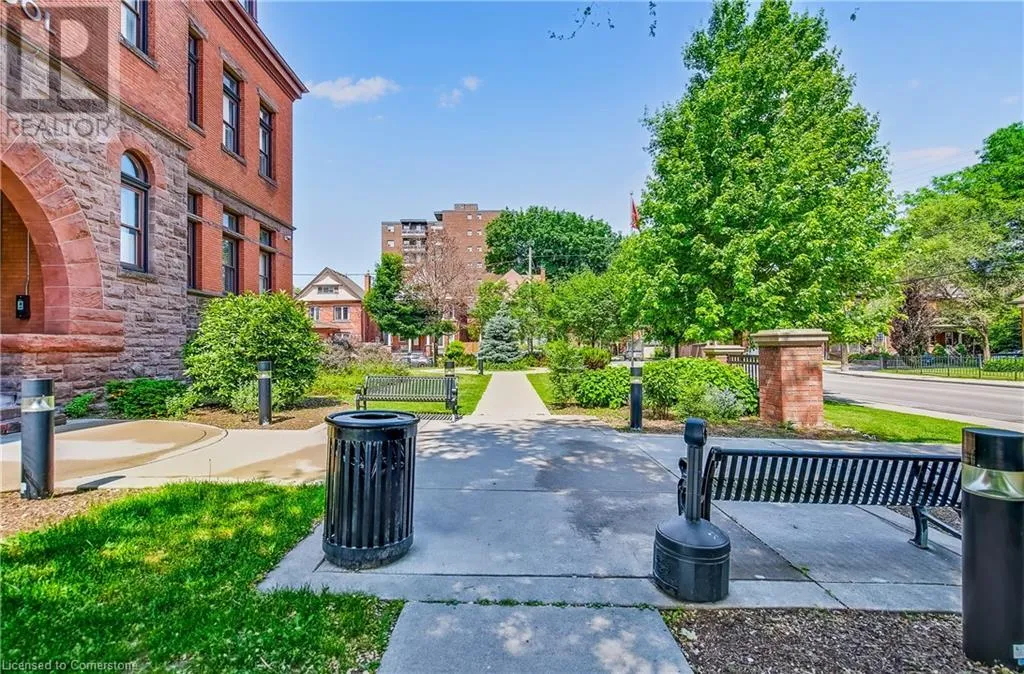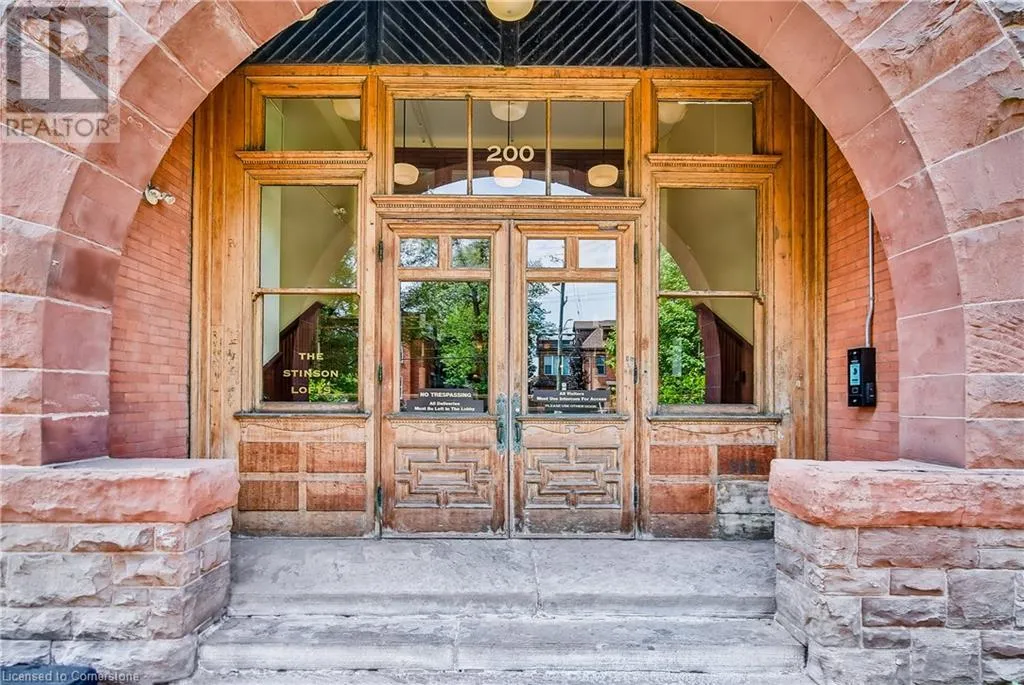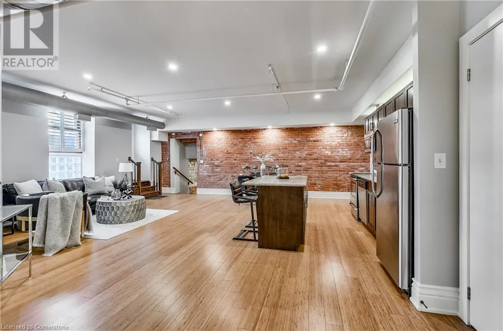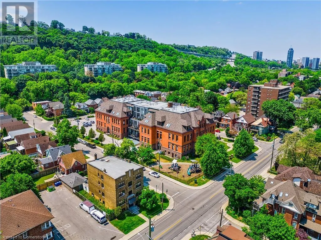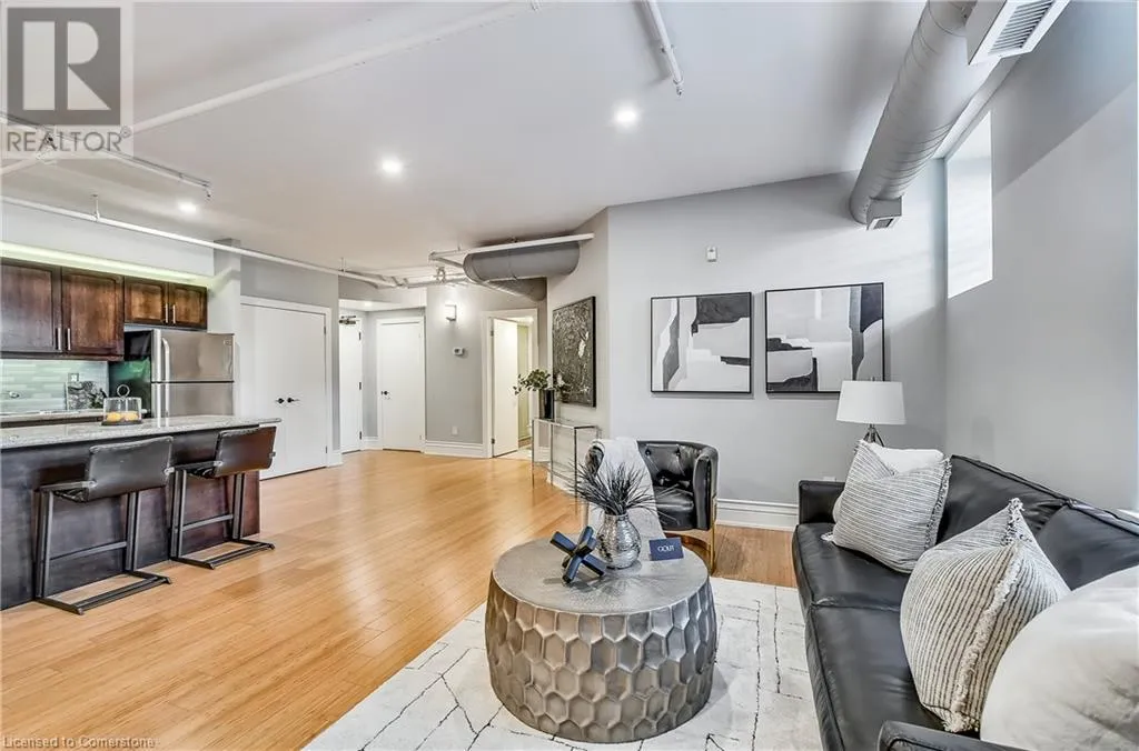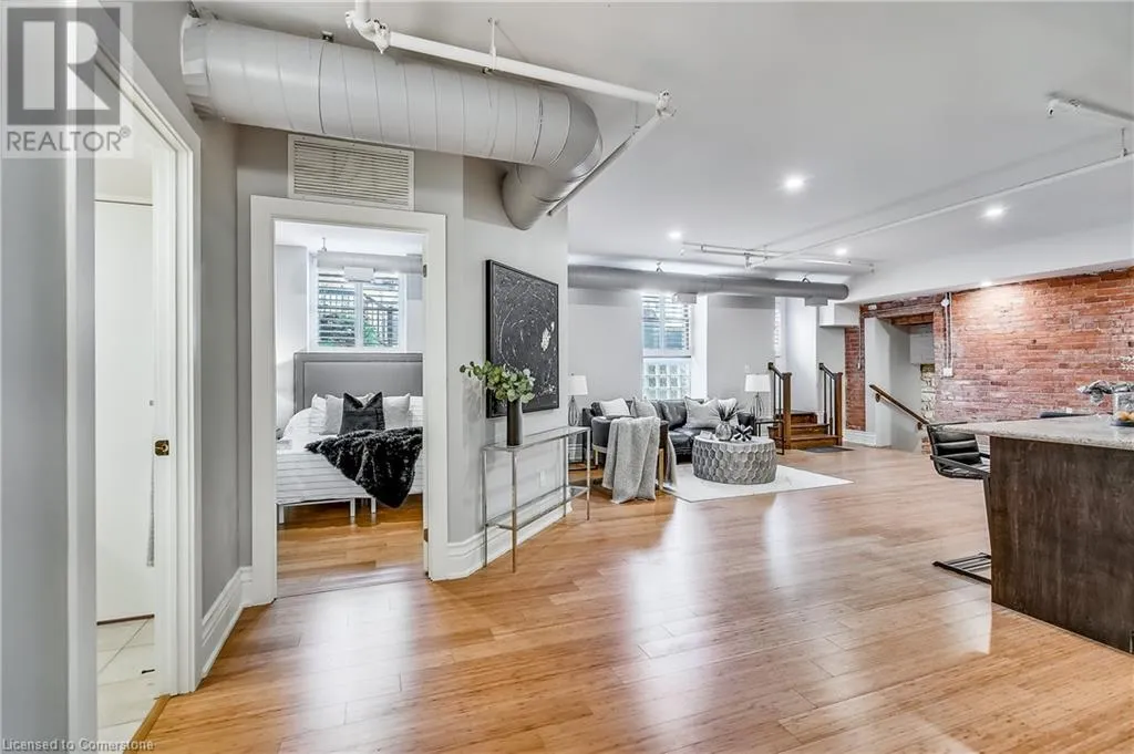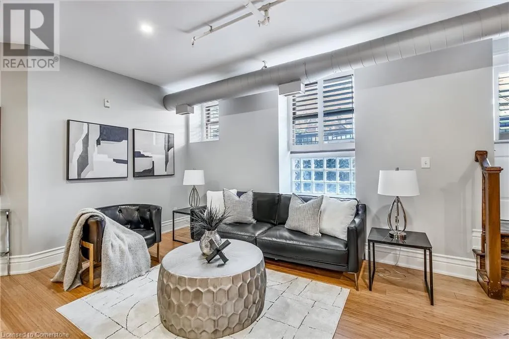 Stinson St between Wentworth St S & Victoria Ave Welcome to a showstopping, one-of-a-kind hard loft in the iconic Stinson School Lofts. Originally built in 1894 and thoughtfully converted into a boutique residential building, this landmark Victorian schoolhouse blends historic architecture with modern design in a way thatâs truly unmatched. This spacious ground-floor 1-bedroom, 1-bathroom loft boasts soaring ceilings, exposed brick walls, and industrial-style exposed ductwork, creating an authentic and edgy loft aesthetic. The expansive open-concept living area is filled with natural light and features updated pot lighting throughout, making it the perfect space to relax or entertain. A standout feature of this unit is the sunken denâan architectural gem that adds charm and flexibility. Whether used as a wine cellar, cozy office, or creative space, it brings a unique layer of character rarely found in todayâs condo market. The modern 3-piece bathroom includes a sleek glass shower, and the oversized concrete patio offers a private outdoor retreatâideal for morning coffee, evening cocktails, or even a small garden setup. Located just minutes from Hamiltonâs vibrant downtown, the Wentworth Stairs, and Escarpment trails, this home offers the perfect balance of urban lifestyle and nature. The Stinson School Lofts is a pet-friendly building with a strong sense of community, ideal for professionals, creatives, and anyone seeking a space that stands apart. (id:27476)