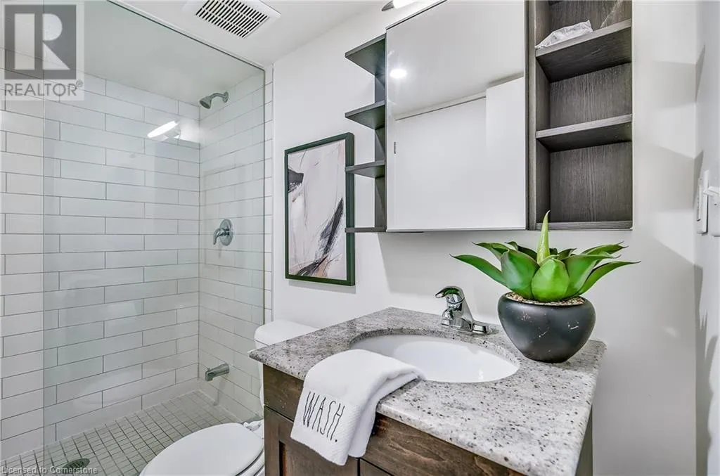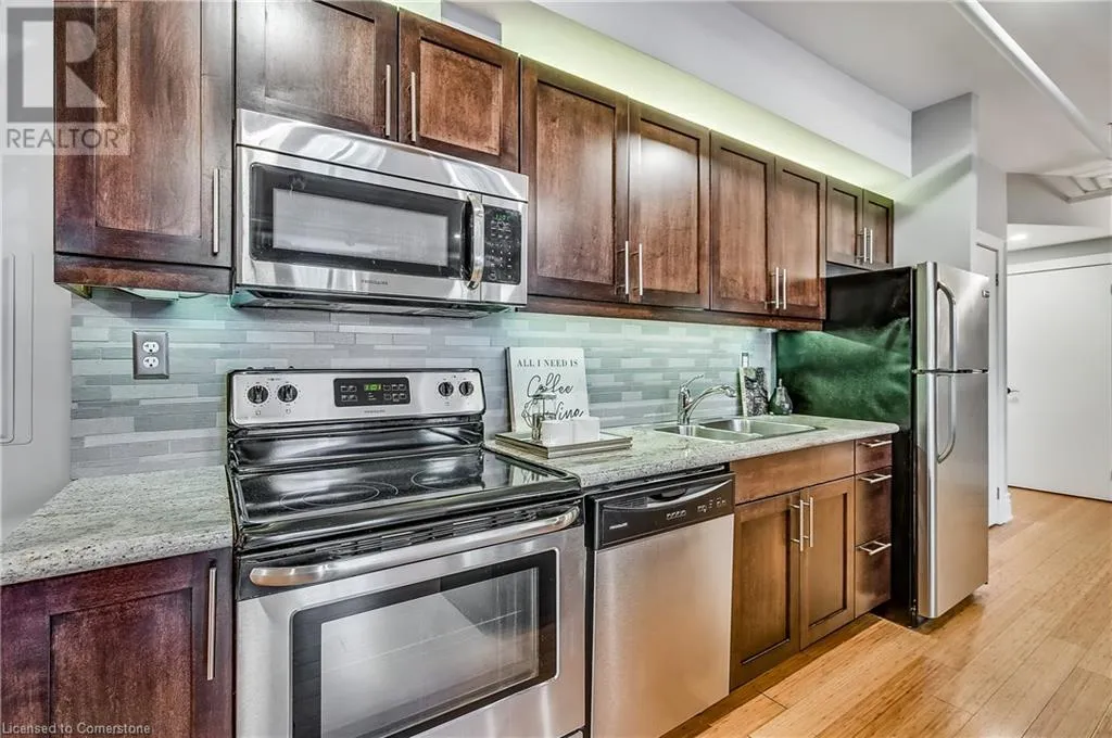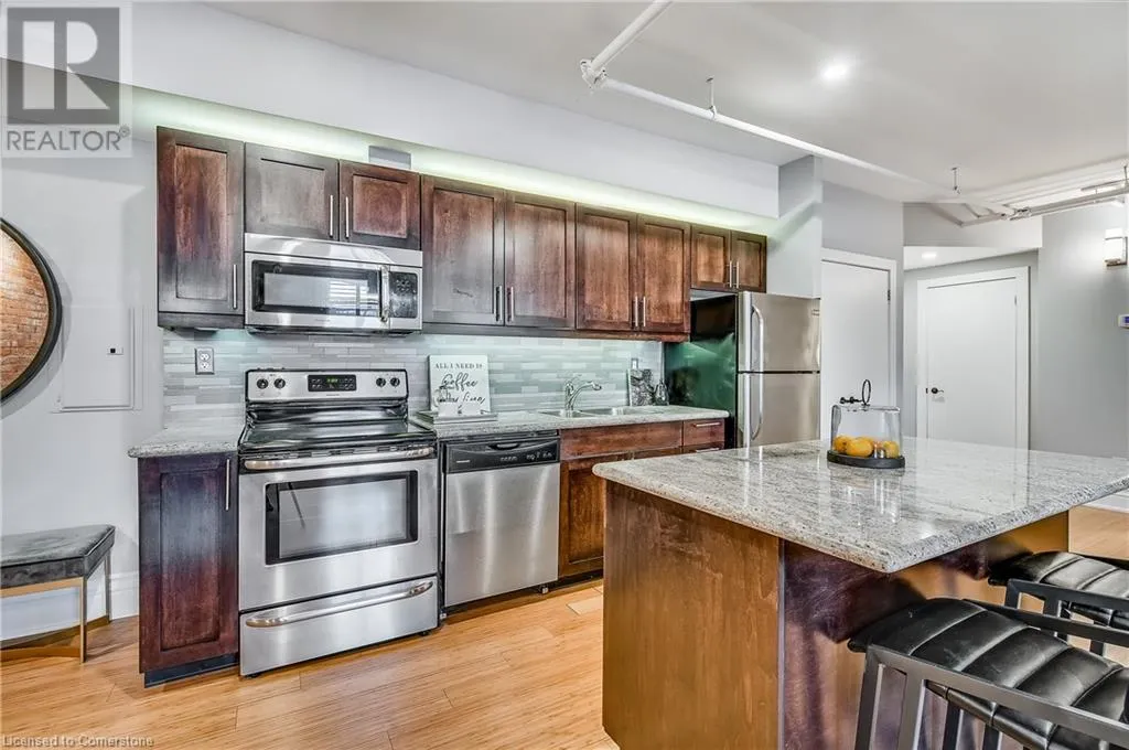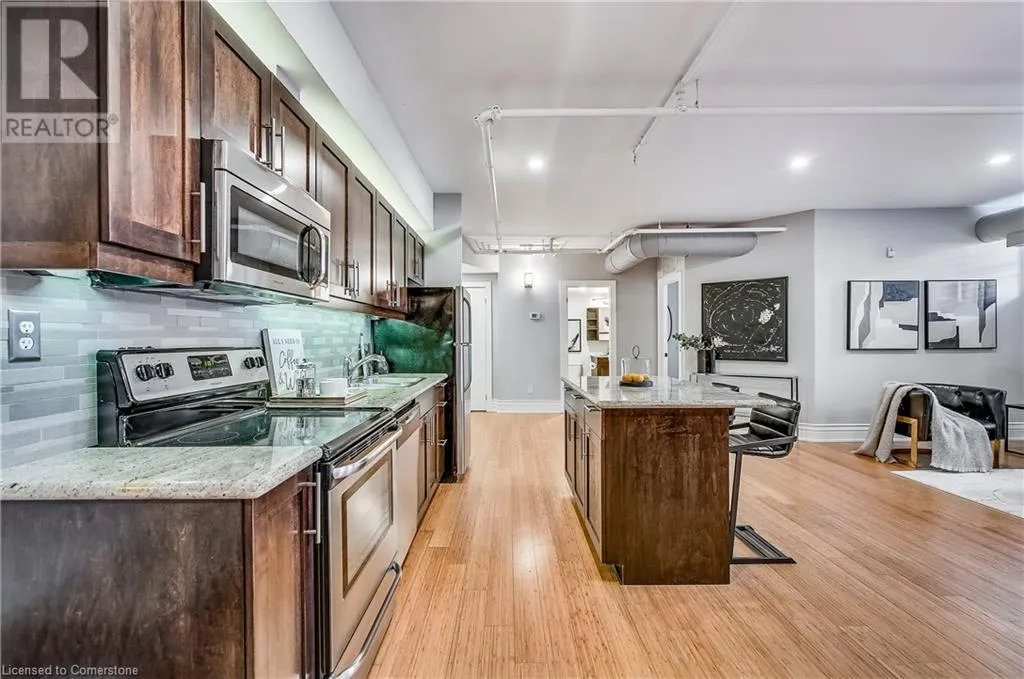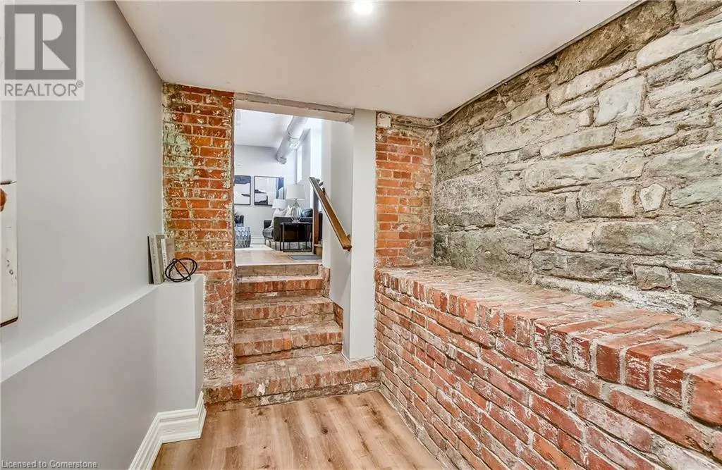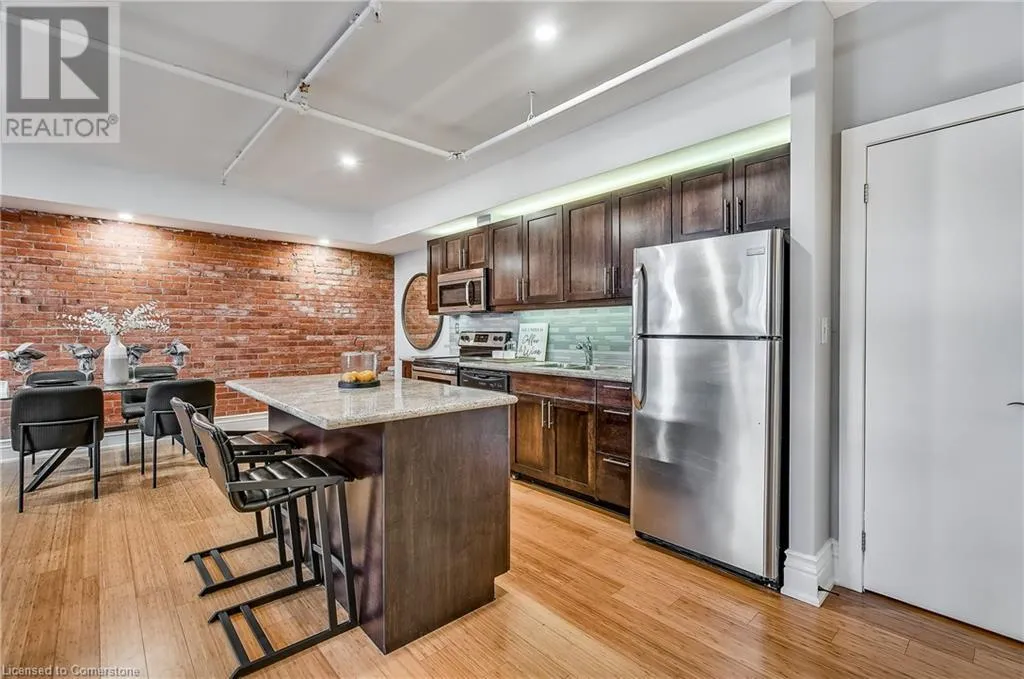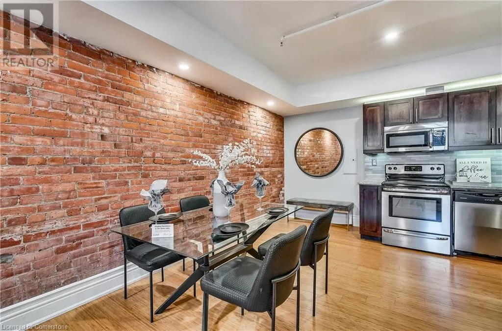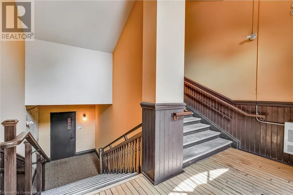 Stinson St between Wentworth St S & Victoria Ave Welcome to a showstopping, one-of-a-kind hard loft in the iconic Stinson School Lofts. Originally built in 1894 and thoughtfully converted into a boutique residential building, this landmark Victorian schoolhouse blends historic architecture with modern design in a way thatâs truly unmatched. This spacious ground-floor 1-bedroom, 1-bathroom loft boasts soaring ceilings, exposed brick walls, and industrial-style exposed ductwork, creating an authentic and edgy loft aesthetic. The expansive open-concept living area is filled with natural light and features updated pot lighting throughout, making it the perfect space to relax or entertain. A standout feature of this unit is the sunken denâan architectural gem that adds charm and flexibility. Whether used as a wine cellar, cozy office, or creative space, it brings a unique layer of character rarely found in todayâs condo market. The modern 3-piece bathroom includes a sleek glass shower, and the oversized concrete patio offers a private outdoor retreatâideal for morning coffee, evening cocktails, or even a small garden setup. Located just minutes from Hamiltonâs vibrant downtown, the Wentworth Stairs, and Escarpment trails, this home offers the perfect balance of urban lifestyle and nature. The Stinson School Lofts is a pet-friendly building with a strong sense of community, ideal for professionals, creatives, and anyone seeking a space that stands apart. (id:27476)