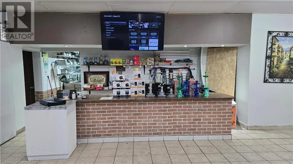 NW corner of Upper James Street & Genesee Street Welcome to this one of a kind 2-in-1 business each with their own dedicated entrance located right on Upper James Street, Hamilton's busiest business corridor, 50k cars daily! ample seating, currently serving traditional Middle Eastern sandwiches, breads, pastries, pies, salads, plus typical fare such as pizzas, wings, poutines, fries and more. Continue same use or indulge into new menu, The possibilities are endless. Approx. 2000sqft of space at a VERY cheap rent. Ample parking on site. Must see! (id:27476)
