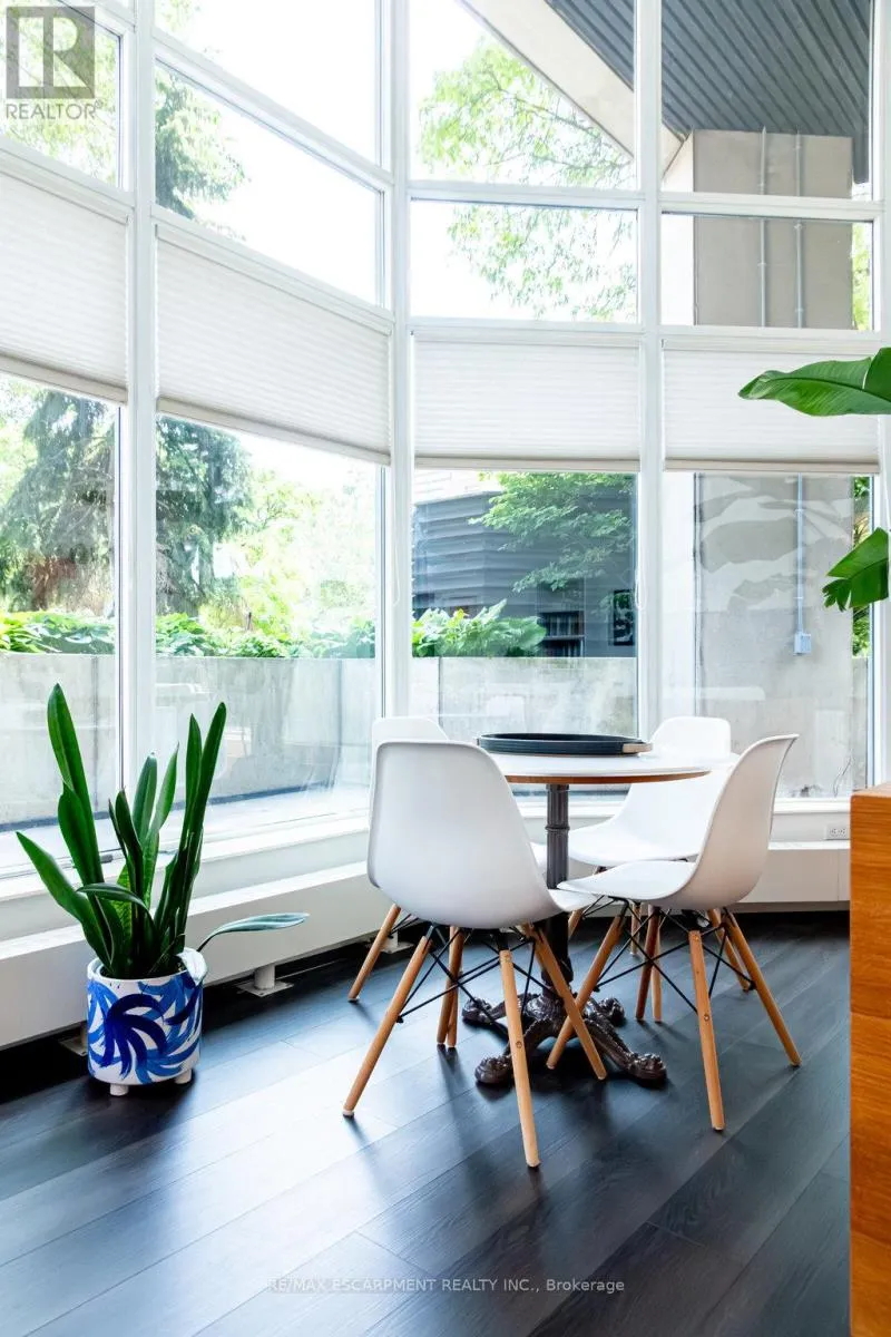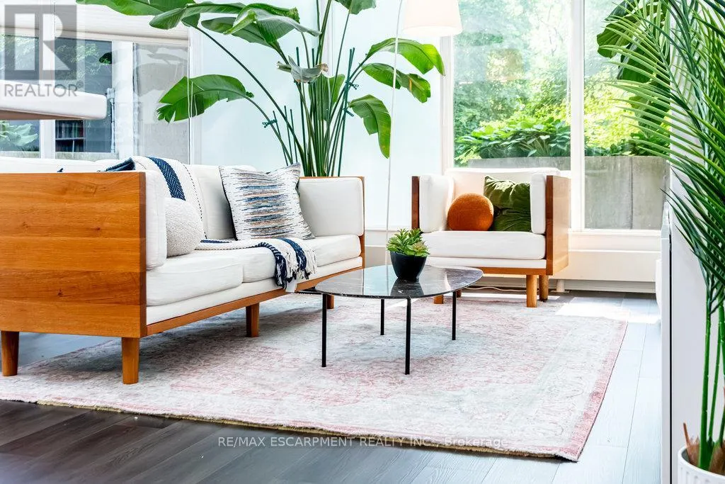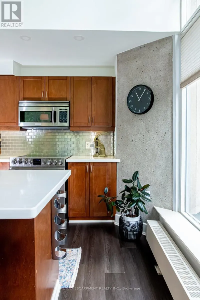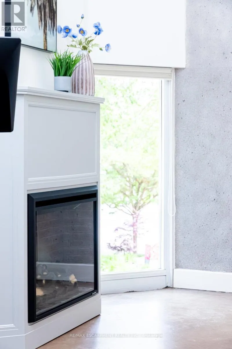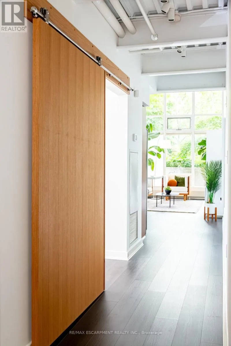 Main St W to Bay St S Welcome to the Core Lofts in beautiful Durand North, where city living meets comfort and style. Tucked away in a prime location, this building offers the perfect blend of convenience and tranquility. Enjoy modern amenities including secure video-monitored entry, a fitness centre, a stylish party room and a breathtaking rooftop patio. This exceptional two-storey main-level loft offers over 1,300 square feet of thoughtfully upgraded living space. Designed with both function and flair, the home greets you with soaring ceilings and a dramatic feature wall. The main floor includes a spacious bedroom, a full bathroom, a contemporary open-concept kitchen and dining area that flows into a stunning living room. Here youre surrounded by panoramic windows and 24-foot ceilings that flood the space with natural light. Upstairs, a beautifully crafted maple staircase leads to your private primary retreat. Overlooking the main living area, this serene space features a generous bedroom with a cozy electric fireplace and a spa-like four-piece ensuite. RSA. (id:27476)