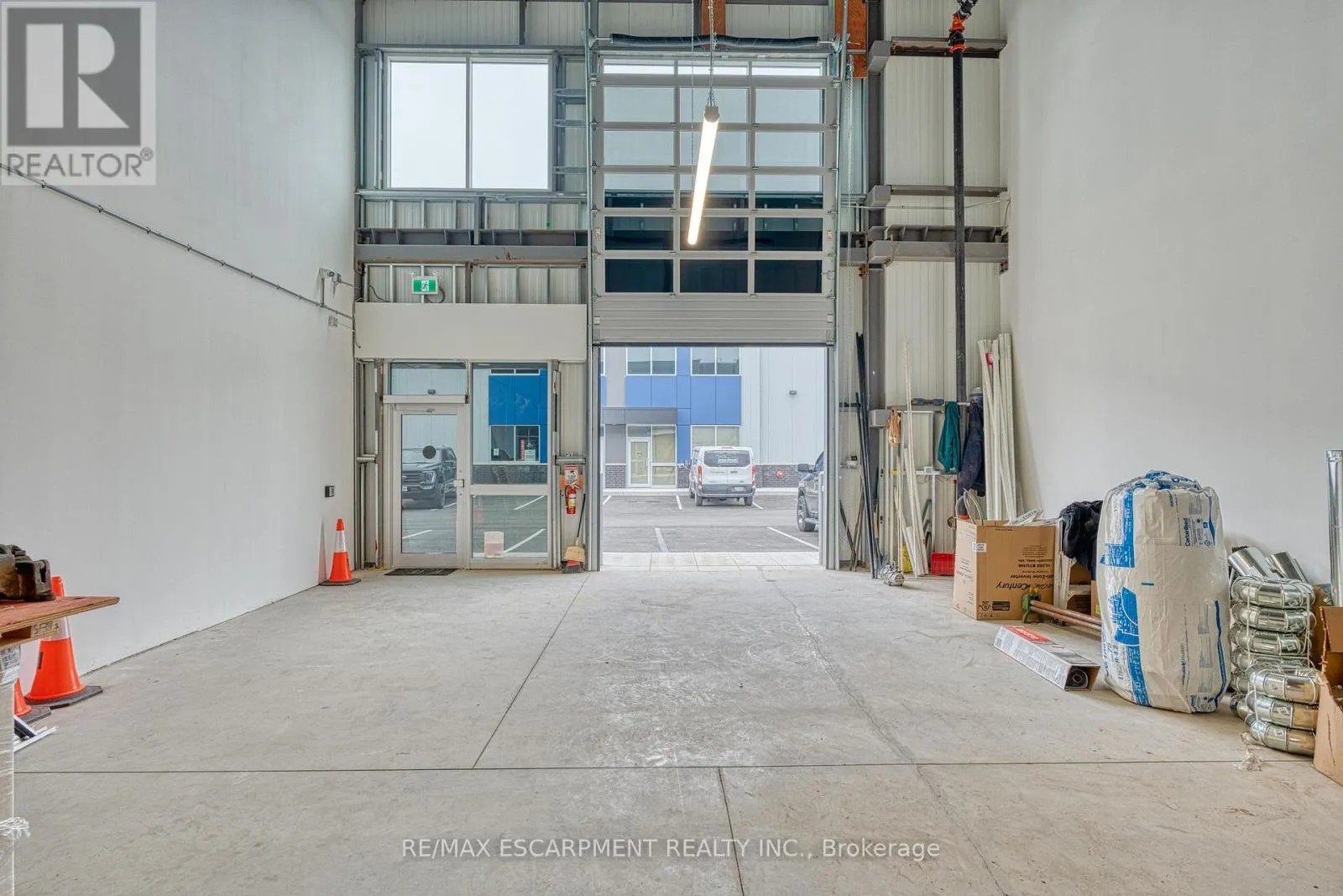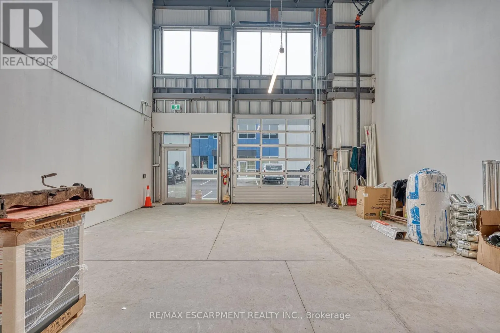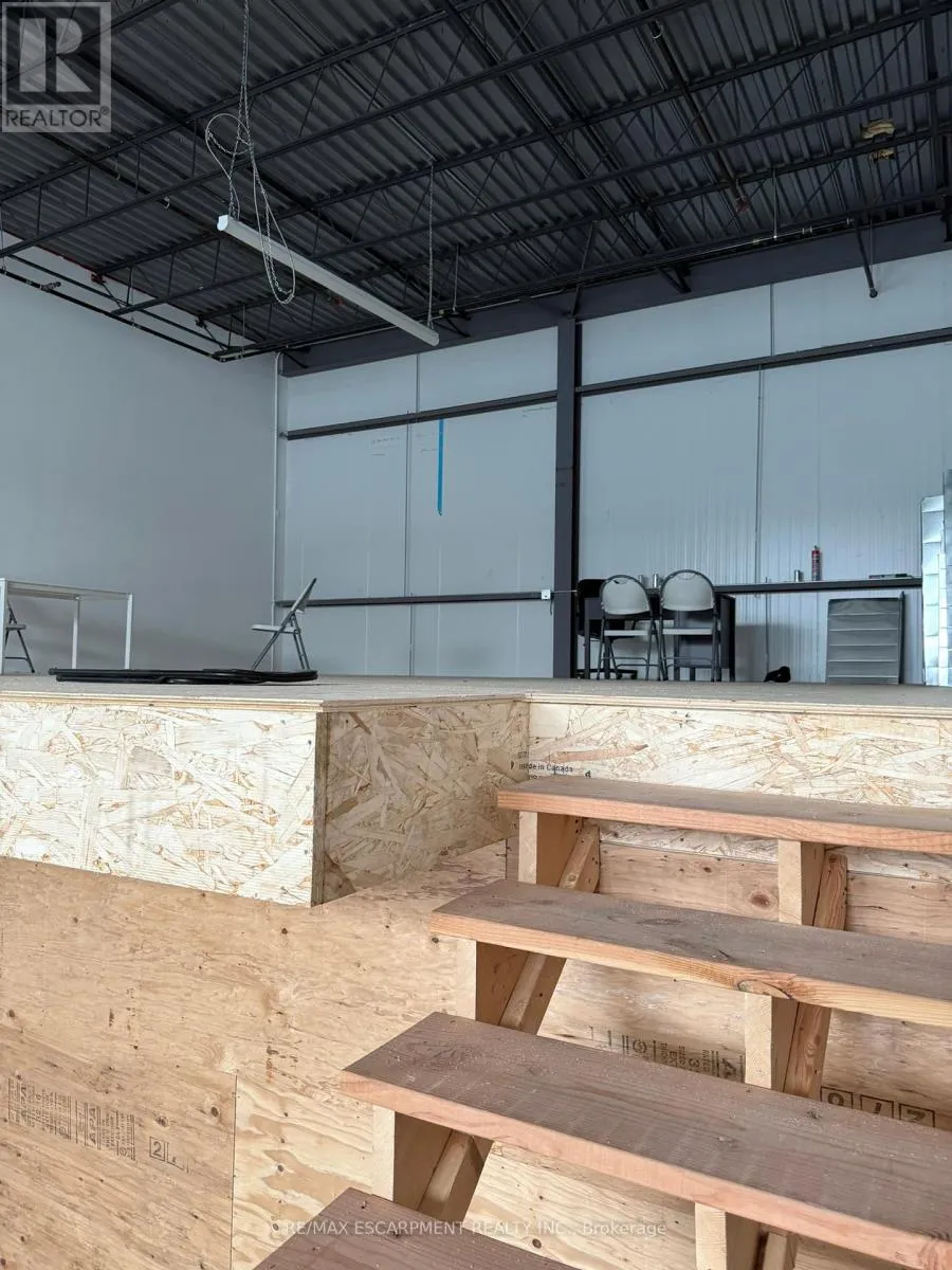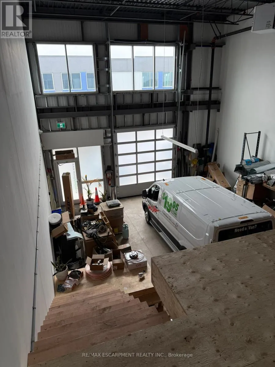 Stone Church Rd E/Anchor Rd Incredible opportunity to own a fully upgraded commercial-industrial unit in the sought-after Urban Heritage Industrial Plaza on East Hamilton Mountain. This modern 1,650 sq ft ground floor space features soaring 24 ft ceilings, a large grade-level drive-in bay door for seamless vehicle access, rear double man doors, and is enhanced by a newly constructed mezzanine adding approximately 650 sq ft boosting total usable space by 40%. The mezzanine is professionally built and ready for the new owners finishing touches, offering endless possibilities for office, storage, or custom use. The unit is equipped with a state-of-the-art security system, tinted windows for privacy, and rough-ins for additional plumbing or HVAC upgrades. Zoned M3-465, this space supports a wide range of permitted uses including manufacturing, warehousing, office, showroom, contractor/trade services, tech labs, and more. Located just minutes from Red Hill, the LINC, and major highways, this is an ideal turnkey space. (id:27476)