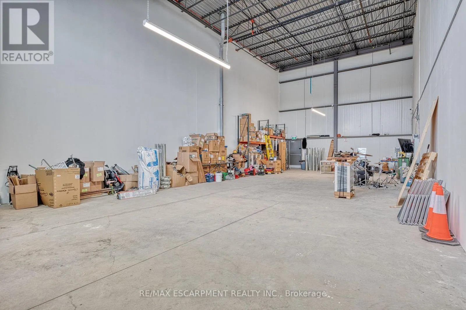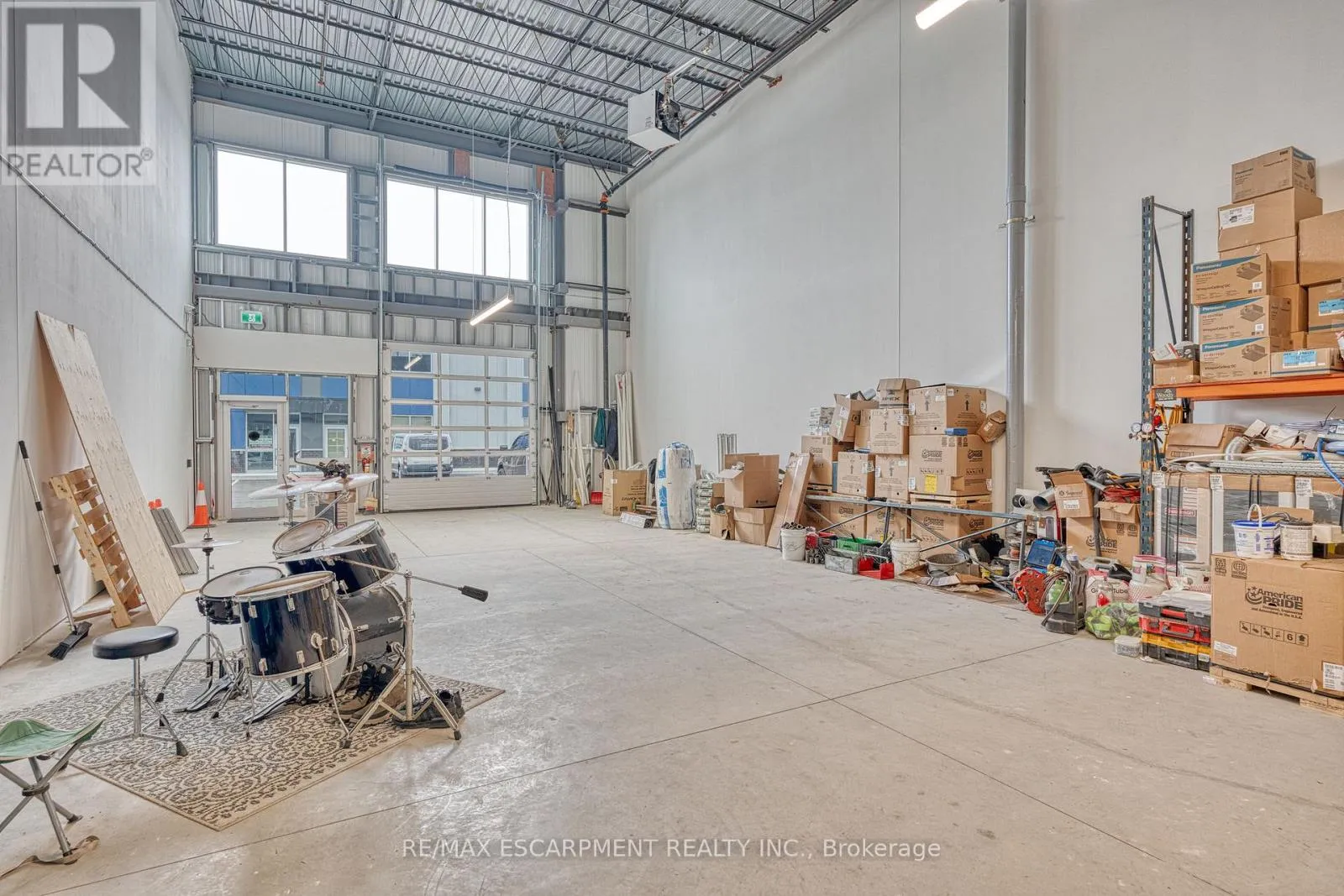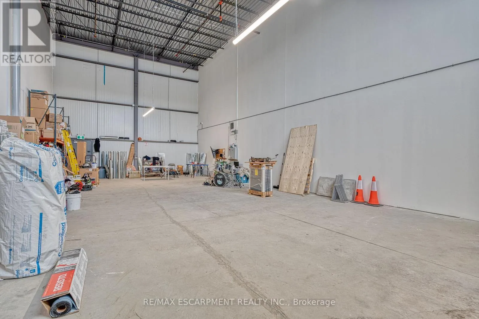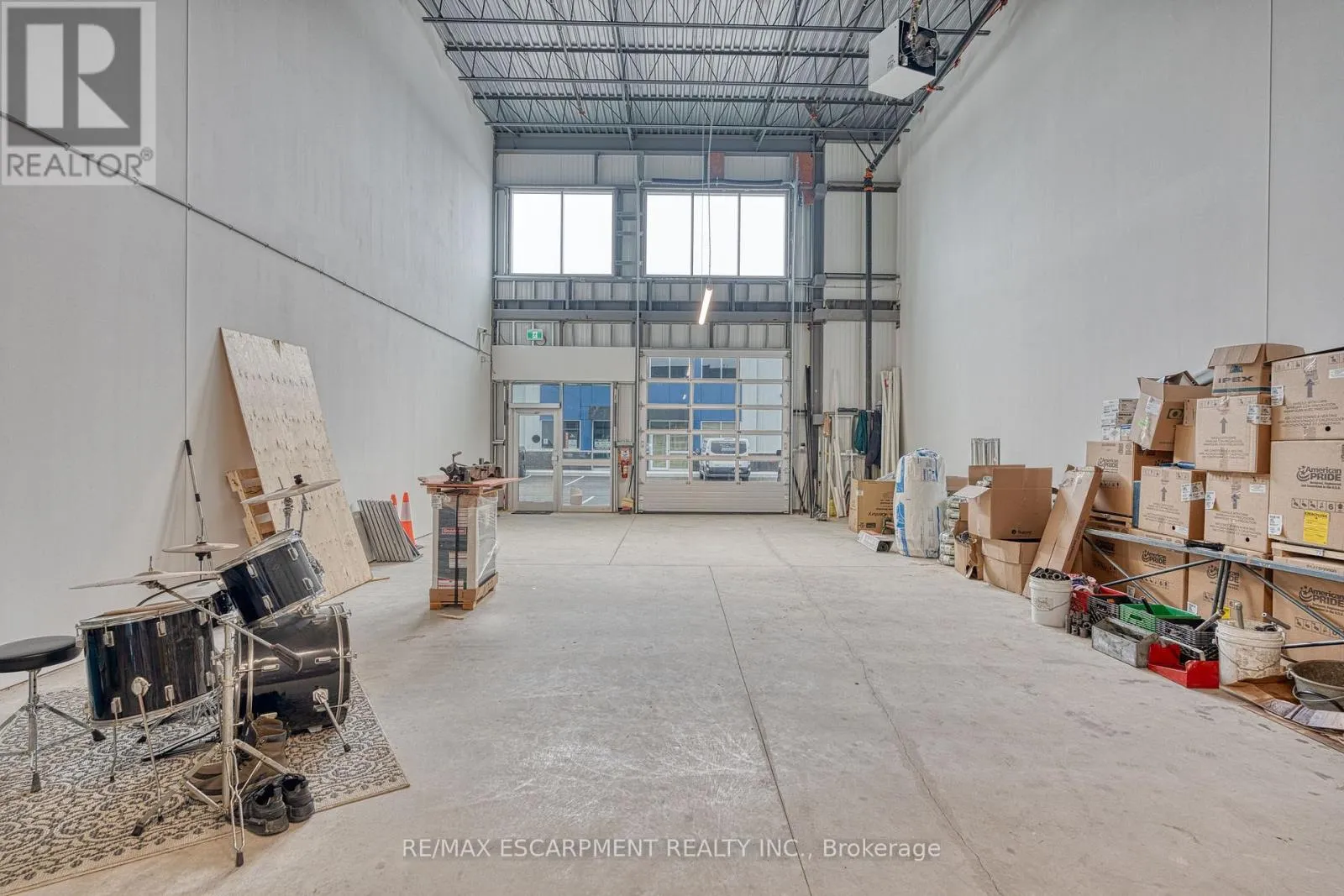 Stone Church Rd E/Anchor Rd Incredible opportunity to own a fully upgraded commercial-industrial unit in the sought-after Urban Heritage Industrial Plaza on East Hamilton Mountain. This modern 1,650 sq ft ground floor space features soaring 24 ft ceilings, a large grade-level drive-in bay door for seamless vehicle access, rear double man doors, and is enhanced by a newly constructed mezzanine adding approximately 650 sq ft boosting total usable space by 40%. The mezzanine is professionally built and ready for the new owners finishing touches, offering endless possibilities for office, storage, or custom use. The unit is equipped with a state-of-the-art security system, tinted windows for privacy, and rough-ins for additional plumbing or HVAC upgrades. Zoned M3-465, this space supports a wide range of permitted uses including manufacturing, warehousing, office, showroom, contractor/trade services, tech labs, and more. Located just minutes from Red Hill, the LINC, and major highways, this is an ideal turnkey space. (id:27476)