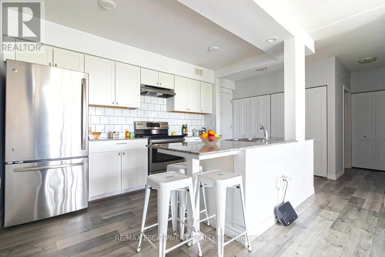 Cross Streets: Woodman & Queenston. ** Directions: Queenston Rd, E of Redhill, S on Woodman. Stop Renting, Start Owning: Your Dream Condo Awaits! Meticulously renovated, modern condo with breathtaking views, all for less than what you're currently paying in rent! This isn't a pipedream; it's a reality waiting for you in this stunning Hamilton gem. Captivating open concept design, flooded with natural light. The heart of this condo is its custom kitchen, featuring, gleaming granite countertops on a spacious breakfast island, & a stylish ceramic backsplash. Cooking & entertaining will be a joy with the convenience of LED pot lights & a double sink. Luxury abounds with all-new 5/8ths flooring complemented by newer baseboards, trim, doors, &casements. Storage is no longer an issue with custom closets, including a generous 19-footcloset in the front entrance & an expansive his-and-hers (8-foot) closet in the master bedroom. The modern 4-piece bath boasts elegant ceramic tile, providing a spa-like experience. But the appeal doesn't stop there. Step out onto the 23' x 4' balcony & soak in the amazing panoramic views of Hamilton & the Bay. Enjoy your morning coffee or evening cocktails while taking in the stunning scenery. And convenience? You've got it! Just minutes to QEW, transit, shopping, specialty shops and grocery stores, premium parking spot right in front of the building (#130) makes coming and going a breeze. This condo is truly a rare find, especially considering the utilities & basic cable are included! Say goodbye to those surprise bills & hello to predictable monthly expenses. But here's the best part: the seller may consider a Vendor Take Back (VTB) mortgage with a minimum $100,000 down payment, making ownership even more accessible. For the right first-time buyer with an excellent credit score and job stability, this could be the perfect opportunity to finally enter the real estate market. Don't miss this opportunity! Stop throwing your money away on rent and invest in your future. (id:27476)