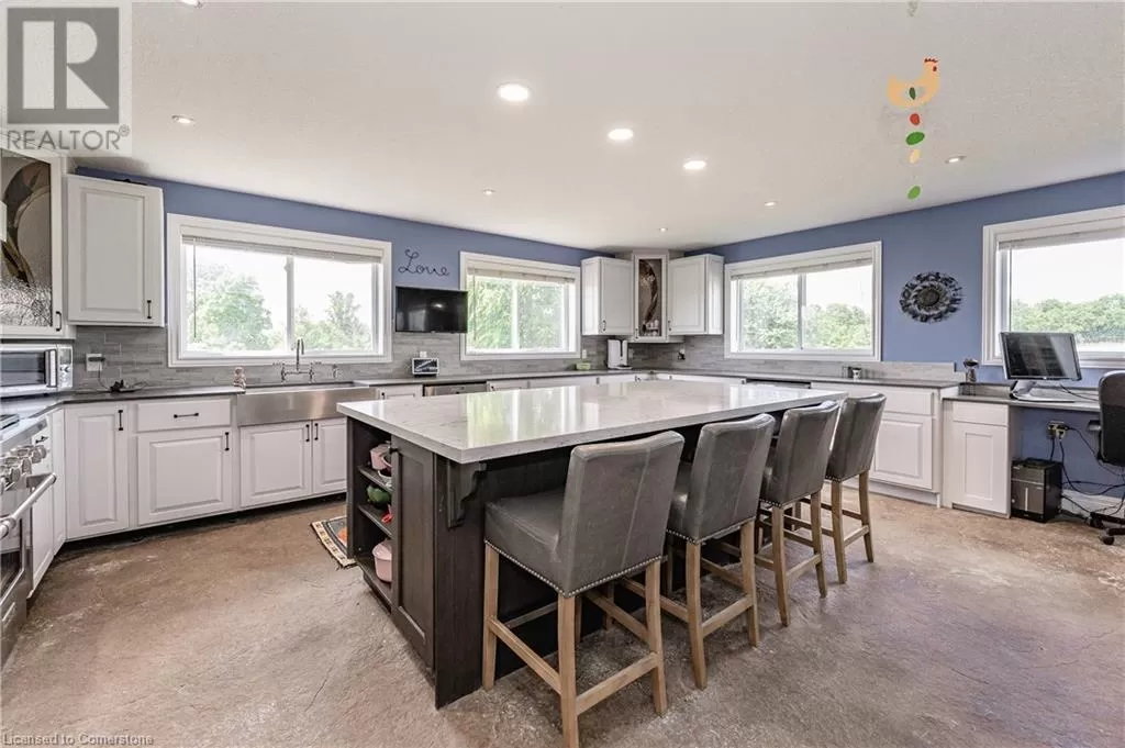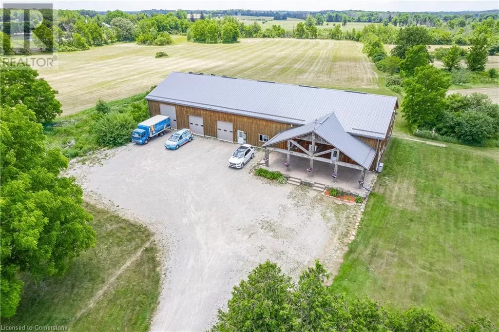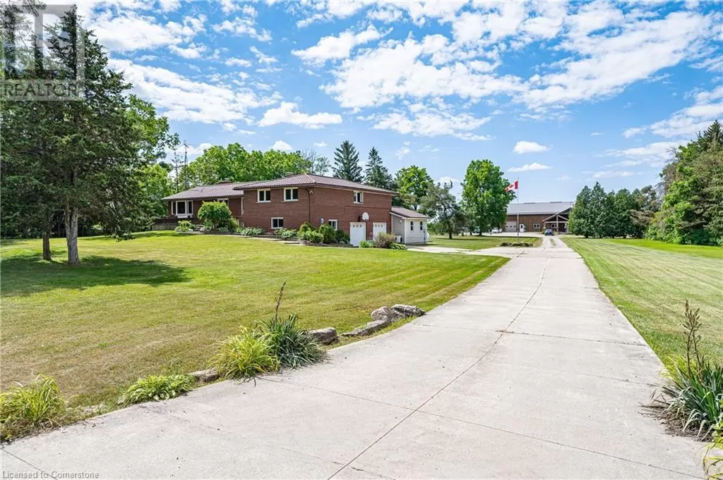 HWY 8 TO SHEFFIELD RD. TO OLD HWY 8 The TOTAL PACKAGE!!! ~6000 sq ft outbuilding & a ~2200 sq ft bungalow, with a grade level walk-out basement, all situated on ~42 picturesque acres. The ~6000 sq ft outbuilding features 3PHASE (600 volts 500 amp) electrical service. In floor heating in the in-law suite & middle bay only. 3 bay doors, office & 3pce bath. PLUS there is a 1 bedroom loft in-law suit. Bright sun filled open concept floor plan. Living room with cozy gas fireplace. Updated kitchen with a huge island with breakfast bar, quartz counters, 36â Wolf stove, stainless steel fridge/freezer & Miele dishwasher. Spacious bedroom overlooking the main floor with wood ceilings. Combination walk-in closet, laundry with full size washer/dryer & 3pce bath. For the INVESTOR there's a potential for great MONEY MAKING OPPORTUNITIES!!! Sprawling ~2200 sq ft 4 bedroom, 3 bath brick home offers a large living room with double sided wood burning fireplace. Eat-in kitchen with a walk-out to a composite deck & above ground pool. Full basement, partially finished with a grade level walk-out. Separate workshop/hobby room. New 125' deep well in 2020. 42 acres with ~30 acres workable. For the owner, you have your own gym (47' X 38'). Close to a full size indoor Pickleball Court, Basketball half court, ball hockey area or Yoga Studio. Other options: pottery studio, arts & crafts, storage for vintage & classic cars or operate a small home based business. (id:27476)
