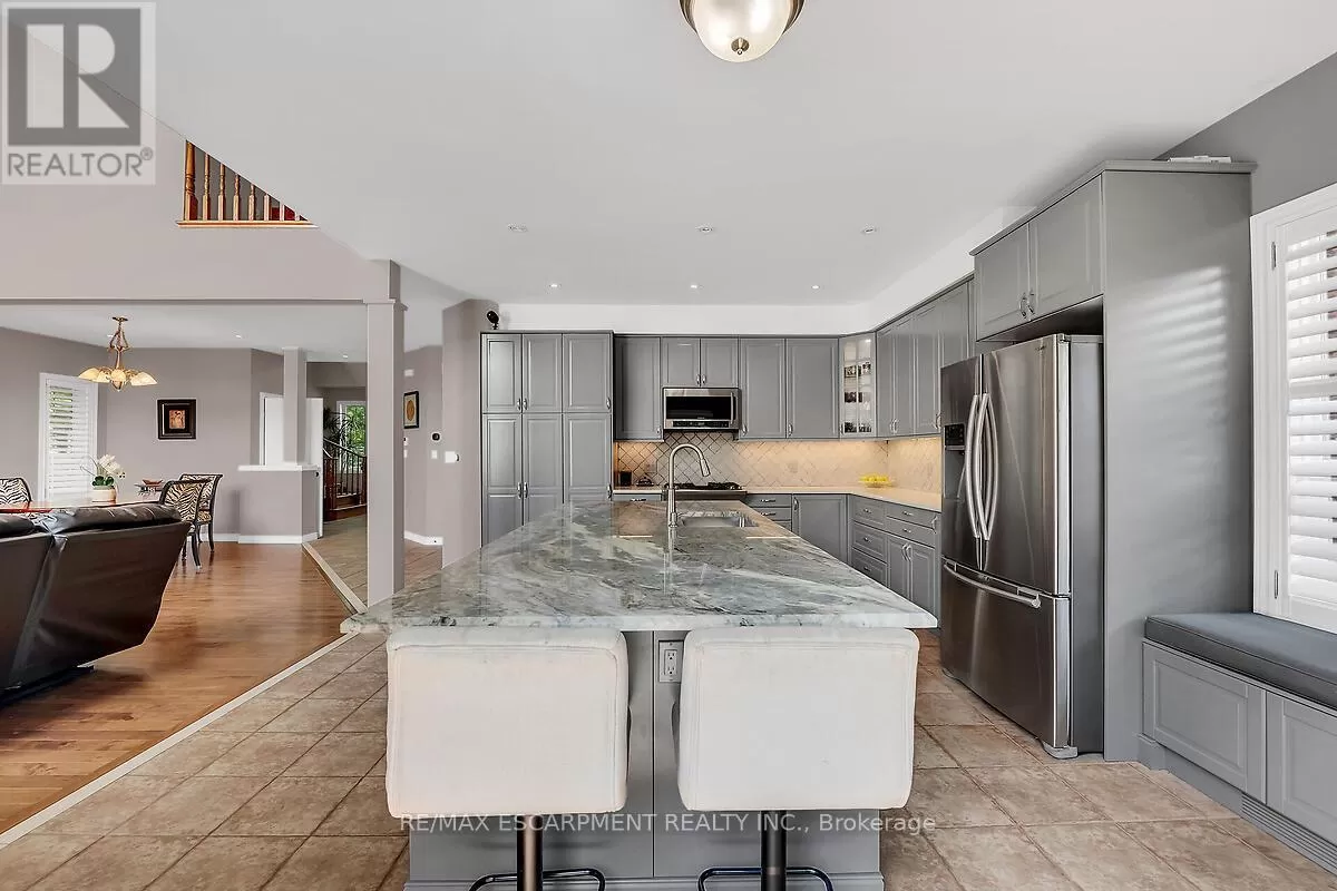 Meadowbrook Drive Seize the opportunity to live in this highly desired West Mountain neighbourhood. This home boasts over 3,400 square feet of living space and is situated on a corner lot in a quiet court. Close to all amenities including schools, parks, shopping, recreation and highway access. Great for multi-generational families, this home has plenty of room to spread out with the benefit of separate living spaces. Enjoy the elegance of the open concept design with grand 17 ft ceilings, palladium window and a spiral staircase. The renovated gourmet kitchen (2020) has an oversized island with granite counters, spacious breakfast bar, stainless steel appliances and extensive cabinetry. There is also a built in desk area which is great for multi-tasking throughout the day. Retreat to the upper level primary bedroom offering a 4 piece ensuite complete with soaker tub. There are 2 additional bedrooms, main bath and convenient laundry room on this level. The fully finished basement is great for family movie nights and offers a large recroom, spacious bedroom and new 3 piece bath. The rear yard is conveniently accessed from the kitchen and has several different areas for recreation and entertaining including a stunning outdoor fireplace. A gazebo covers the sitting and dining areas and surrounded by lush, mature gardens. The yard is complete with veggie garden and a large storage shed. (id:27476)