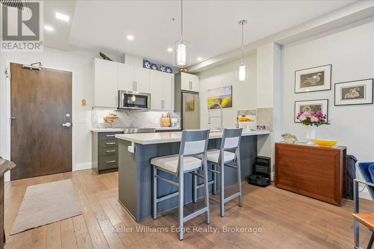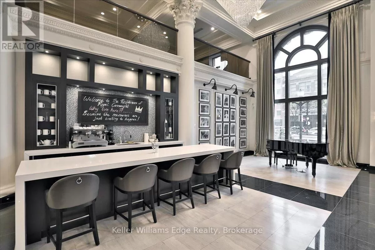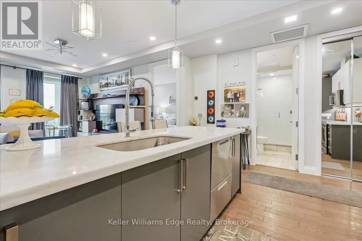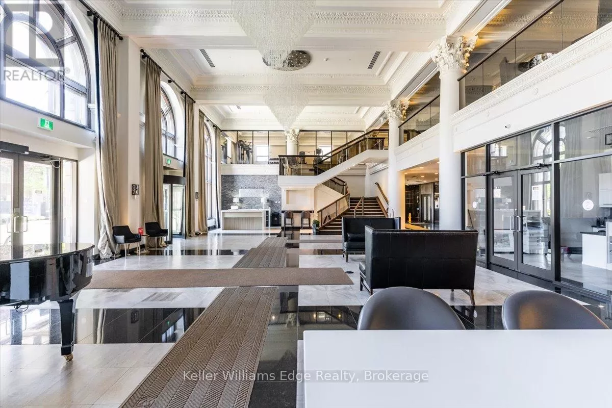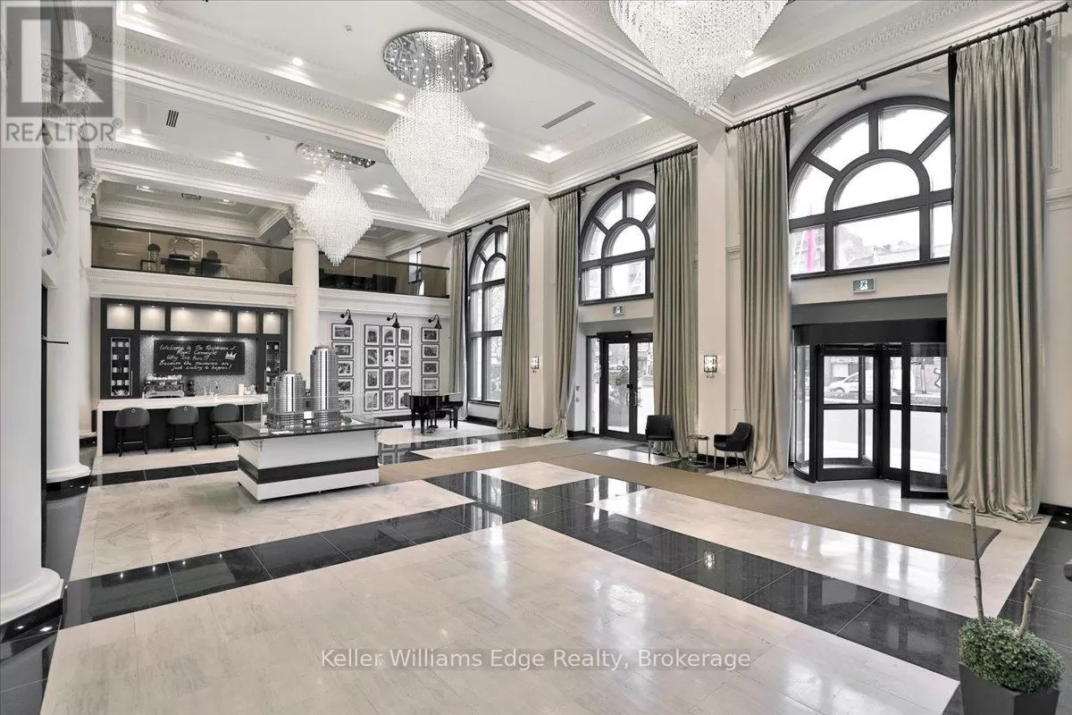 King St E And John St Because builder grade is not for you! This VERY New York inspired suite is at the Royal Connaught. This unit was fully customized and upgraded well beyond what the builder offered. Designed for multifunction spaces, and every inch of space for storage was utilized so beautifully. Real Hardwood, upgraded Granite counters, pull outs and closet organizers galore to maximize usable space. Even the front hall closet has a pantry stack now. Kitchen backsplash is a tastefull and timeless herringbone pattern, stainless appliances and virtually every cabinet has custom pull out shelves or drawers and organizers. An upgraded stainless sink without the stain inducing 90 degree corners, upgraded restaurant style faucet too. The washer and dryer are elite condensing units that have full size interiors with smaller exteriors to maximize laundry room space. They are willing to replace them for regular ones and take these with them. Parking is deeded for underground but currently owners have a surface space until the next phase is completed. The amenities are incredible. This lobby speaks to pride of ownership and is like coming home to a movie set every day. it's historic, very New York and anything but run of the mill. Impressive to guests and you! Gorgeous and upscale. The rooftop outdoor patio is private and the hub of the building's social activities including BBQ's when you can entertain guests too. The mezzanine gym is a dream to work out in. Great equipment. Theatre, Just so many extras. A place to call home for those with a discerning eye & lifestyle in Hamilton. (id:27476)