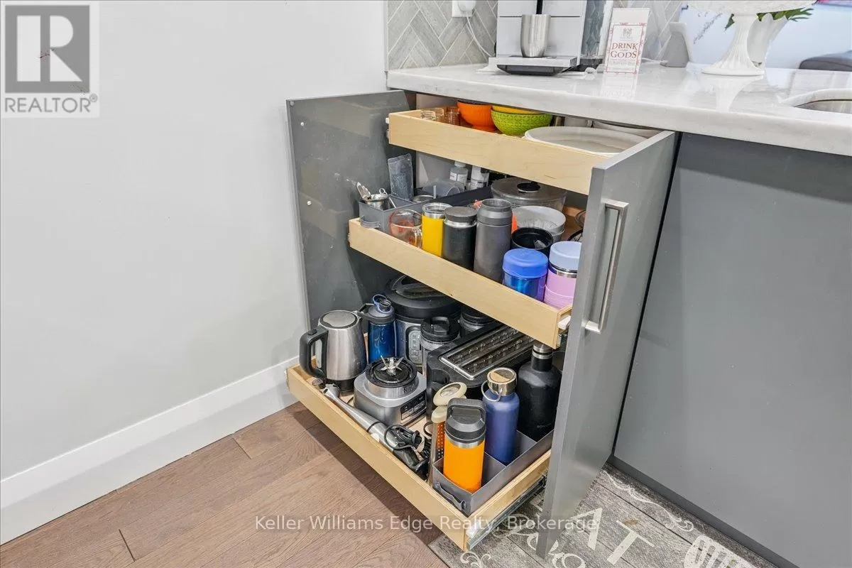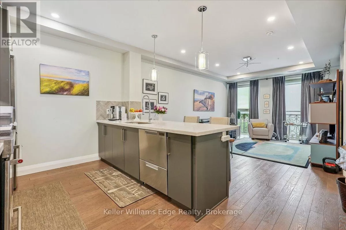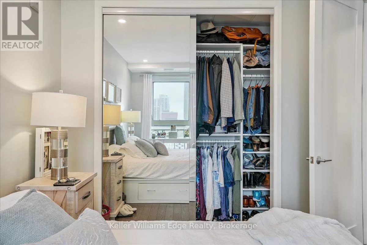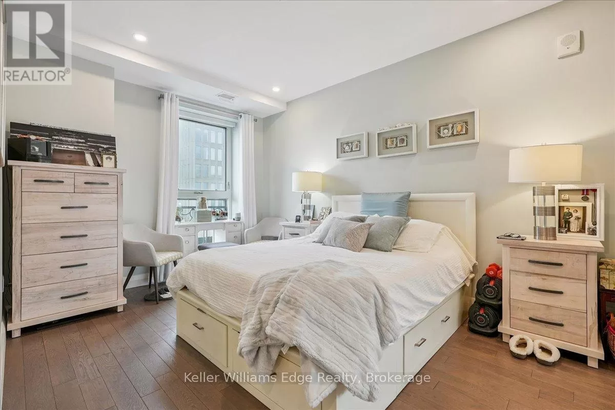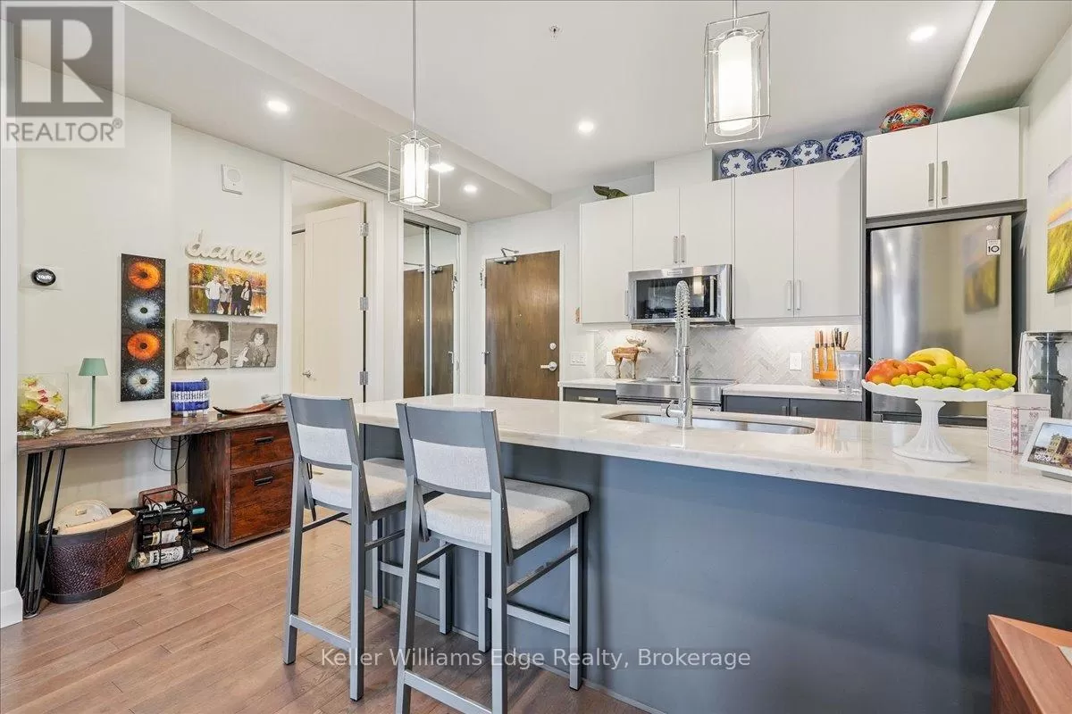 King St E And John St Because builder grade is not for you! This VERY New York inspired suite is at the Royal Connaught. This unit was fully customized and upgraded well beyond what the builder offered. Designed for multifunction spaces, and every inch of space for storage was utilized so beautifully. Real Hardwood, upgraded Granite counters, pull outs and closet organizers galore to maximize usable space. Even the front hall closet has a pantry stack now. Kitchen backsplash is a tastefull and timeless herringbone pattern, stainless appliances and virtually every cabinet has custom pull out shelves or drawers and organizers. An upgraded stainless sink without the stain inducing 90 degree corners, upgraded restaurant style faucet too. The washer and dryer are elite condensing units that have full size interiors with smaller exteriors to maximize laundry room space. They are willing to replace them for regular ones and take these with them. Parking is deeded for underground but currently owners have a surface space until the next phase is completed. The amenities are incredible. This lobby speaks to pride of ownership and is like coming home to a movie set every day. it's historic, very New York and anything but run of the mill. Impressive to guests and you! Gorgeous and upscale. The rooftop outdoor patio is private and the hub of the building's social activities including BBQ's when you can entertain guests too. The mezzanine gym is a dream to work out in. Great equipment. Theatre, Just so many extras. A place to call home for those with a discerning eye & lifestyle in Hamilton. (id:27476)