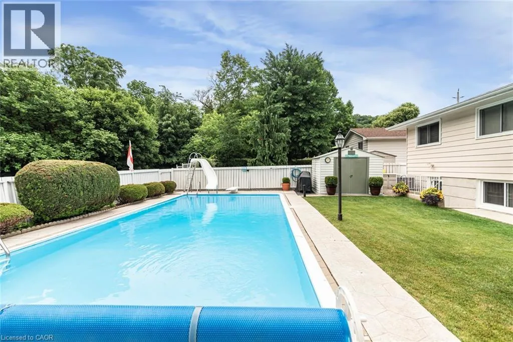 GREENHILL AVE TO BUNKER HILL DR TO HANOVER PL This impeccably updated and meticulously maintained raised bungalow is a rare gem backing onto a lush ravine. Showcasing strong curb appeal with its manicured landscaping, inviting front entrance, and tasteful exterior finishes, this home makes a lasting first impression. Inside, you'll find 3 spacious bedrooms, gleaming hardwood floors, and a chef-inspired kitchen featuring sleek built-in appliances and modern finishes. The cozy family room is anchored by a charming fireplace, creating a warm and welcoming space. The fully finished lower level offers a stylish game room with a pool table and a bright walkout to a resort-style backyardâcomplete with a stunning in-ground pool, cement patio, am direct access via basement steps. Enjoy peace of mind knowing all major mechanicals have been thoughtfully updated, allowing you to move in and enjoy your private oasis with confidence. (id:27476)