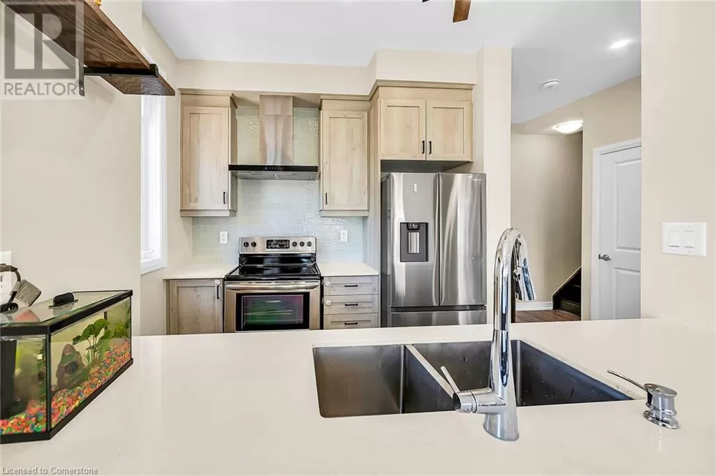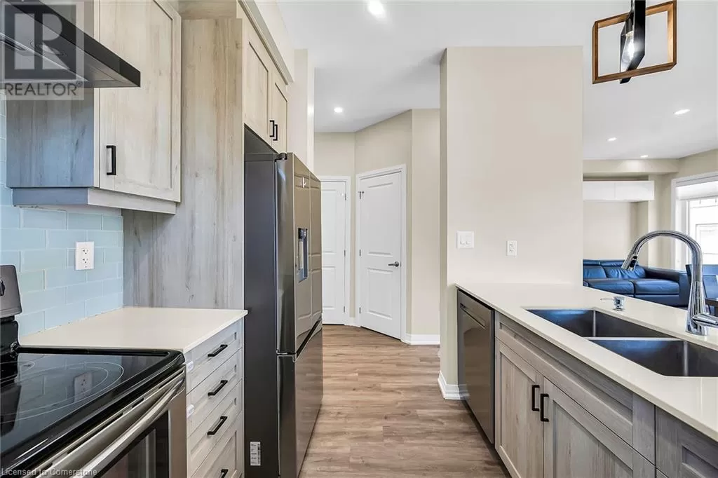 BARTON TO WOODWARD Welcome to this fantastic 3-bedroom, 2-bathroom end-unit townhome located in the heart of Hamilton! Offering both style and function, this home features a bright, open layout with an abundance of large windows that flood the space with natural light. The living and dining areas create the perfect setting for family gatherings and relaxation. Enjoy the added privacy of being an end unit. The kitchen is well-appointed, offering ample counter space and cabinetry. Step outside to your own private balcony, a perfect spot to unwind, enjoy your morning coffee, or relax with a book in the fresh air. Conveniently located just minutes from highway access, local shops, and all essential amenities, this home truly combines comfort and convenience. (id:27476)