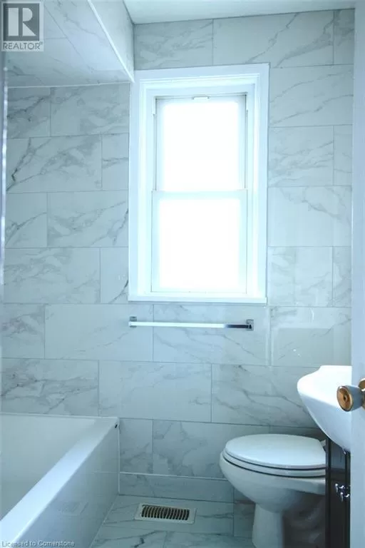 Upper Sherman, E on Queensdale, S on East 32nd Street Impressive renovated 3 bedroom main floor unit just minutes to hiway access, Juravinski Centre, public transit, schools and parks. Newly renovated kitchen with quartz counter tops and ceramic backsplash and porcelain tile floors. Hardwood flooring on main floor. Updated main bath with all new ceramics. Newly installed stackable laundry in the unit. Separate side entrance to lower level. Driveway parking for tenants. Main floor tenant to pay for 50% of utilities and has use of backyard. (id:27476)