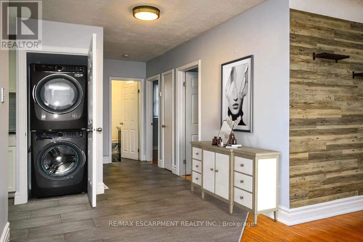 Cross Streets: Queensdale & East 32nd Street. ** Directions: Upper Sherman, E on Queensdale, S on East 32nd Street. Impressive renovated 3 bedroom main floor unit just minutes to highway access, Juravinski Centre, public transit, schools and parks. Newly renovated kitchen with quartz counter tops and ceramic backsplash and porcelain tile floors. Hardwood flooring on main floor. Updated main bath with all new ceramics. Newly installed stackable laundry in the unit. Separate side entrance to lower level. Driveway parking for tenants. Main floor tenant to pay for 50% of utilities and has use of backyard. (id:27476)