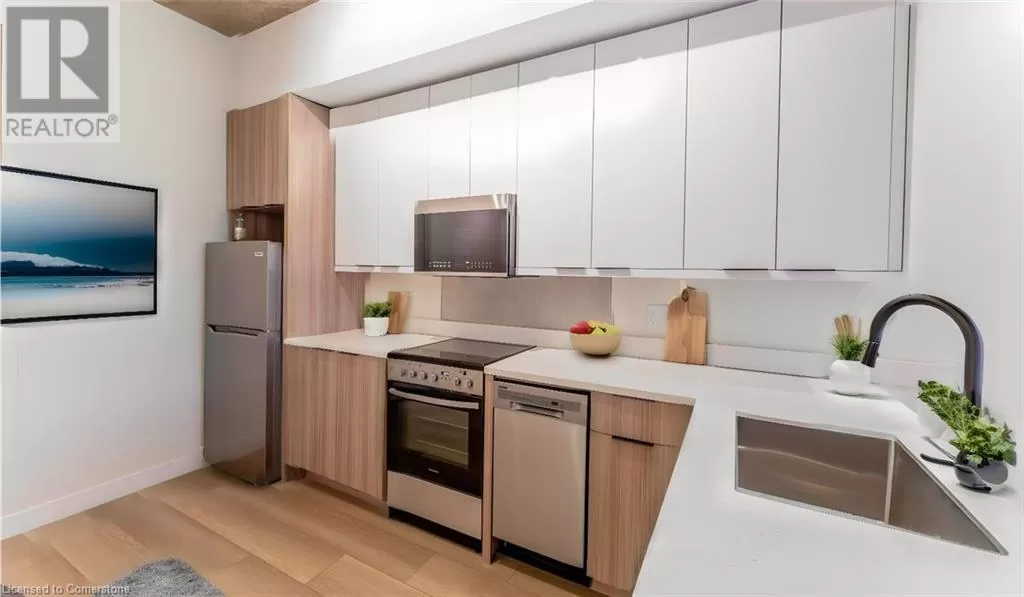 Head North on James Street S, building is located on the East side of James, South of Augusta Street. The Greystone is one of Hamiltonâs newest apartment building located within the Augusta Street restaurant district. This unit seamlessly blends contemporary design with top-of-the-line finishes. As you step inside, you'll be greeted by an open-concept layout beaming in natural light. The kitchen comes fully equipped with stainless steel appliances, quartz countertops, and ample cabinet spaceâideal for everyday living and entertaining. The bedroom can comfortably fit any size mattress and includes a sizable closet. Building amenities include a rooftop terrace, fitness room, and fob secured access. Located in the lively Corktown community, you'll find yourself surrounded by some of Hamiltonâs best restaurants like Ciao Bella, Lobby, Plank Restobar, Paloma Bar, The Ship, Secco, and Goldiesâs. The Hamilton Go Centre is less than a two-minute walk from the doorstep of this building! Experience the ultimate blend of comfort, convenience, and culture at The Greystone. Don't miss this extraordinary opportunity! Please note that this unitâs price does not include parking; parking is available at additional cost. (id:27476)
