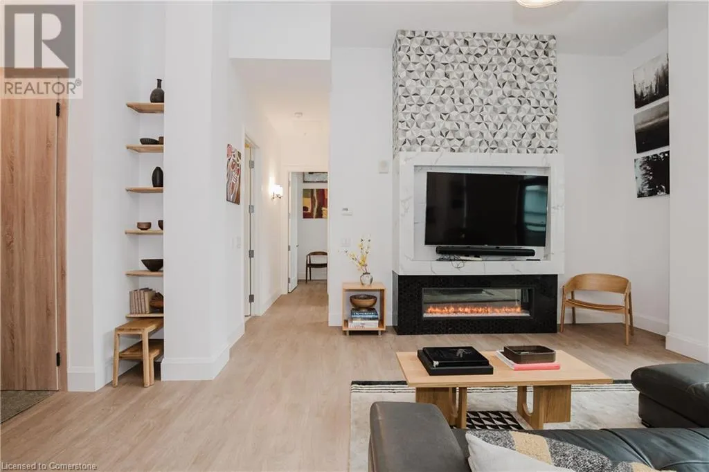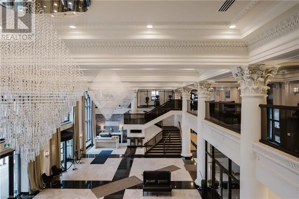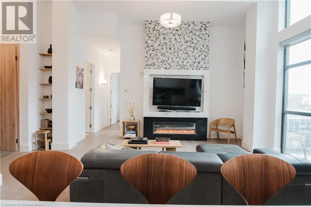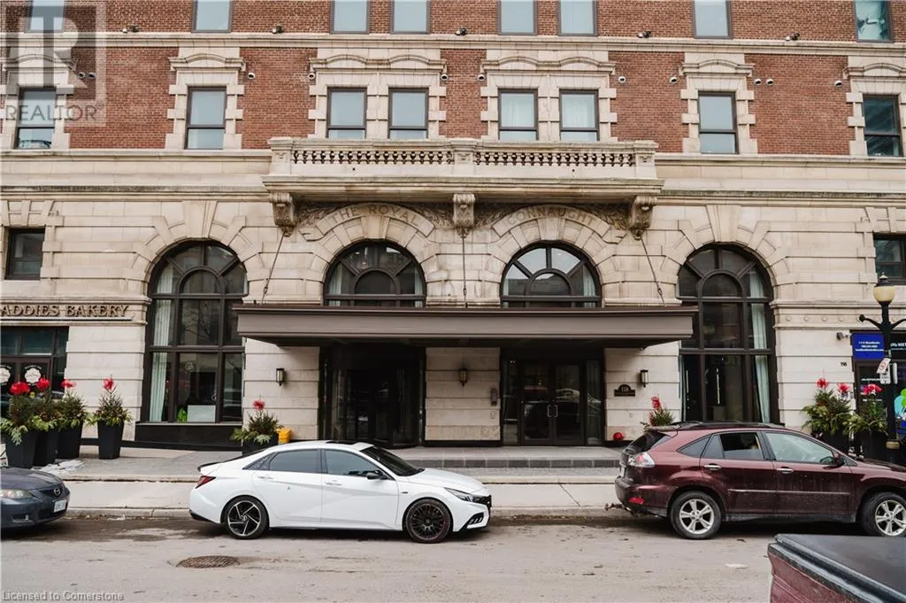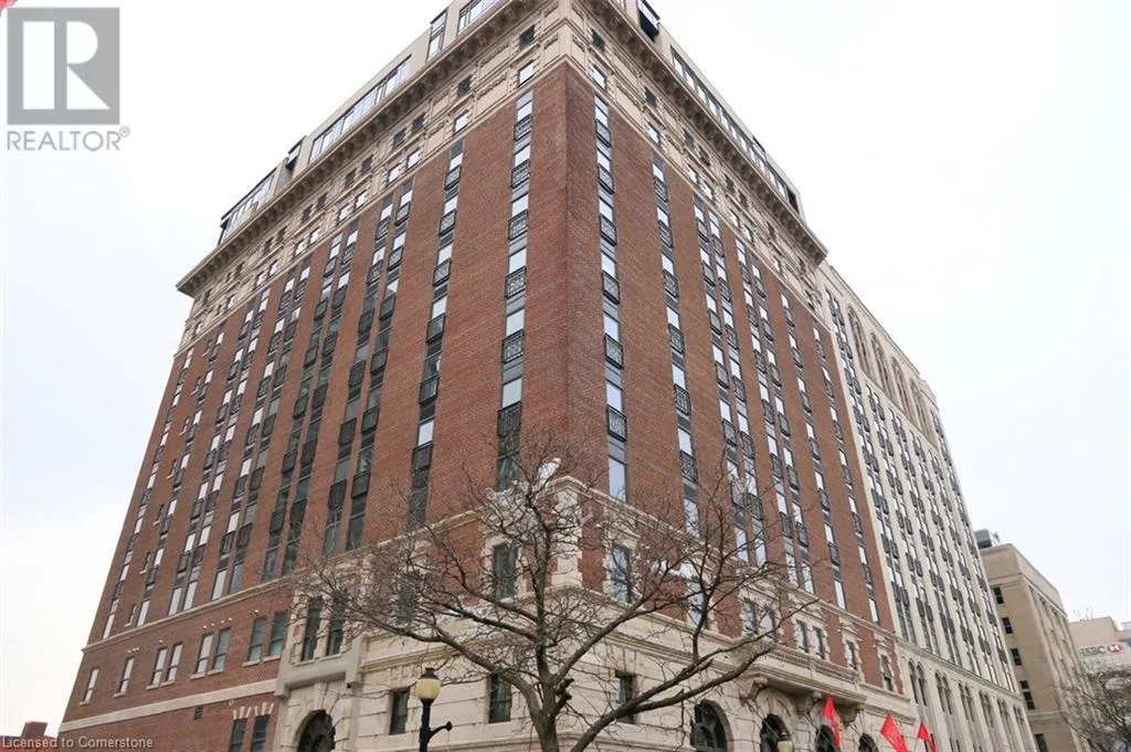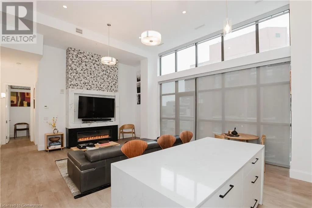 Corner of Catherine St S & King St E Welcome to this lovely lower penthouse at the iconic Royal Connaught, a beautifully preserved piece of Hamiltonâs history right in the heart of downtown. This pristine, sun-filled unit offers soaring 13-foot ceilings, a bright open-concept layout, and southwest views. The modern kitchen is perfect for entertaining, featuring a waterfall quartz island, matching quartz countertops, and custom glass backsplash. The spacious living area includes a custom feature wall with electric fireplace. Enjoy added comfort and convenience with automated blinds throughout, a double vanity in the large 4-piece bath, a custom glass-enclosed tub/shower, in-suite laundry, and a walk-in closet in the primary bedroom. This unit also comes with an owned locker and an underground parking spot. Located just steps to everything you love about city living including trendy cafes, shops, art galleries, restaurants, and the vibrant energy of James Street. You'll also love the easy access to hospital services, transit, and GO Station connections. If you're ready for a blend of luxury, history, and urban convenience, this spectacular condo might just be your perfect match. (id:27476)