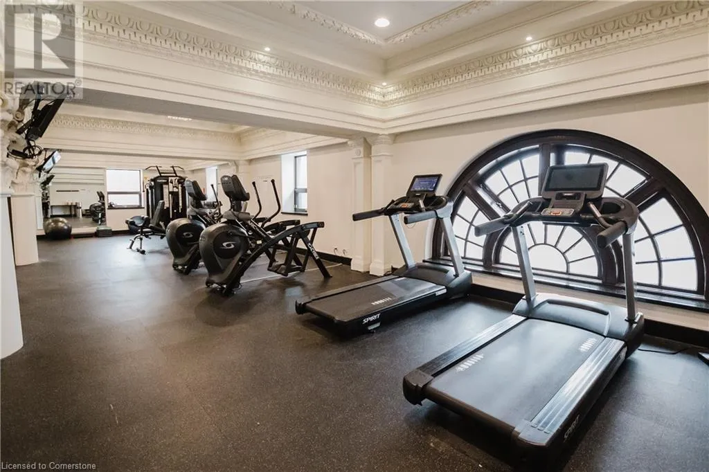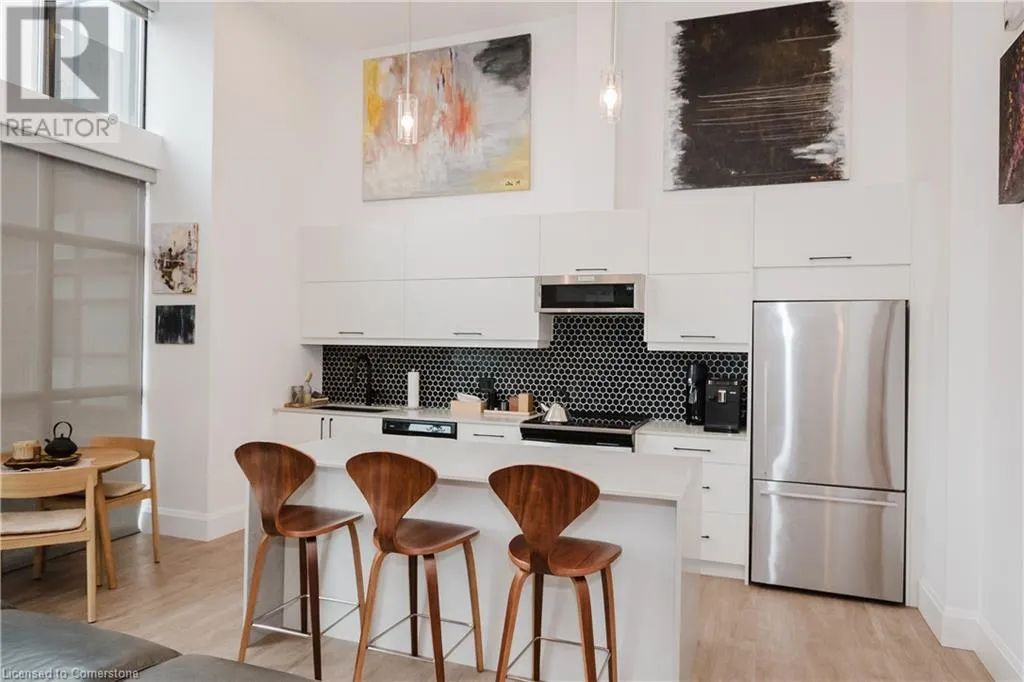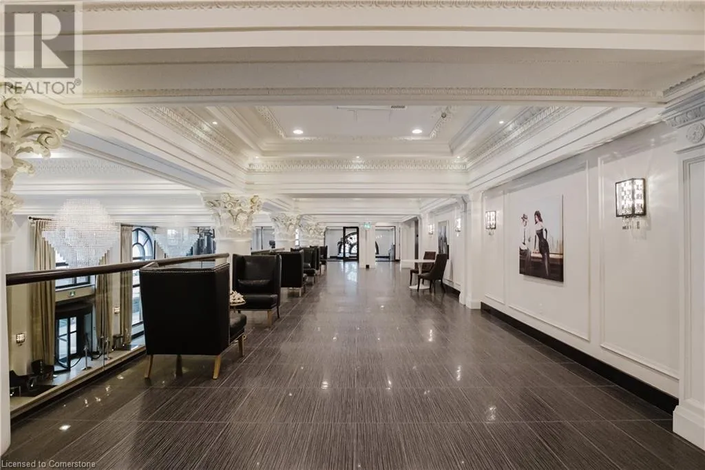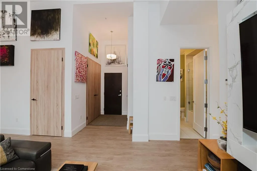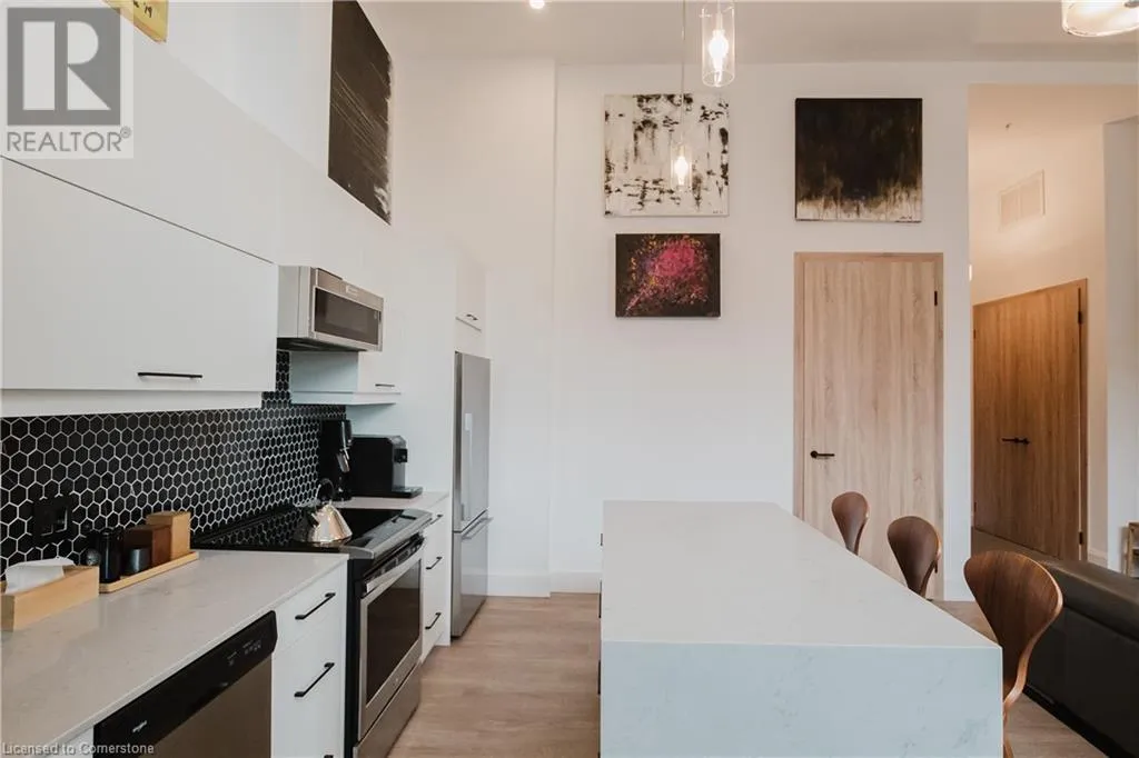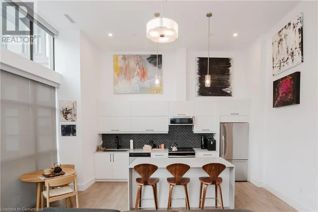 Corner of Catherine St S & King St E Welcome to this lovely lower penthouse at the iconic Royal Connaught, a beautifully preserved piece of Hamiltonâs history right in the heart of downtown. This pristine, sun-filled unit offers soaring 13-foot ceilings, a bright open-concept layout, and southwest views. The modern kitchen is perfect for entertaining, featuring a waterfall quartz island, matching quartz countertops, and custom glass backsplash. The spacious living area includes a custom feature wall with electric fireplace. Enjoy added comfort and convenience with automated blinds throughout, a double vanity in the large 4-piece bath, a custom glass-enclosed tub/shower, in-suite laundry, and a walk-in closet in the primary bedroom. This unit also comes with an owned locker and an underground parking spot. Located just steps to everything you love about city living including trendy cafes, shops, art galleries, restaurants, and the vibrant energy of James Street. You'll also love the easy access to hospital services, transit, and GO Station connections. If you're ready for a blend of luxury, history, and urban convenience, this spectacular condo might just be your perfect match. (id:27476)