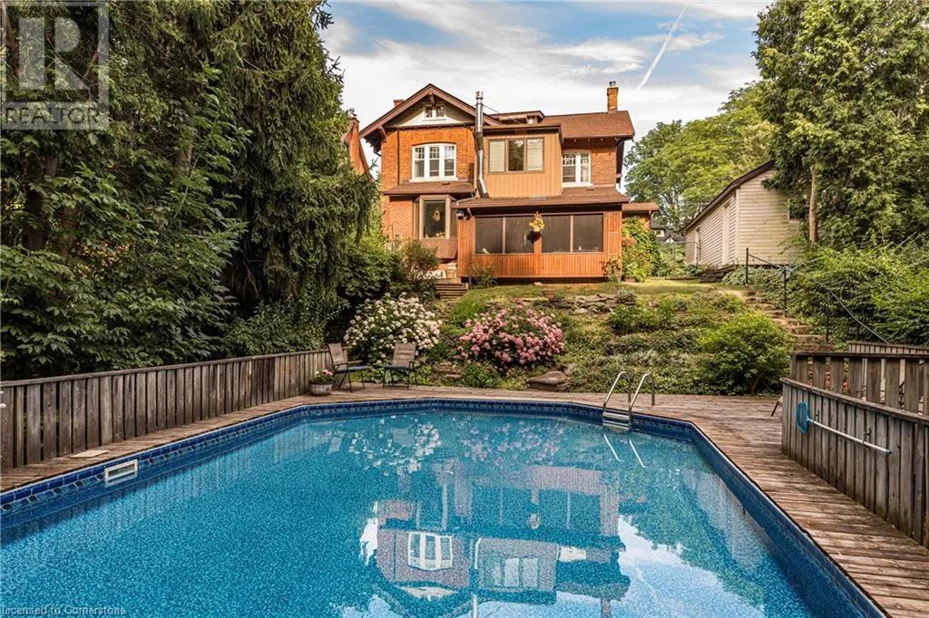 South of Aberdeen towards Hillcrest Ave A rare opportunity to own a classic century home on Chedoke! Set on a spectacular 60â x 333â deep lot backing onto Chedoke Golf Course, this elegant home has been lovingly cared for by the same family for over 50 years. Brimming with original character and timeless charm, this stately centre hall plan offers hardwood floors on 2 levels and over 2,800 sqft of living space with 5 bedrooms, 2.5 bathrooms plus an additional 1-pc bath in the basement. Step inside to a gracious foyer flanked by a formal dining room on one side and an expansive living room on the other, ideal for entertaining and large family gatherings. The kitchen features a charming butlerâs pantry, a sunny dinette, and a convenient 2-pc bath nearby. A few steps down leads to a cozy family room addition with a freestanding gas fireplace, and beyond that, a screened 3-season sunroom, perfect for summer evenings or alfresco dining. Garden stairs lead to a sprawling 40' x 20' on-ground pool with a sundeck, offering endless outdoor enjoyment. The lush backyard abutting the golf course has a gentle stream meandering through the rear of the property, creating a private, park-like retreat. Upstairs, you'll find four generous bedrooms including the primary bedroom with 3-pc ensuite, plus a 4-pc family bath. The finished attic offers a fifth bedroom with a sink and a versatile family/games room, ideal as a teen hideaway. The lower level includes a finished rec room, 1-pc bath, office nook, laundry, and ample storage. Updated mechanics include central air (2020) serving the top two floors and kitchen, boiler (2015), electrical (2014), roof (2013). Walk to the Chedoke Trail, golf course, schools, parks, Locke St S, restaurants, shops and amenities. Minutes to McMaster and all area hospitals, plus easy 403 access make this a highly desirable location. Homes like this backing the golf course, rarely become available so donât miss this opportunity to call 74 Chedoke Ave your new home! RSA (id:27476)