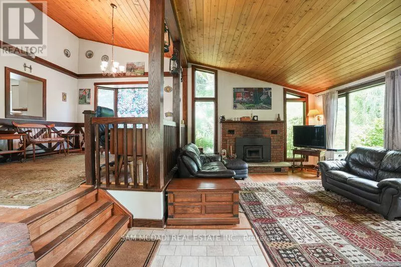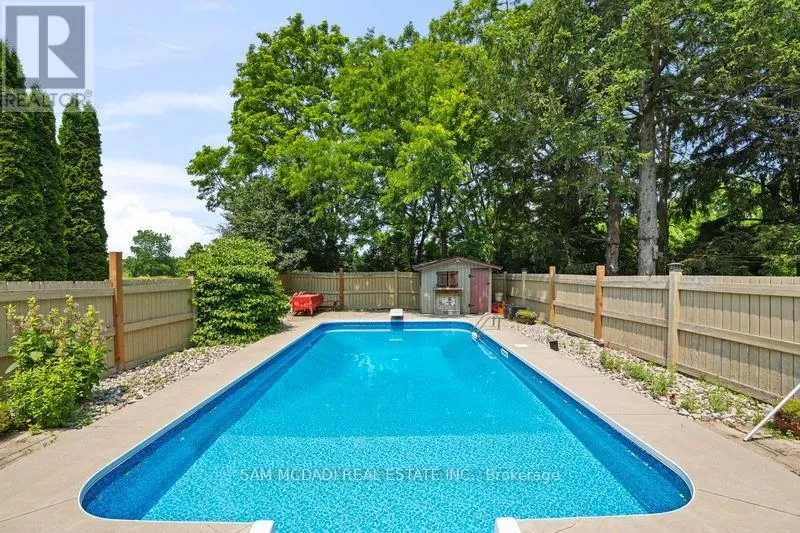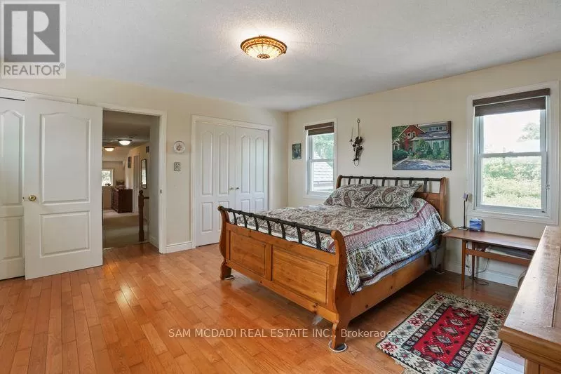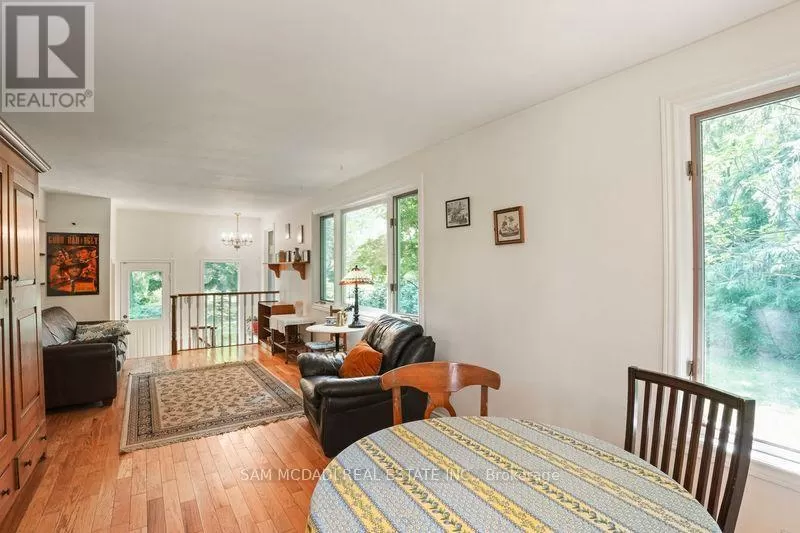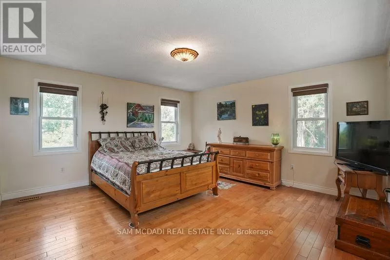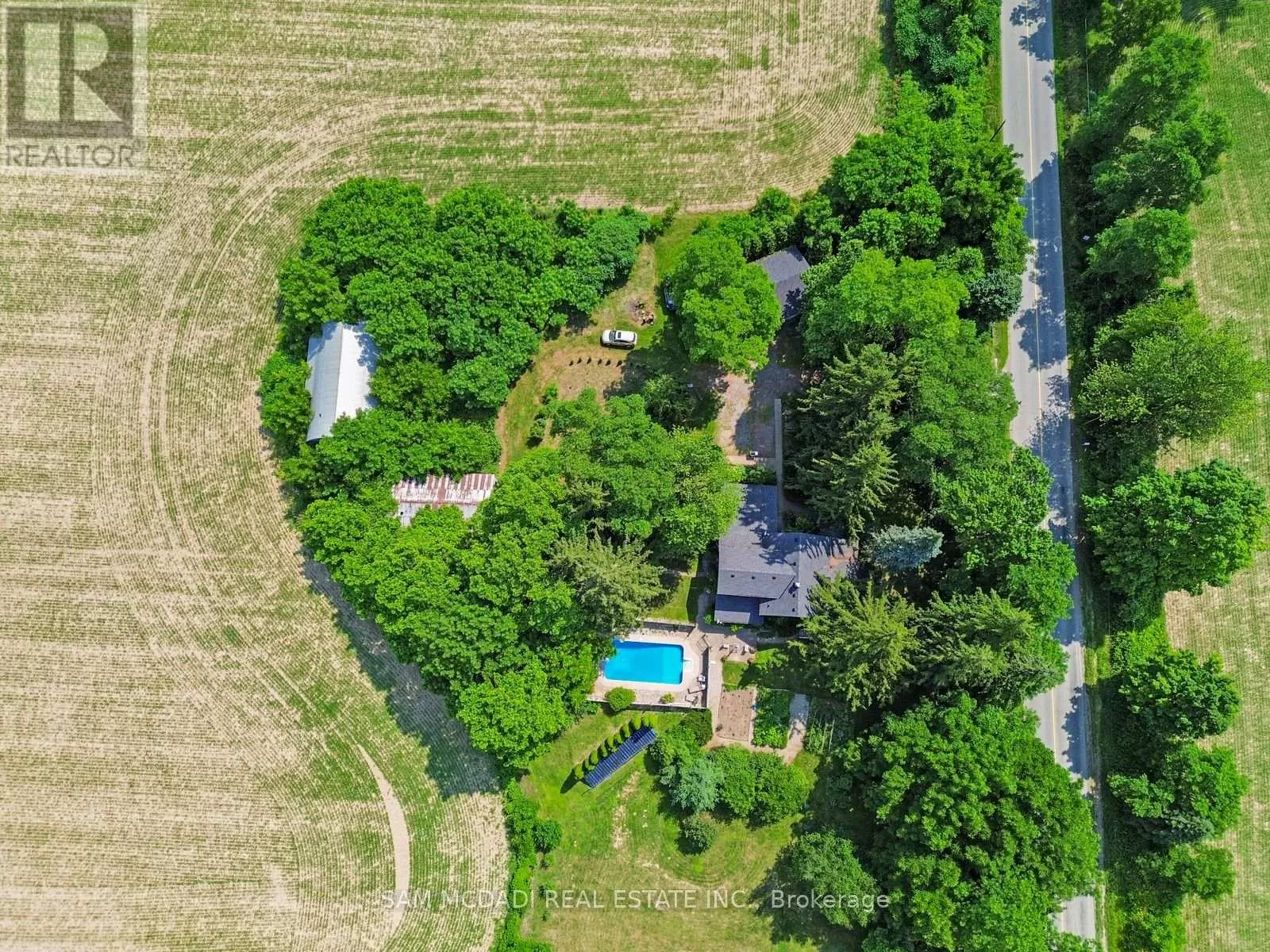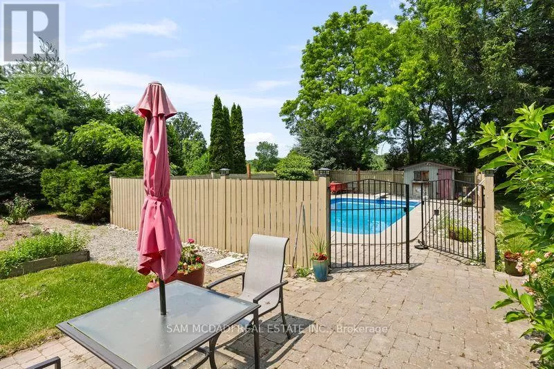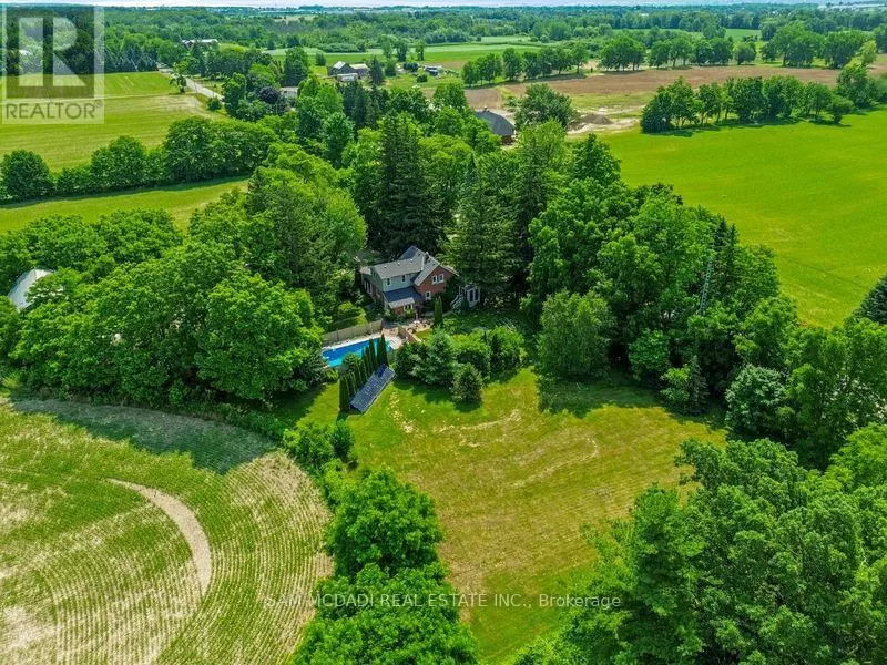 Cross Streets: Concession Rd and Millgrove Side Road. ** Directions: Coming down on Millgrove take a right on to Concession Rd. Escape to your own private retreat, surrounded by lush greenery. Set on an ultra rare 407x179 ft lot (1.69 acres), this charming five-bedroom, two-bathroom residence offers a harmonious blend of character and modern comfort, perfect for multigenerational families, nature lovers, or savvy buyers seeking space and versatility. As you step inside, the main and upper levels feature rich hardwood flooring, with carpeted stairs and upper hallway for added warmth. Both kitchens are finished with durable vinyl flooring and classic laminate countertops, and ample space for the family to meal prep and entertain. A cozy wood-burning fireplace with integrated fan anchors the main living space, creating an inviting atmosphere for cool evenings and casual gatherings. Venture upstairs to the primary suite, complete with its own closet space, and rich hardwood floors. Four additional bedrooms share the same level, each are generously sized and includes a window, closet, and access to a shared 4-piece bath, promising comfort, natural light, and restful privacy for the whole family. The home also boasts a partially finished basement with a spacious rec room ideal for extended family, guests. Reimagine the space to create an in-law suite for future rental potential, or a recreational space to enjoy. Step outside to an entertainers dream: a 16x32 solar-heated chlorine pool complete with a new pump (2024) and filter (2025), perfect for long summer days spent poolside. Recent upgrades include a brand-new roof on both the house and garage (2023) and a newly updated electrical panel. Surrounded by mature trees and endless views, this property offers a lifestyle of peace, privacy, and possibilities. (id:27476)