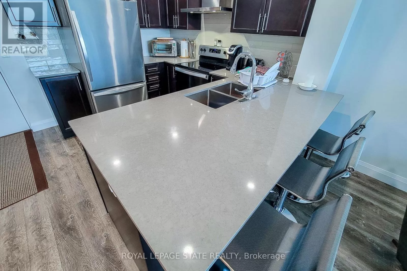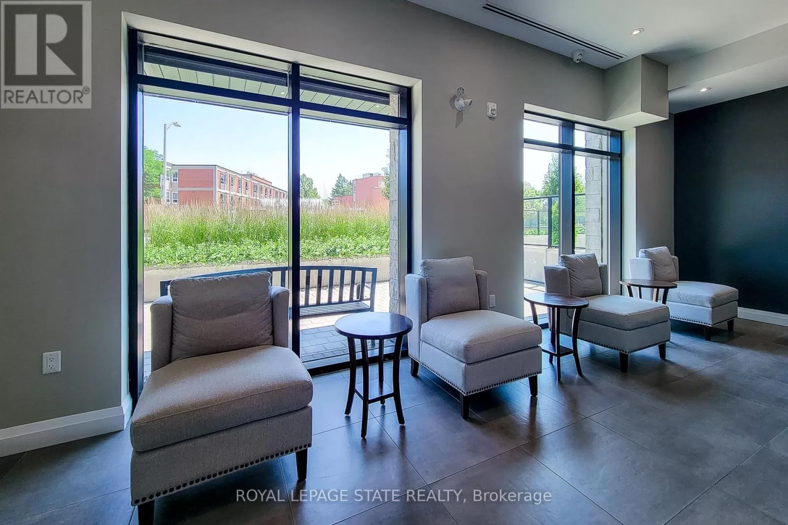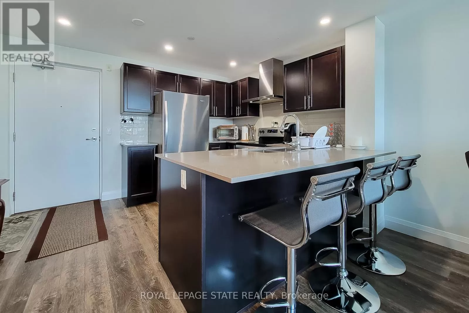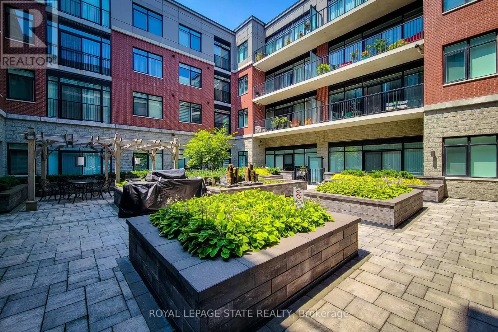 Cross Streets: Sanatorium Road. ** Directions: Mohawk Road West/Sanatorium Road/Redfern Avenue. Welcome to modern, upscale living at Scenic Trails Condos, nestled in Hamilton's highly sought-after Mountview neighbourhood. This beautifully upgraded one-bedroom, one-bathroom condo offers the perfect blend of style, comfort, and convenience. Ideal for first-time buyers, downsizers, or investors, this main floor unit features a bright, open-concept layout with 9' ceilings, floor-to-ceiling south-facing windows, and custom blinds that fill the space with natural light. The kitchen is complete with stainless steel appliances, quartz countertops, perfect for cooking and entertaining. The spacious bedroom includes a walk-in closet, while the main bathroom and in-suite laundry add everyday ease. Step outside to your private open terrace with ideal for morning coffee or evening relaxation. Enjoy top-tier building amenities including a state-of-the-are gym, party room, billiards lounge with wet bar, games room, theatre room, and a beautifully landscaped courtyard with BBQs, fountain, fireplace, and lounge seating. This unit comes with an owned underground parking spot and locker. Located in a prime location close to absolutely everything! (id:27476)