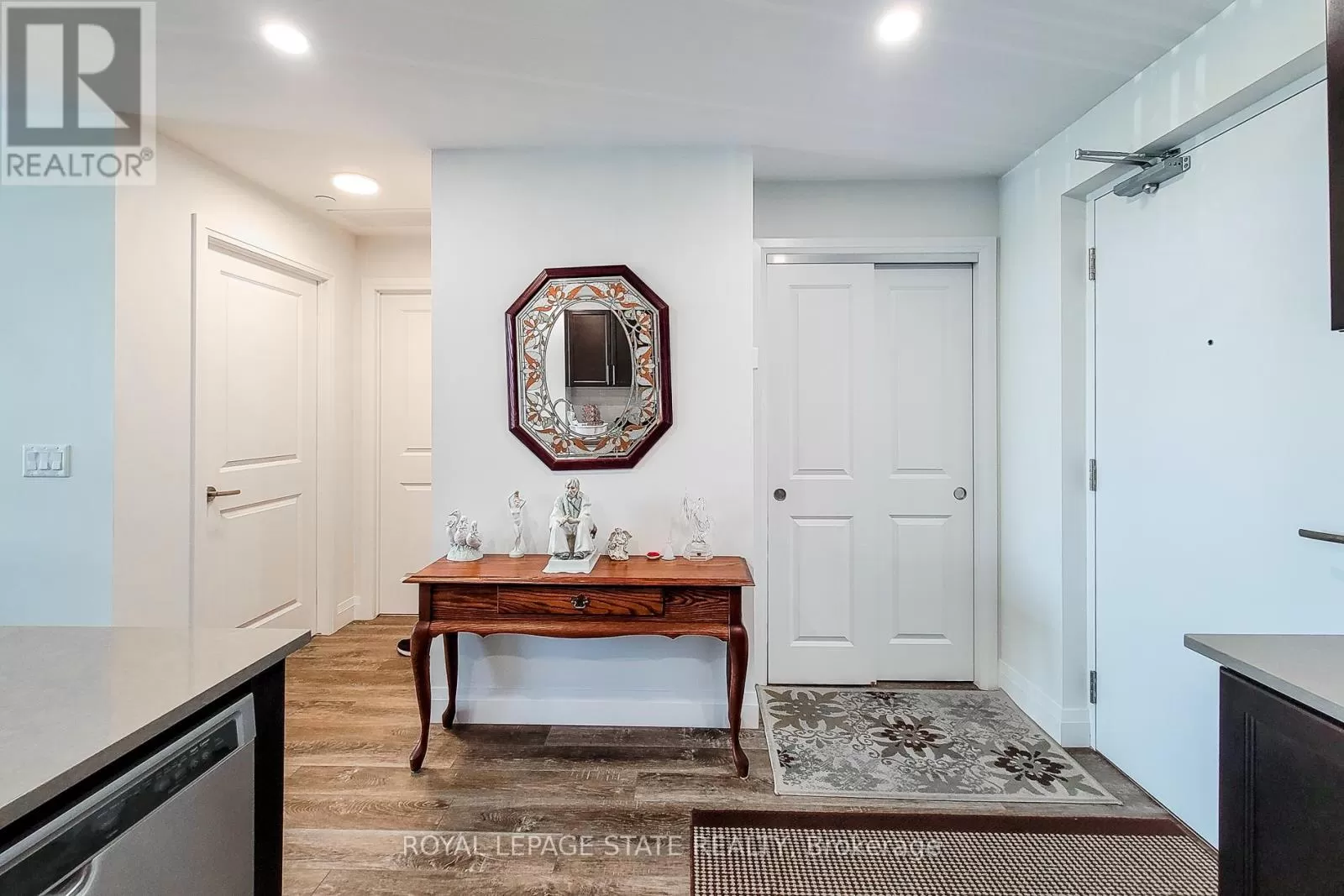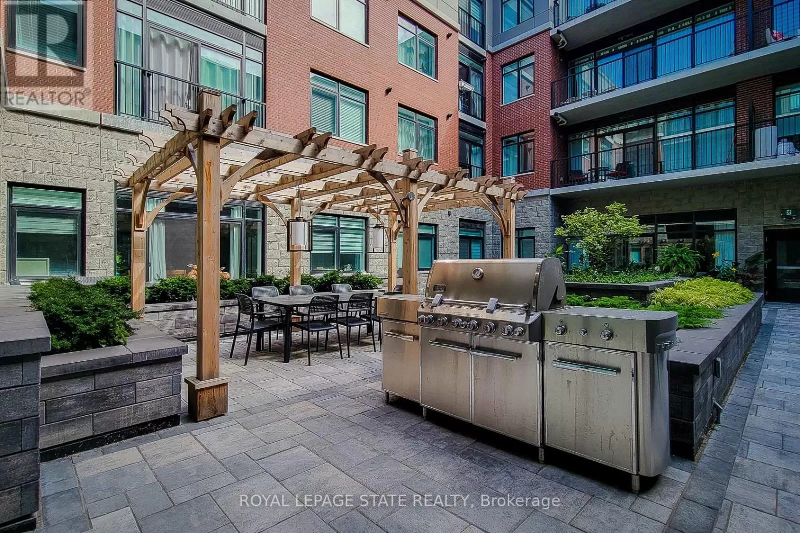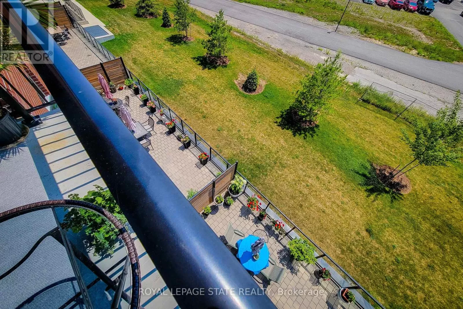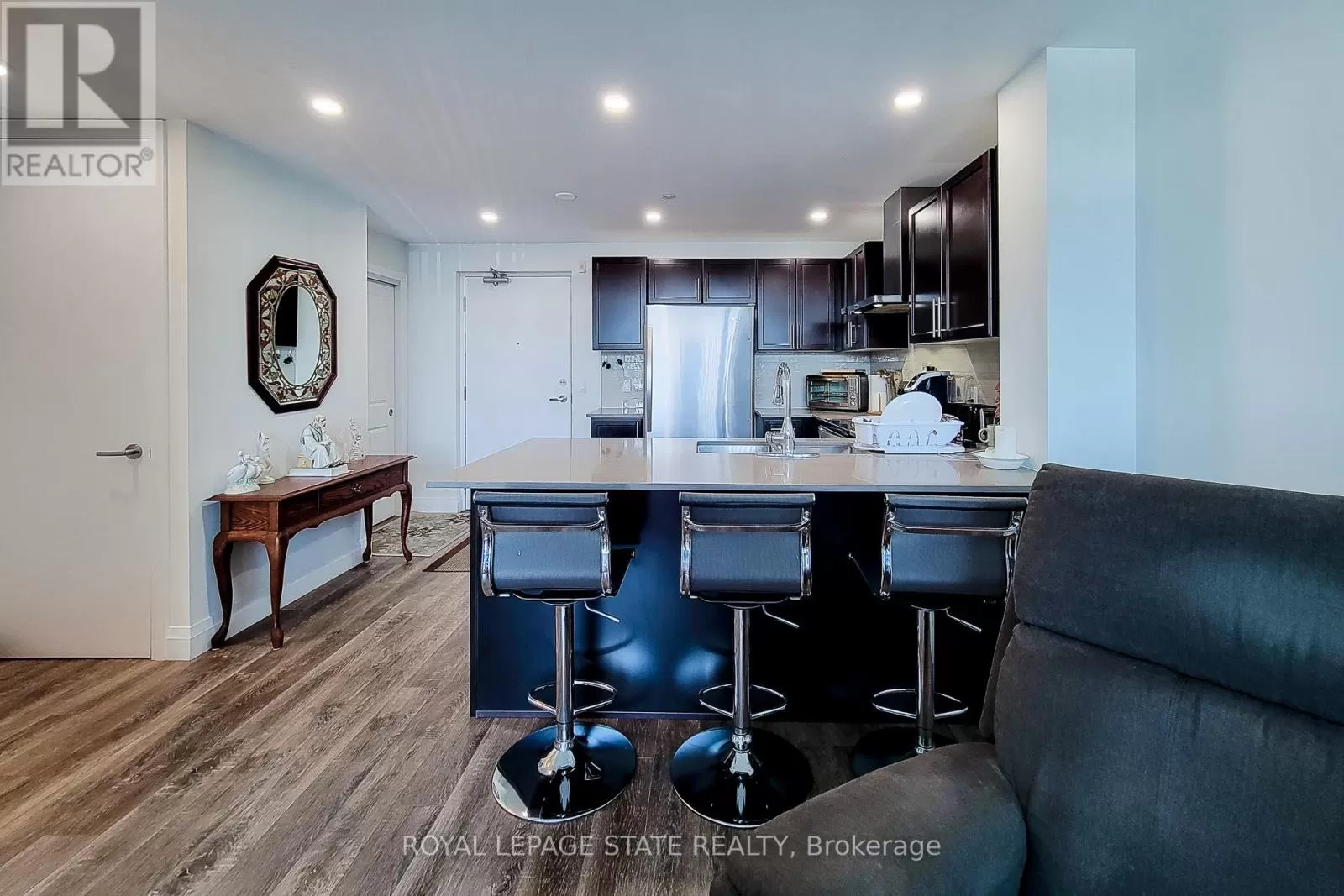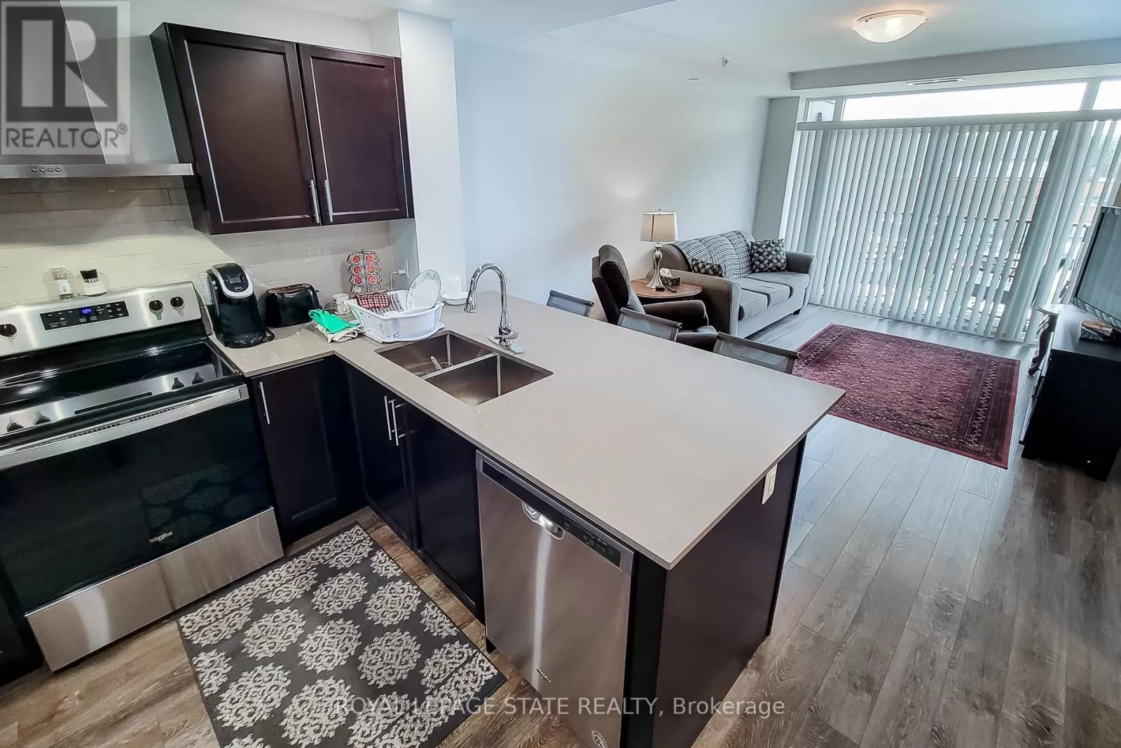 Cross Streets: Sanatorium Road. ** Directions: Mohawk Road West/Sanatorium Road/Redfern Avenue. Welcome to modern, upscale living at Scenic Trails Condos, nestled in Hamilton's highly sought-after Mountview neighbourhood. This beautifully upgraded one-bedroom, one-bathroom condo offers the perfect blend of style, comfort, and convenience. Ideal for first-time buyers, downsizers, or investors, this main floor unit features a bright, open-concept layout with 9' ceilings, floor-to-ceiling south-facing windows, and custom blinds that fill the space with natural light. The kitchen is complete with stainless steel appliances, quartz countertops, perfect for cooking and entertaining. The spacious bedroom includes a walk-in closet, while the main bathroom and in-suite laundry add everyday ease. Step outside to your private open terrace with ideal for morning coffee or evening relaxation. Enjoy top-tier building amenities including a state-of-the-are gym, party room, billiards lounge with wet bar, games room, theatre room, and a beautifully landscaped courtyard with BBQs, fountain, fireplace, and lounge seating. This unit comes with an owned underground parking spot and locker. Located in a prime location close to absolutely everything! (id:27476)