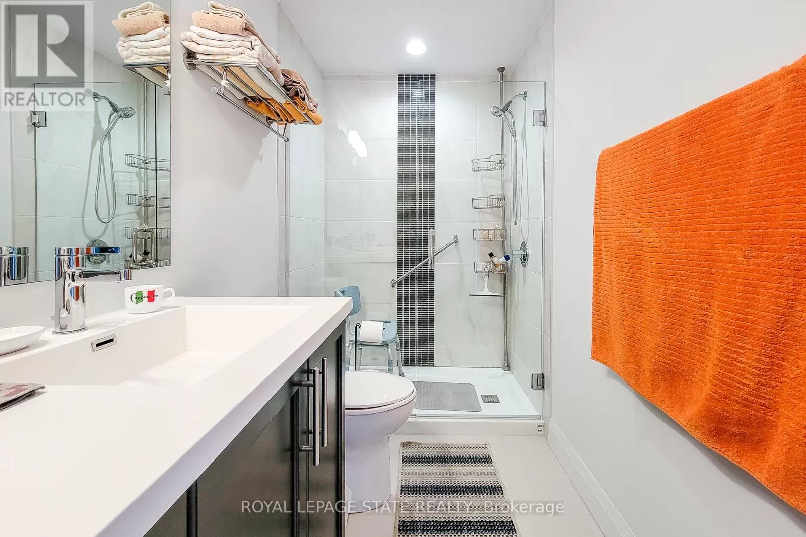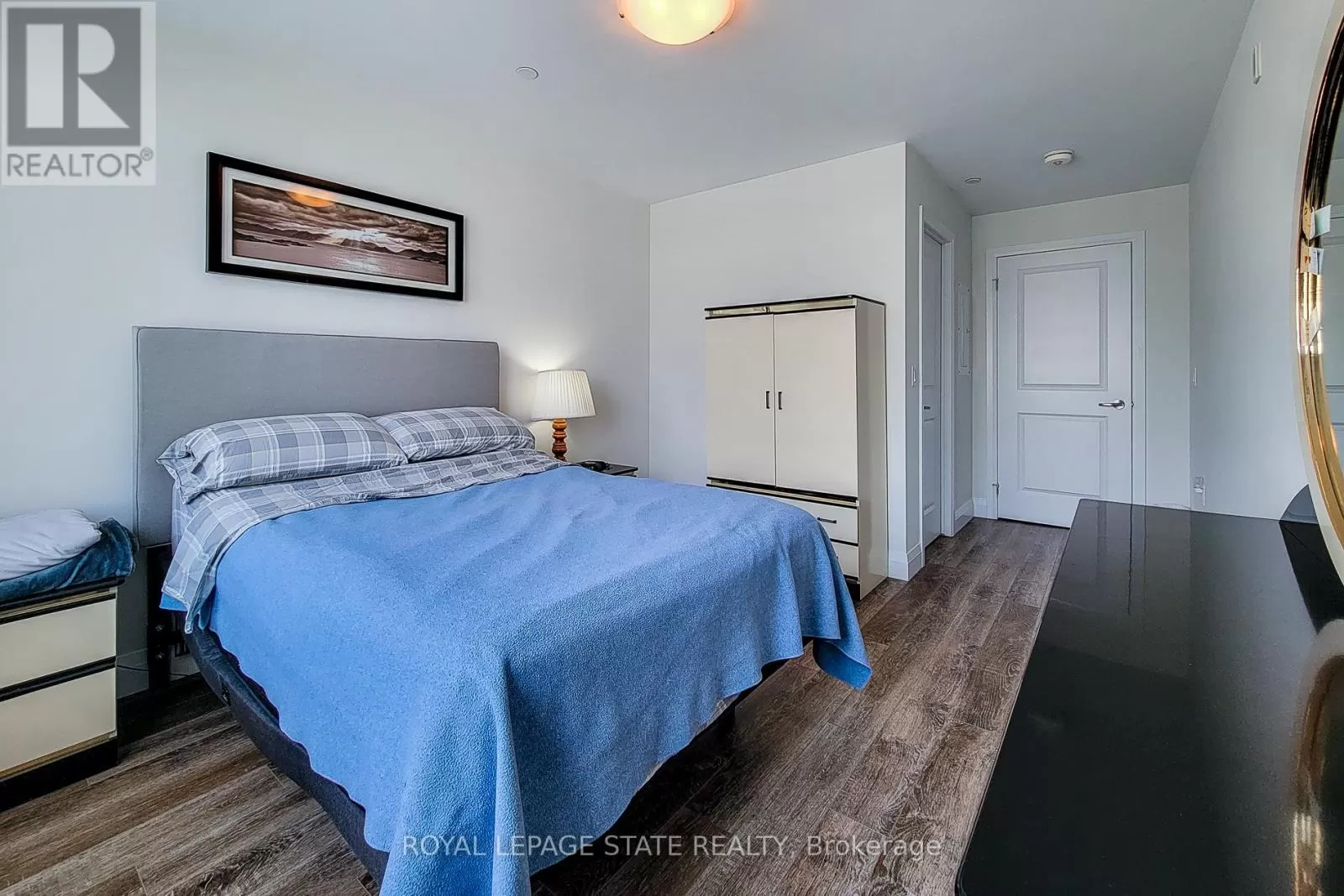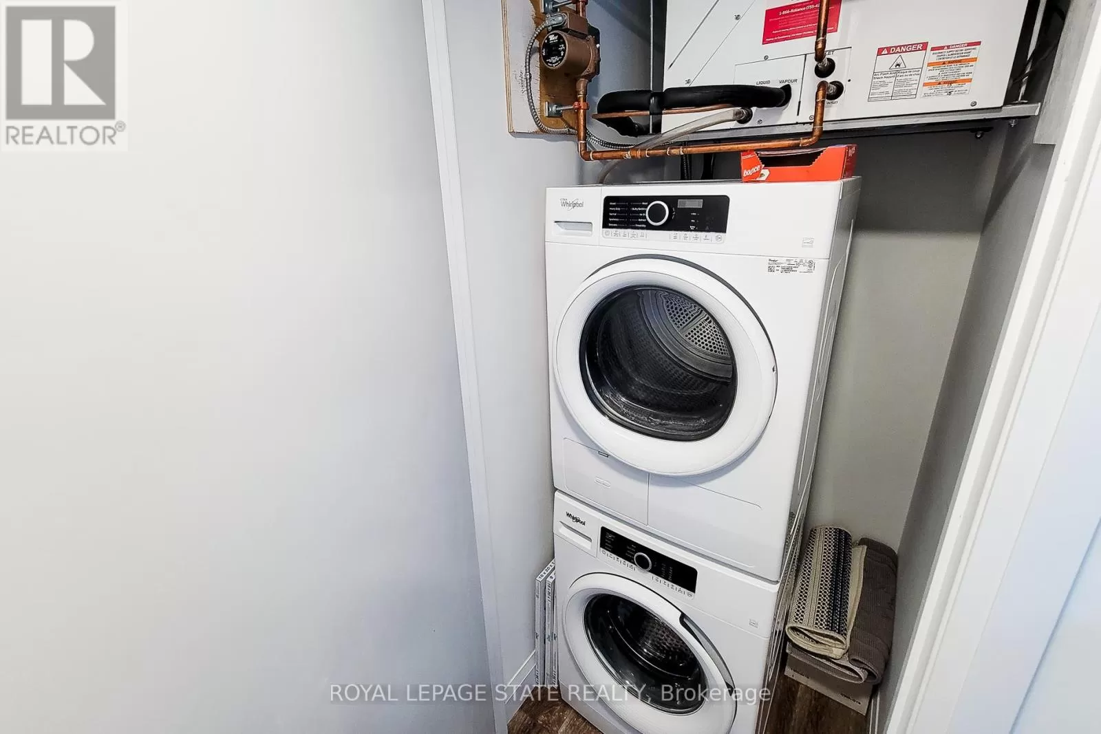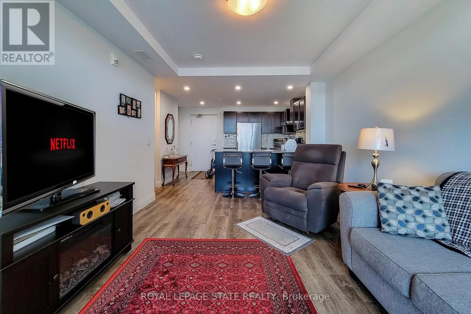 Cross Streets: Sanatorium Road. ** Directions: Mohawk Road West/Sanatorium Road/Redfern Avenue. Welcome to modern, upscale living at Scenic Trails Condos, nestled in Hamilton's highly sought-after Mountview neighbourhood. This beautifully upgraded one-bedroom, one-bathroom condo offers the perfect blend of style, comfort, and convenience. Ideal for first-time buyers, downsizers, or investors, this main floor unit features a bright, open-concept layout with 9' ceilings, floor-to-ceiling south-facing windows, and custom blinds that fill the space with natural light. The kitchen is complete with stainless steel appliances, quartz countertops, perfect for cooking and entertaining. The spacious bedroom includes a walk-in closet, while the main bathroom and in-suite laundry add everyday ease. Step outside to your private open terrace with ideal for morning coffee or evening relaxation. Enjoy top-tier building amenities including a state-of-the-are gym, party room, billiards lounge with wet bar, games room, theatre room, and a beautifully landscaped courtyard with BBQs, fountain, fireplace, and lounge seating. This unit comes with an owned underground parking spot and locker. Located in a prime location close to absolutely everything! (id:27476)