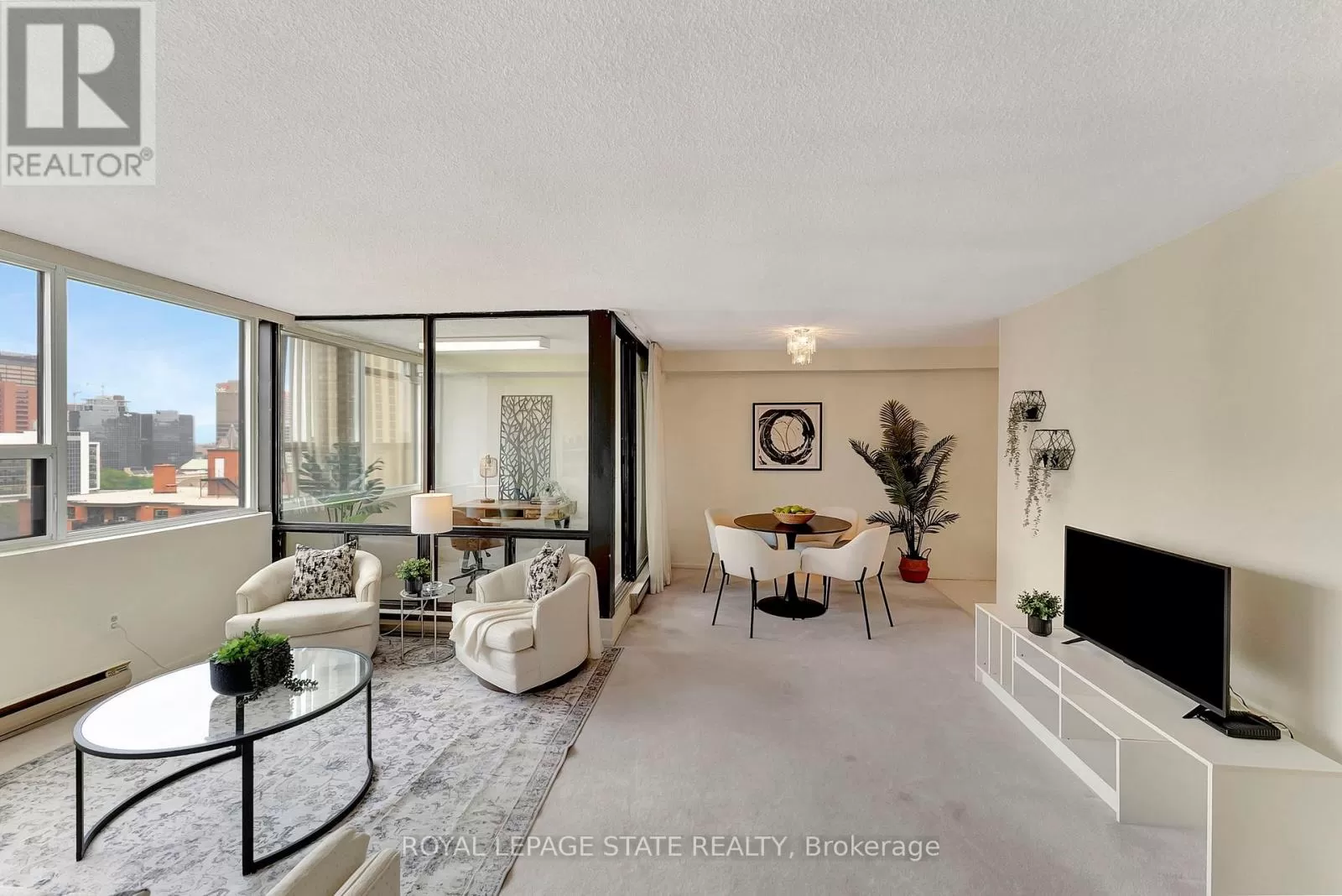 Cross Streets: Duke & Bay. ** Directions: Caroline St to Duke. Discover urban living at The Durand. This bright, spacious 2 bedroom plus den, 1.5 bathroom unit offers the convenience of in suite laundry and access to many wonderful building amenities. Updated eat in kitchen features white cabinetry, ample counter space, appliances and pantry. Also features a separate dining area open to the bright living room and den. Residents enjoy exclusive access to an indoor pool, hot tub, sauna, fitness room, library, ample covered visitor parking and community outdoor spaces complete with BBQs for entertaining. The neighbourhood boasts excellent walkability steps away from shops, restaurants & proximity to St. Joseph's hospital. Close to Durand Park offering green space and a playground & the Bruce Trail is easily accessible. Commuting is a breeze with quick access to the Hamilton GO station& easy access to major highways. Enjoy the exclusive use underground parking space. (id:27476)