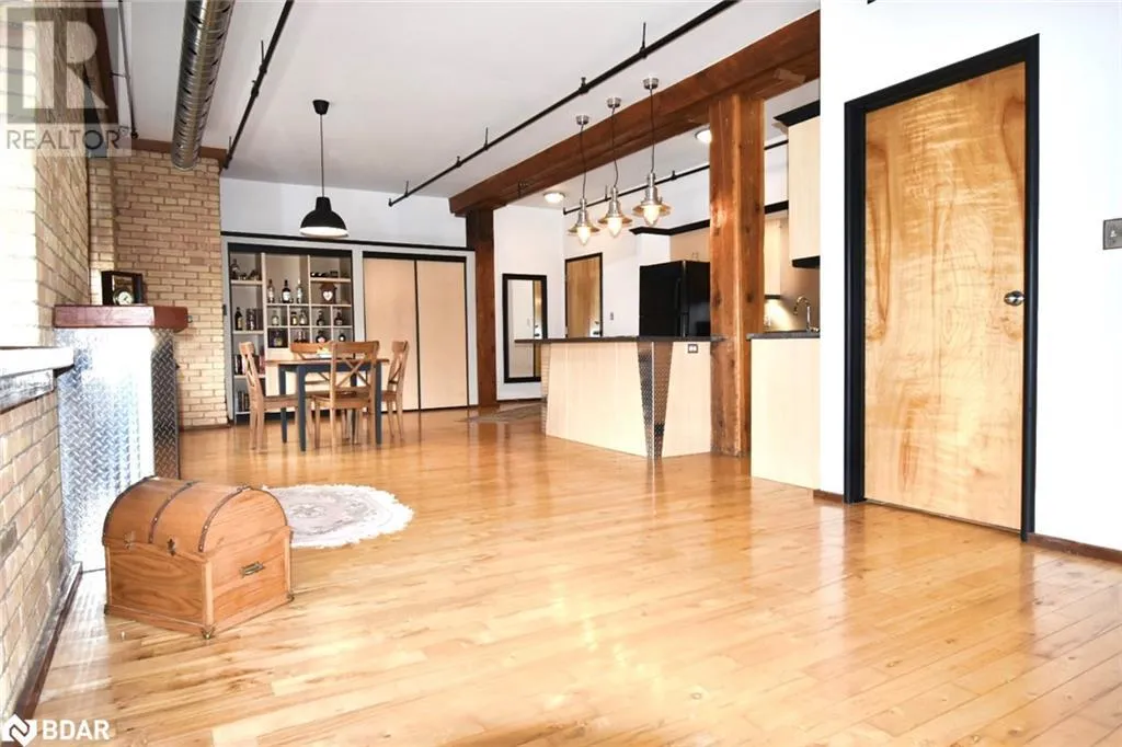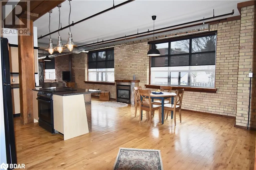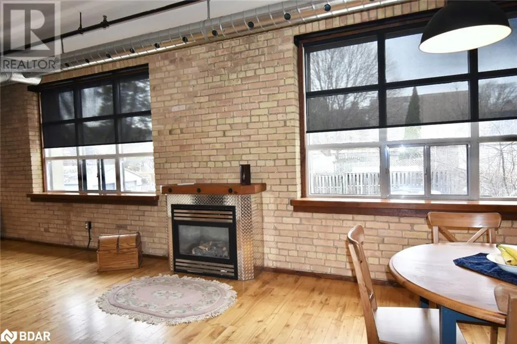 MAIN ST WEST TO MARGARET ST Beautiful New York style loft is just steps away from Hamiltons trendy Locke Street with a variety of restaurants and shops. Over 1100 sq ft with soaring ceiling, huge warehouse style windows, immaculate natural finish hardwood flooring, exposed brick and wood beams. The open concept living/dining grant you complete creative control to layout your space to match your lifestyle. Complete with a gas fireplace. Great space for entertaining! Large Master Bedroom with loads of closet space. Ensuite Laundry. Common patio area. Beautifully maintained property! Easy mountain access and close to both McMaster University and St. Joe's hospital. Just up the street from Victoria Park - known for its lush grassy areas, community basketball, tennis and squash courts. Quick highway access and LRT line on King street. This home shows amazing and offers the perfect urban lifestyle! (id:27476)