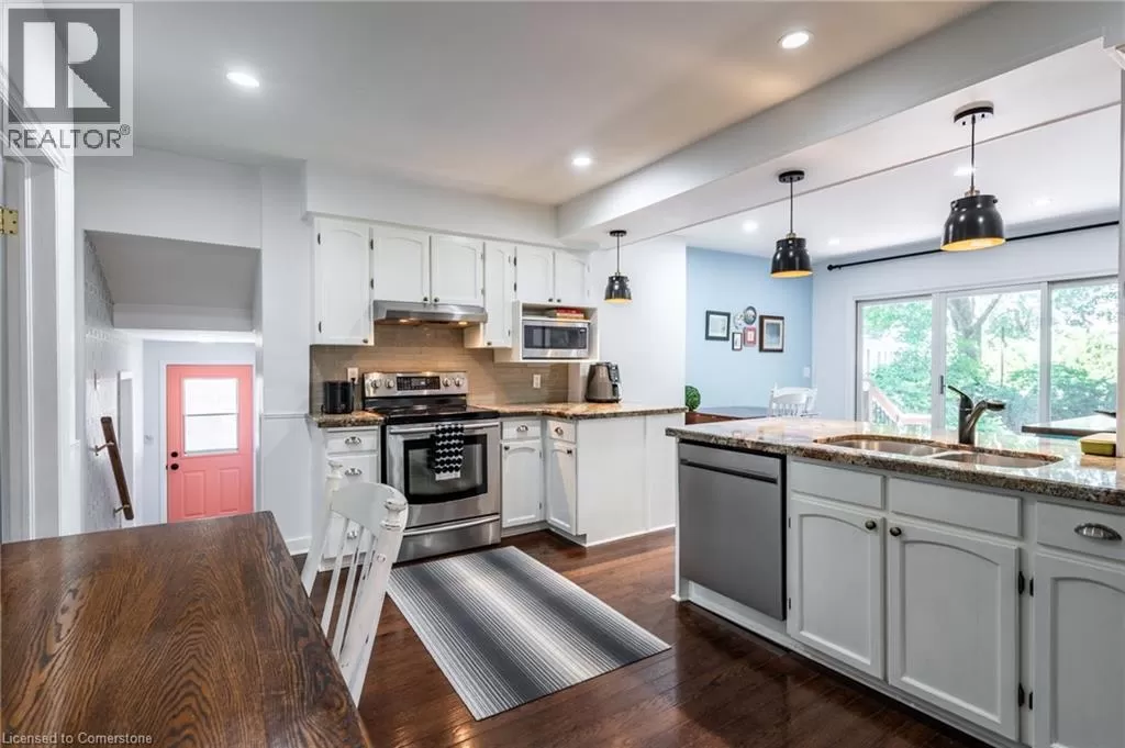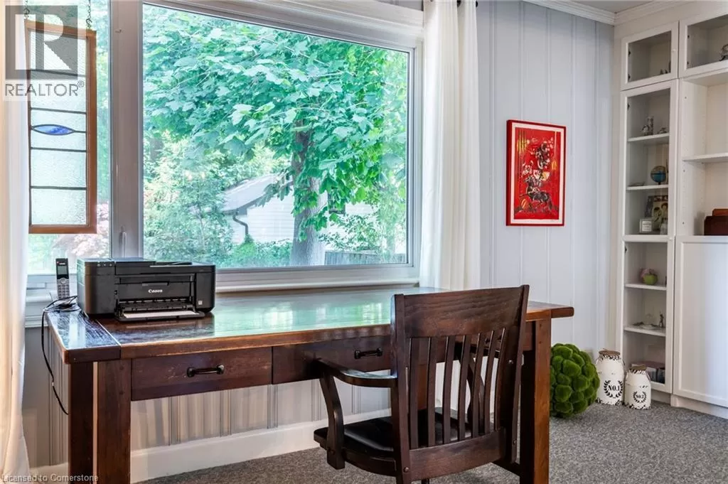 Fennell Ave W to Upper James St to Inverness Ave W Located on the sought after Inverness Avenue W, this beautiful home has so much to offer! As you enter the home, you are welcomed into a tasteful two-storey foyer. To the right of the foyer is a stunningly bright living room with a wood burning fireplace. Explore further into the main floor and find a formal dining area, a private office space with built in cabinetry, a two-piece bathroom, cozy family room with a woodburning fireplace and a large eat in kitchen with a walk out to a great deck. On the second floor, we have five generous bedrooms with a full family bathroom, perfect for the growing family. The backyard is a large private oasis with manicured gardens, a private patio area and a cute shed for all your gardening supplies. This one-of-a-kind home, has a bus stop to nearby Hillfield Strathallan College and good public schools, walking distance to Mohawk College, Sam Lawrence and Southam Park. This is a rare opportunity in a great area and close to just about everything. Donât be TOO LATE*! *REG TM. RSA. (id:27476)