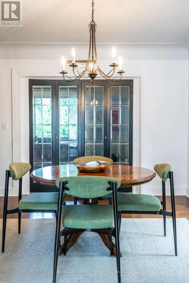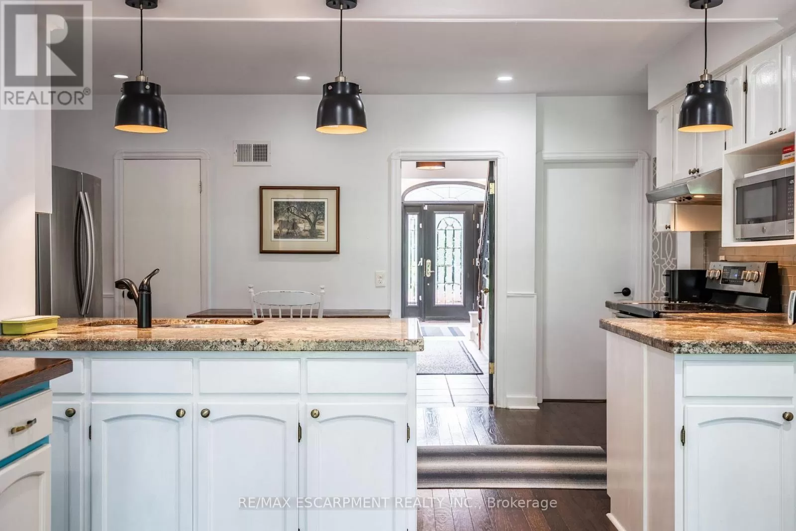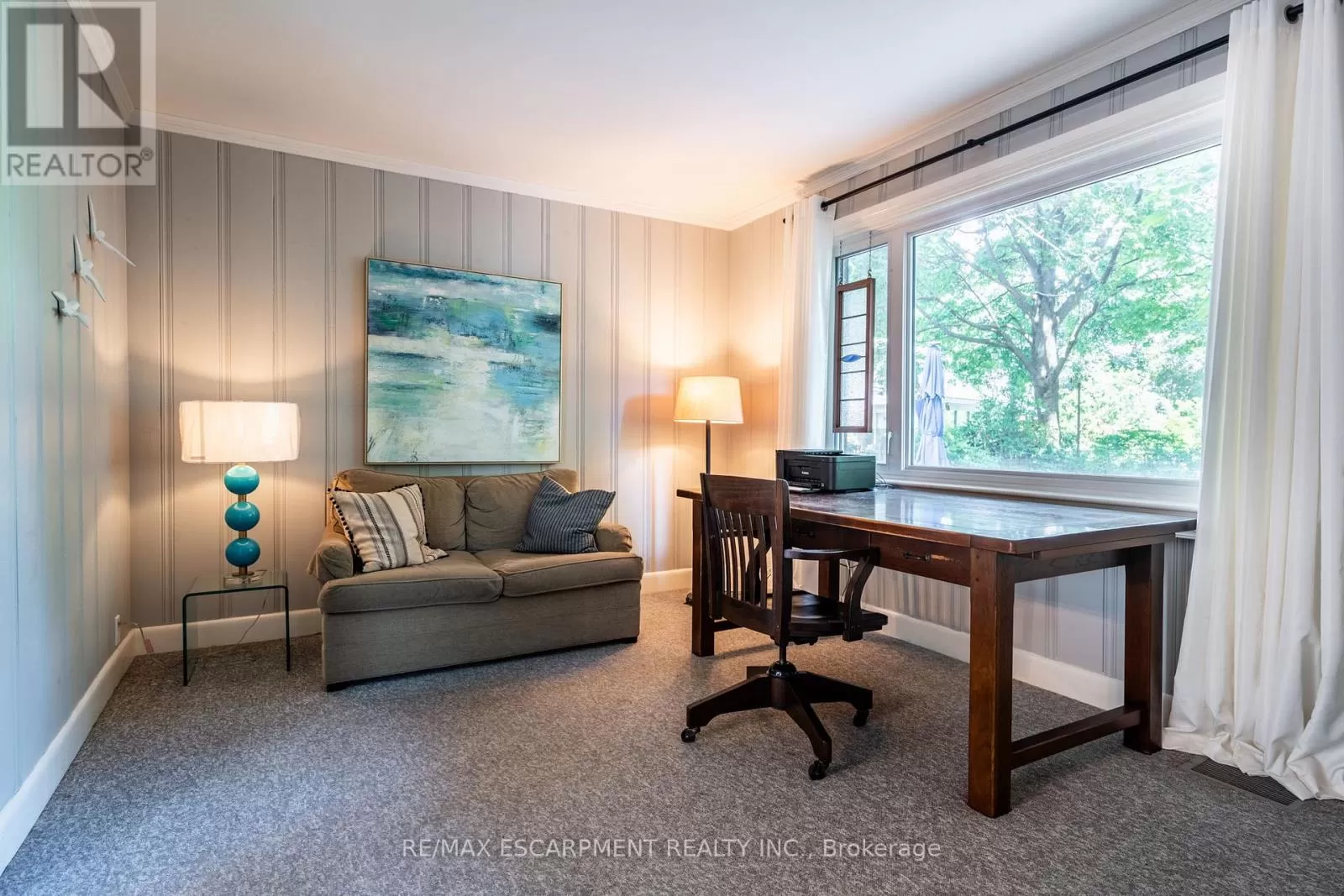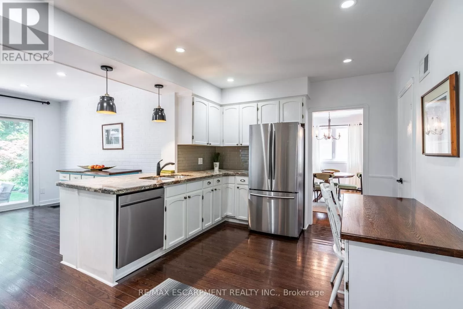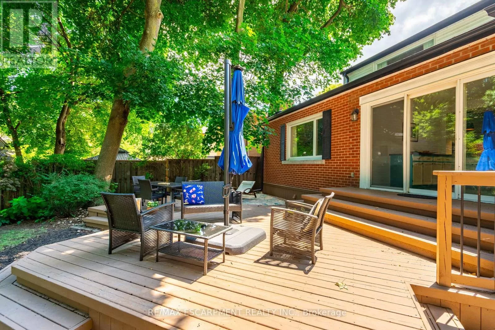 Fennell Ave W to Upper James St to Inverness Ave W Located on the sought after Inverness Avenue W, this beautiful home has so much to offer! As you enter the home, you are welcomed into a tasteful two-storey foyer. To the right of the foyer is a stunningly bright living room with a wood burning fireplace. Explore further into the main floor and find a formal dining area, a private office space with built in cabinetry, a two-piece bathroom, cozy family room with a woodburning fireplace and a large eat in kitchen with a walk out to a great deck. On the second floor, we have five generous bedrooms with a full family bathroom, perfect for the growing family. The backyard is a large private oasis with manicured gardens, a private patio area and a cute shed for all your gardening supplies. This one-of-a-kind home, has a bus stop to nearby Hillfield Strathallan College and good public schools, walking distance to Mohawk College, Sam Lawrence and Southam Park. RSA. (id:27476)