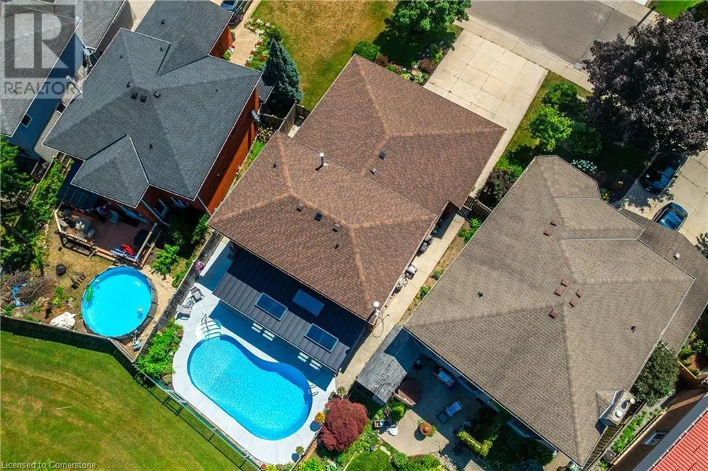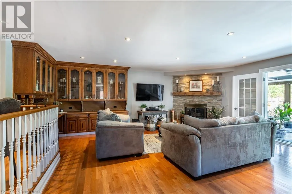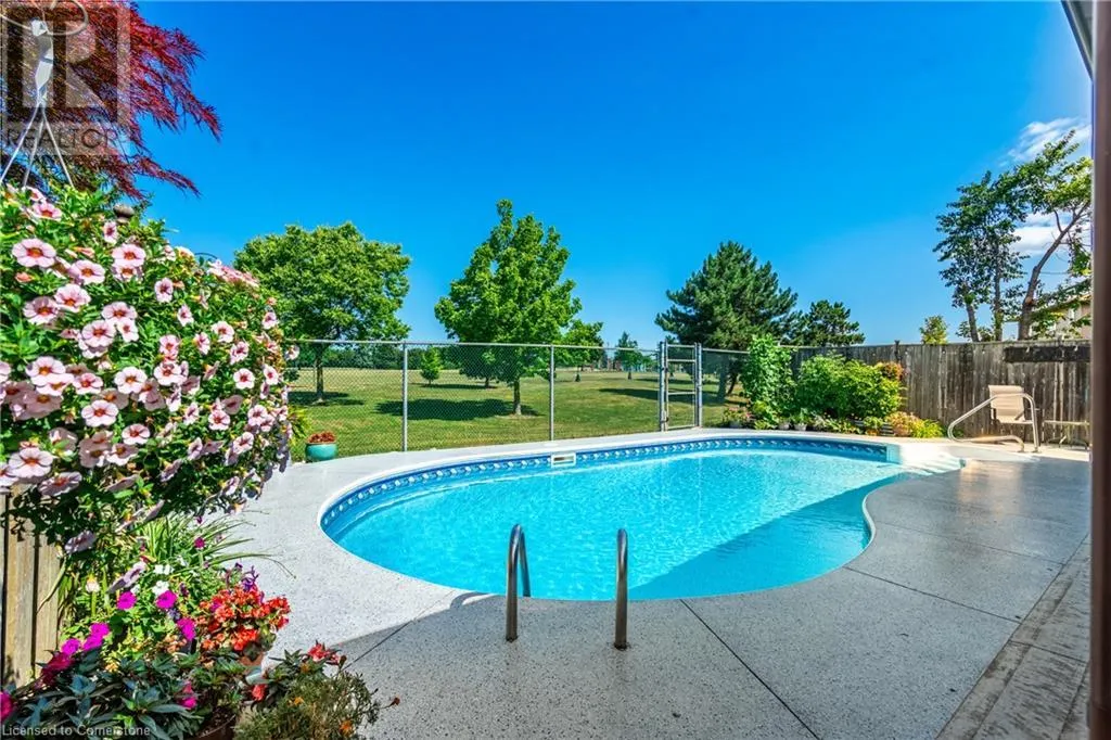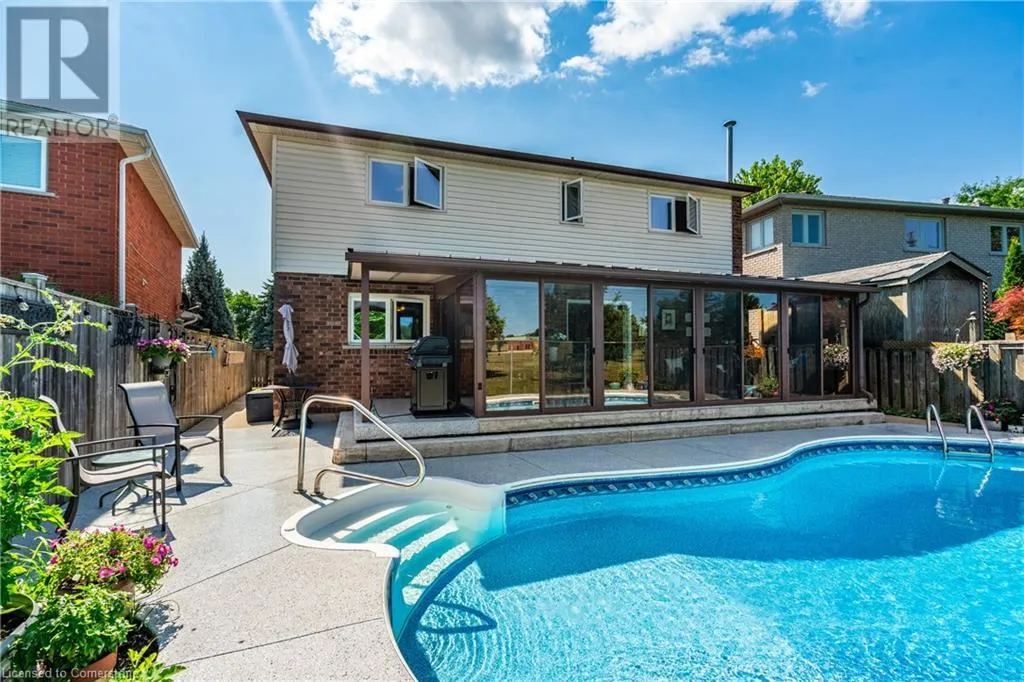 Rymal Rd E to Republic Ave This is the family home youâve been waiting forânot your typical cookie-cutter build. Custom built, thoughtfully updated, and backing onto the peaceful green space of Elmar Park, this one-of-a-kind property offers space, comfort, and quality you can feel the moment you walk in. Located in one of the Hamilton Mountainâs most desirable neighbourhoods near Rymal and Upper Wentworth, youâre just minutes from top-rated schools, parks, shopping, restaurants, golf, highway access, and the airport. Inside, the layout is designed for real family living. Enjoy a bright living room for everyday connection, a formal dining room for hosting, a cozy sunken family room with a fireplace for movie nights, and a charming kitchen nook perfect for morning routines or after-school chats. The kitchen is the heart of the homeâupdated with high-end stainless steel appliances, ideal for busy family life. Upstairs, youâll find three spacious bedrooms and two full baths. The main floor offers a rare fourth bedroom and full bathâgreat for guests or multi-generational living. The newly finished basement is a showstopper with a full wet bar, fireplace, gym, office, and additional bedroom potentialâoffering flexible space to work, play, or unwind. One of the true highlights of this home is the bonus sunroomâa versatile extension of your living space that adds incredible functionality for everyday use and entertaining.. Step outside to your private backyard escape with a fenced in-ground pool (liner 2022, top-line Hayward heater 2025), vegetable gardens, and peaceful park views. Major updates include: roof (2022), windows (2018), furnace & A/C (2020), kitchen (2014), front steps (2022), and more. Tankless hot water heater (rental). If you're are tired of seeing the same cookie-cutter builds with thin walls and bland layoutsâget in this home! Itâs warm, unique, and truly feels like home! (id:27476)