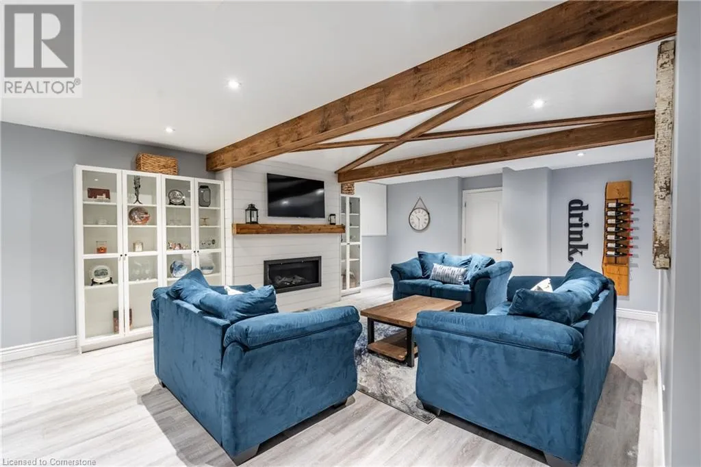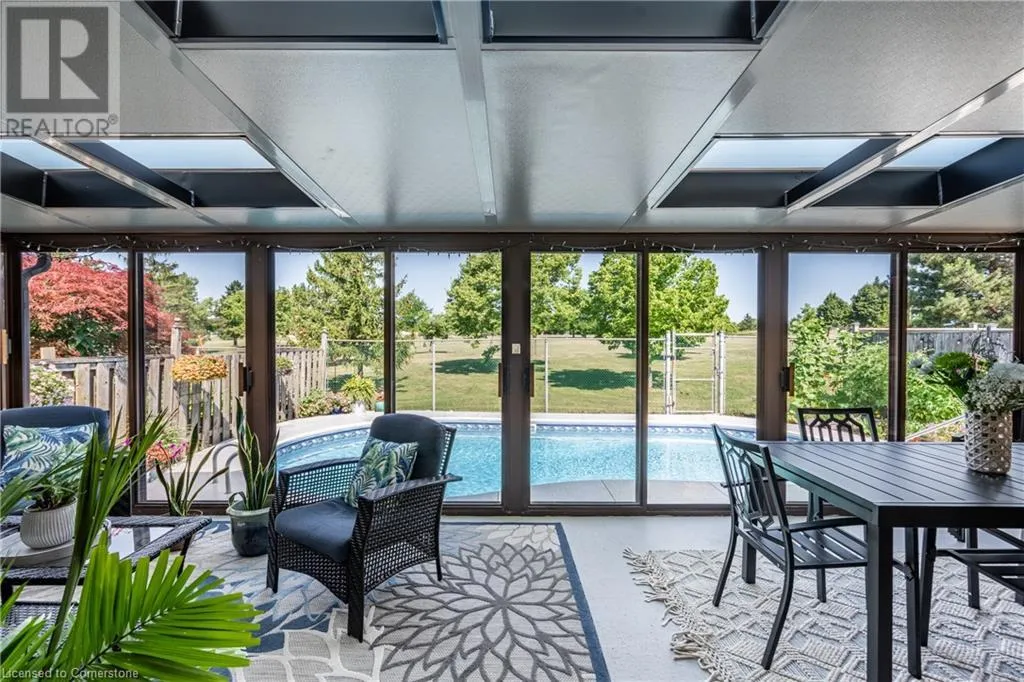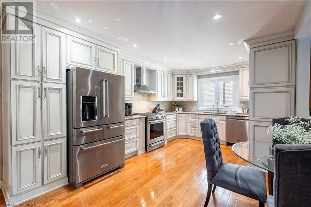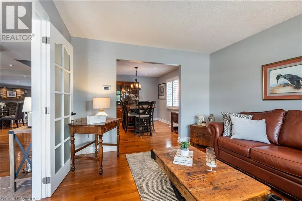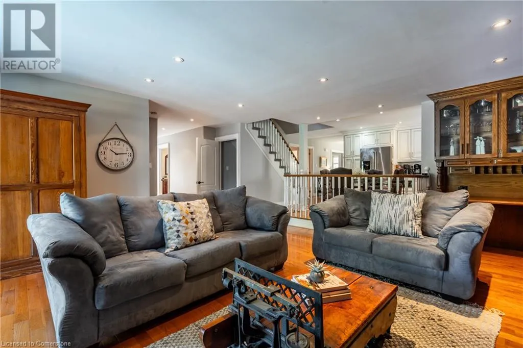 Rymal Rd E to Republic Ave This is the family home youâve been waiting forânot your typical cookie-cutter build. Custom built, thoughtfully updated, and backing onto the peaceful green space of Elmar Park, this one-of-a-kind property offers space, comfort, and quality you can feel the moment you walk in. Located in one of the Hamilton Mountainâs most desirable neighbourhoods near Rymal and Upper Wentworth, youâre just minutes from top-rated schools, parks, shopping, restaurants, golf, highway access, and the airport. Inside, the layout is designed for real family living. Enjoy a bright living room for everyday connection, a formal dining room for hosting, a cozy sunken family room with a fireplace for movie nights, and a charming kitchen nook perfect for morning routines or after-school chats. The kitchen is the heart of the homeâupdated with high-end stainless steel appliances, ideal for busy family life. Upstairs, youâll find three spacious bedrooms and two full baths. The main floor offers a rare fourth bedroom and full bathâgreat for guests or multi-generational living. The newly finished basement is a showstopper with a full wet bar, fireplace, gym, office, and additional bedroom potentialâoffering flexible space to work, play, or unwind. One of the true highlights of this home is the bonus sunroomâa versatile extension of your living space that adds incredible functionality for everyday use and entertaining.. Step outside to your private backyard escape with a fenced in-ground pool (liner 2022, top-line Hayward heater 2025), vegetable gardens, and peaceful park views. Major updates include: roof (2022), windows (2018), furnace & A/C (2020), kitchen (2014), front steps (2022), and more. Tankless hot water heater (rental). If you're are tired of seeing the same cookie-cutter builds with thin walls and bland layoutsâget in this home! Itâs warm, unique, and truly feels like home! (id:27476)