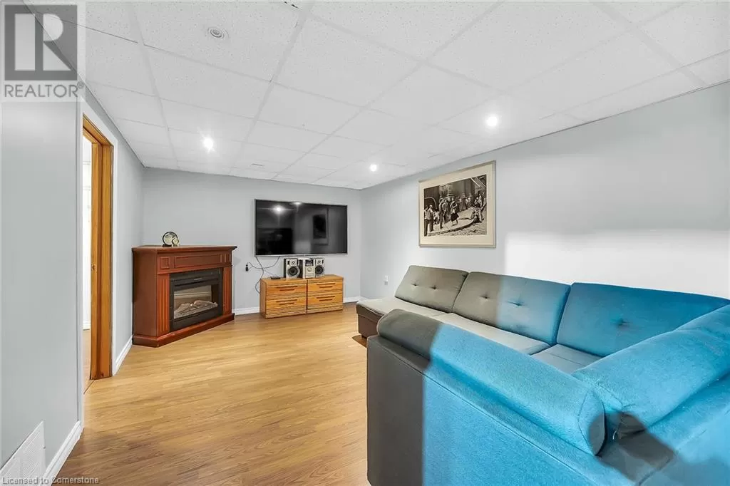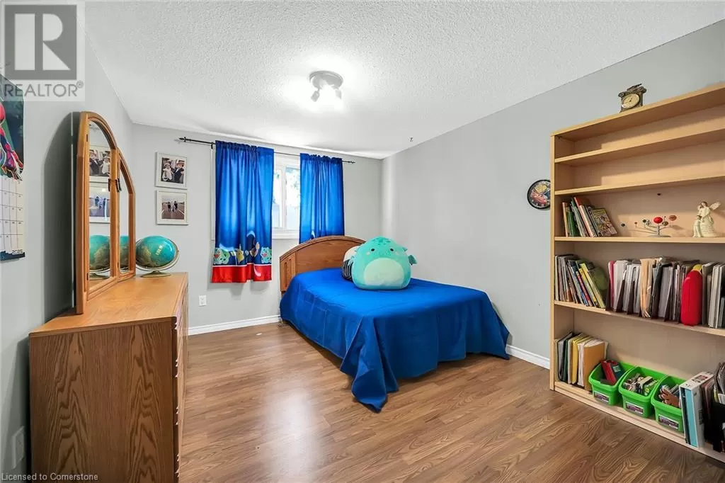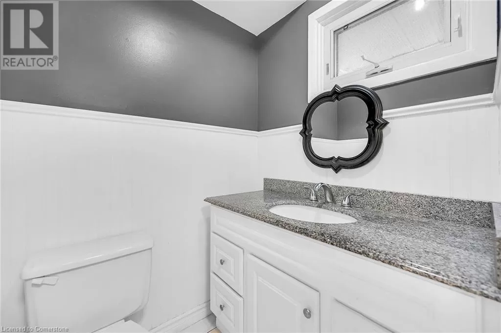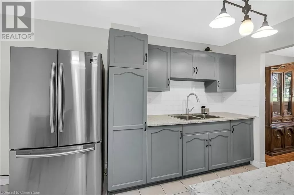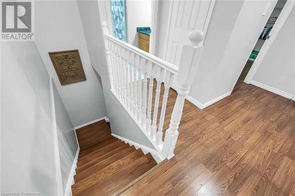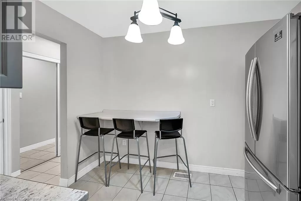 Stone Church Road West to Garth Street. Very well kept fully finished 3 bedroom, 1.5 bath 2 storey townhome with bonus den in quiet complex in desirable west mountain location. Wonderfully peaceful rear yard with no close by rear neighbours. All three levels carpet free. Parquet flooring throughout living room & dining room. Main floor offers functional kitchen with newer countertops 2025, eat-in breakfast bar & ceramic flooring, as well as a formal dining room and spacious living room with sliding door to rear patio & yard plus a convenient powder room. Hardwood staircase leads to second level featuring three generous sized bedrooms, all with laminate flooring, & 4 piece bath with several updates including toilet, vanity & ceramic flooring 2023. Fully finished lower level provides more living space & features roomy & cozy rec room with pot lights & laminate flooring, den (potential 4th bedroom) also with laminate flooring & utility room with laundry area. Two piece rough-in bath offers potential for future extra bathroom. Updated panel box 2015. Some newer windows 2024. Quick and easy access to the Linc. Close to all amenities. (id:27476)