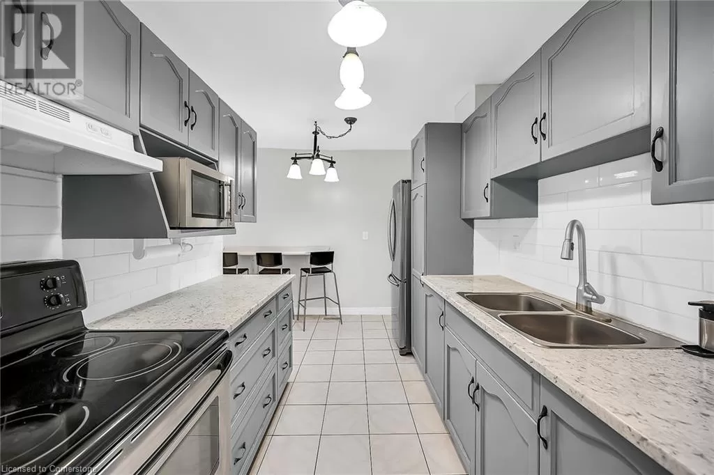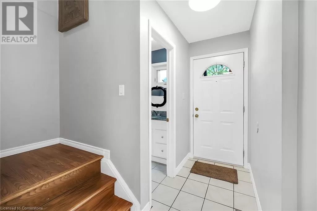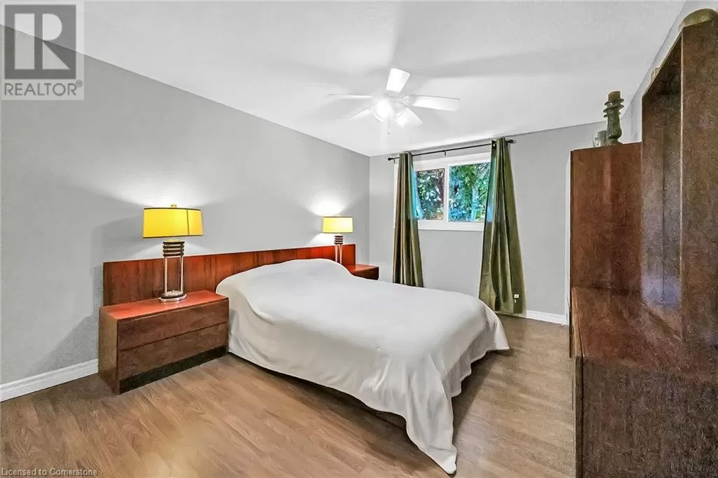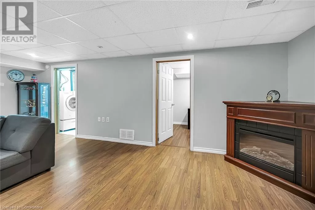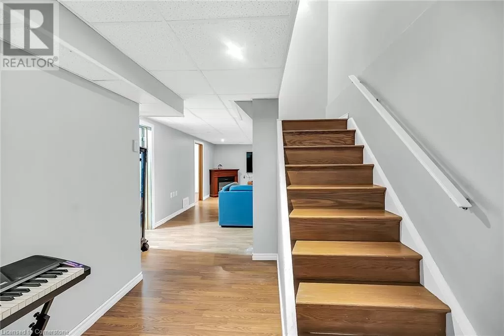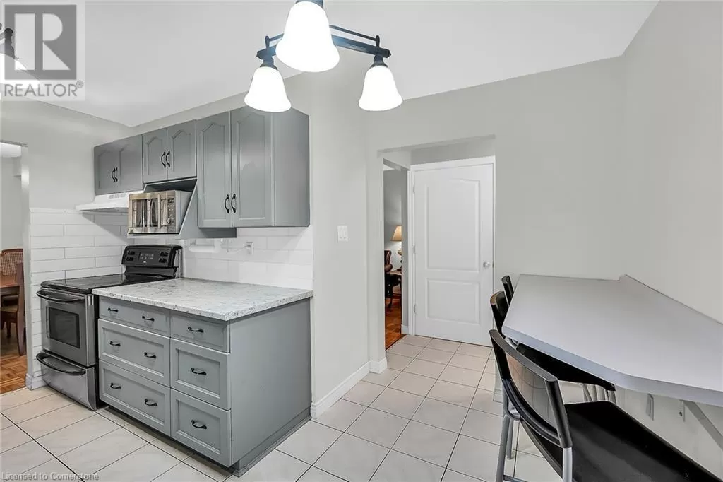 Stone Church Road West to Garth Street. Very well kept fully finished 3 bedroom, 1.5 bath 2 storey townhome with bonus den in quiet complex in desirable west mountain location. Wonderfully peaceful rear yard with no close by rear neighbours. All three levels carpet free. Parquet flooring throughout living room & dining room. Main floor offers functional kitchen with newer countertops 2025, eat-in breakfast bar & ceramic flooring, as well as a formal dining room and spacious living room with sliding door to rear patio & yard plus a convenient powder room. Hardwood staircase leads to second level featuring three generous sized bedrooms, all with laminate flooring, & 4 piece bath with several updates including toilet, vanity & ceramic flooring 2023. Fully finished lower level provides more living space & features roomy & cozy rec room with pot lights & laminate flooring, den (potential 4th bedroom) also with laminate flooring & utility room with laundry area. Two piece rough-in bath offers potential for future extra bathroom. Updated panel box 2015. Some newer windows 2024. Quick and easy access to the Linc. Close to all amenities. (id:27476)