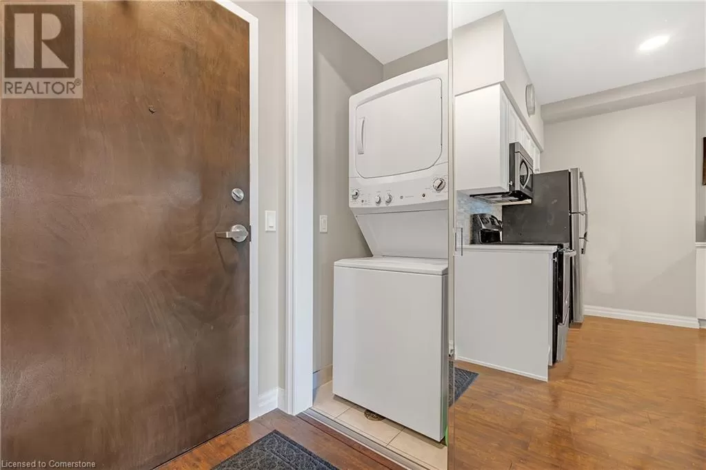 Catharine St. S to King St. E Welcome to 112 King St. E, Hamilton, Unit 1006 - a stunning 2-bedroom, 2-bathroom condo that offers modern urban living at its finest. Situated on the 10th floor, this unit boasts breathtaking views of downtown Hamilton. Enjoy the convenience of in-suite laundry and an ensuite bathroom, along with one underground parking spot and a locker on the same floor. Perfectly located, you're just steps away from two GO stations, public transportation, schools, and shopping. This well-appointed building includes amenities such as a concierge, exercise room, games room, media room, party room, rooftop deck/garden, security guard, and security system. BBQs are permitted, making it ideal for entertaining. All appliances are included in the sale, making this move-in ready home an exceptional value. (id:27476)