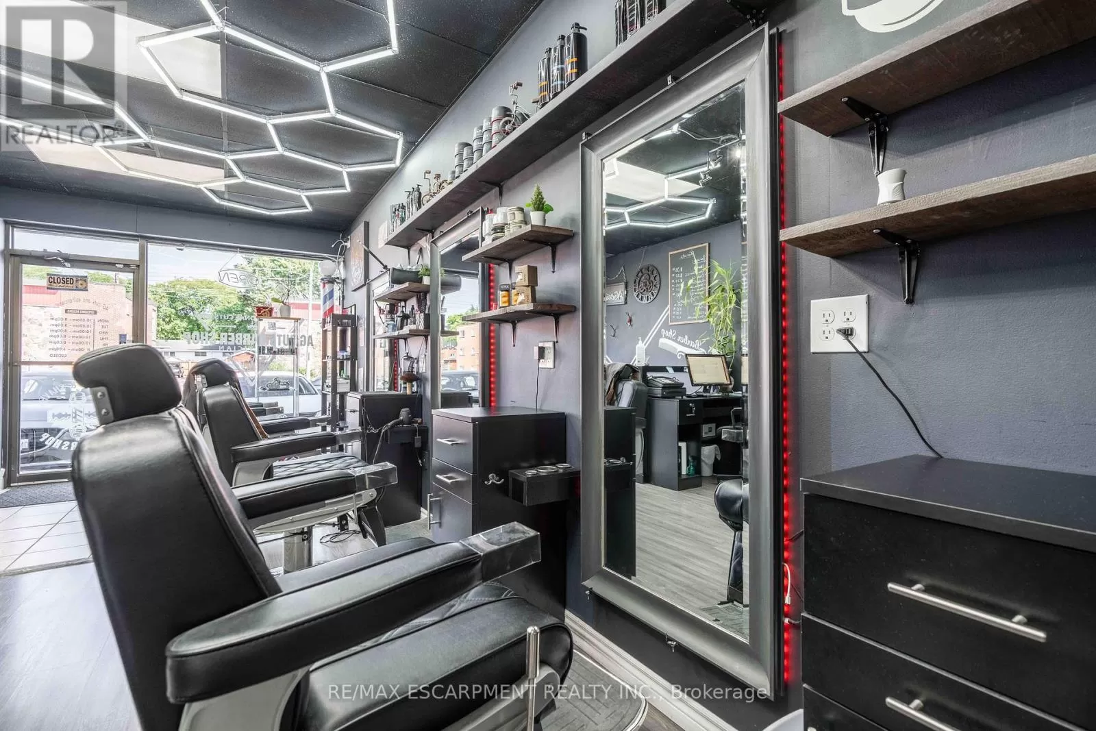 Upper James St and Mohawk Rd Turnkey Barbershop for Sale Prime Hamilton Mountain Location! Don't miss this incredible opportunity to own a newly renovated barbershop in one of Hamilton Mountains most high-traffic areas. This stylish and modern shop features solid sales, a loyal clientele, and unbeatable street visibility - perfect for walk-in traffic and brand exposure. With great lease in place and low overhead, this business is ideal for both experienced barbers and entrepreneurs looking to invest in a thriving operation. All equipment and leasehold improvements are included - just walk in and start earning! (id:27476)