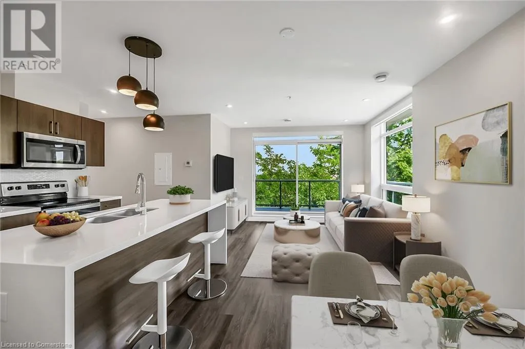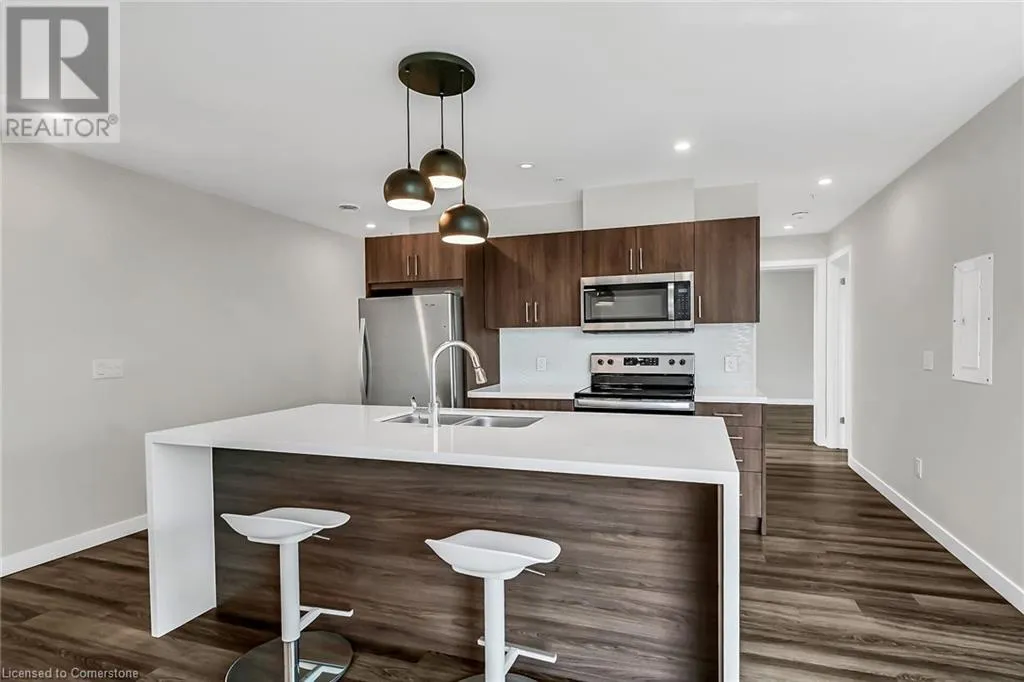 Wentworth to Charlton Ave E Gorgeous 2 bed, 2 bath corner unit in the Vista 3 Condosâbuilt in 2020! Offering 967 sq ft of modern living with underground parking and spacious locker. Enjoy an open-concept floorplan, laminate flooring, pot lights, a sleek kitchen with island and stainless steel appliances, plus a large balcony with North exposure. Enjoy a large primary suite with 3 pc. ensuite and tons of storage and closet space. Located at the base of the escarpment in Hamilton's vibrant Stinson neighbourhood. Building amenities include party room, fitness centre, ample visitor parking, and more. Owned parking #25 & locker included #25. Nothing to do but move in and enjoy. (id:27476)