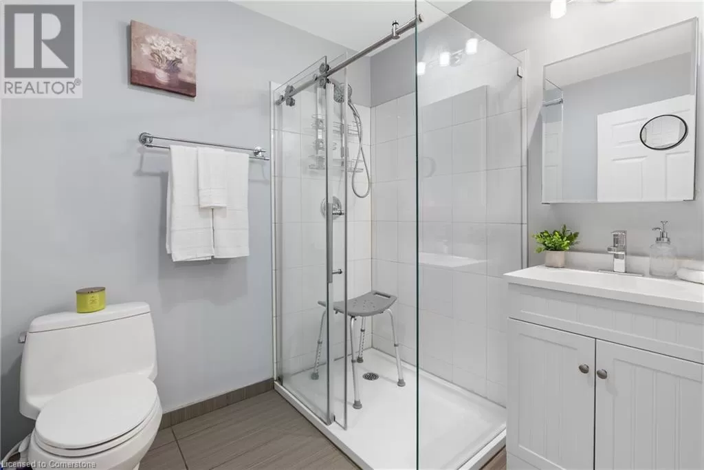 upper james and brucedale ave Rare live/work opportunity in a fully rebuilt mixed-use building on high-traffic Upper James Street. This two-storey property offers approximately 1,843 sq.ft. of finished space, featuring a main-level commercial unit ideal for office or limited retail use, complete with its own washroom and great street visibility. The upper level boasts a modern 1-bedroom, 2-bath residential apartment with a private entranceâperfect for owner-occupancy or rental income. Rebuilt from the ground up in 2015, the property includes 2 private parking spaces, 2 separate furnaces and A/C units, 2 separate hydro meters, and a total of 3 bathrooms. Major upgrades include a new tankless water heater (2025), double drywall between commercial and residential units for added sound separation, new water and sewer lines as per modern residential standards, alarm and camera system (front and back), and a roof with a 25-year warranty. Zoned to allow a range of professional and service-based commercial uses, this is a turnkey opportunity to own and operate your business while living aboveâor collect dual incomeâin one of Hamiltonâs most active commercial corridors. (id:27476)