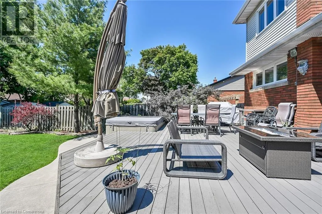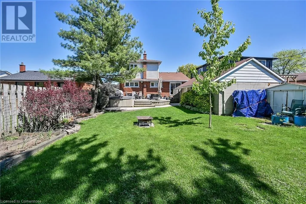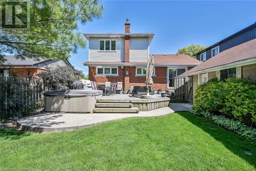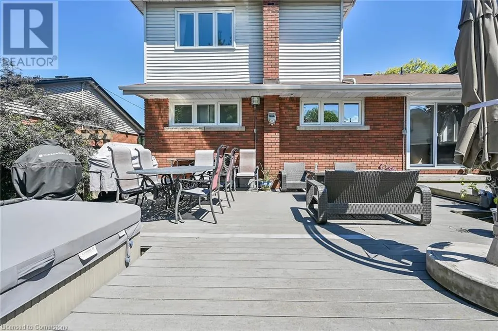 Garth St to Bendamere Ave to West 26th Charming 4-bedroom, 2-bath 2-storey home in highly sought after Hamilton West Mtn location. This home offers plenty of space for todays growing family. Main floor includes large eat-in-kitchen with ample cabinetry, spacious living room, two bedrooms, 3pcs bath and den with patio doors to rear yard deck & hot tub. Two second floor bedrooms and a large basement rec room with fireplace and bar, second bathroom plus storage make this home perfect for families looking for comfort, convenience and functionality. Front/side drive can accommodate parking for 5, plus one in the detached garage. This home is bright and welcoming, features hardwood floors, spacious rooms, and plenty of natural light all in a family friendly neighbourhood. Close to schools, parks, transit, shopping and highway access. (id:27476)