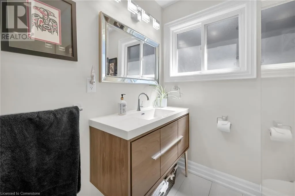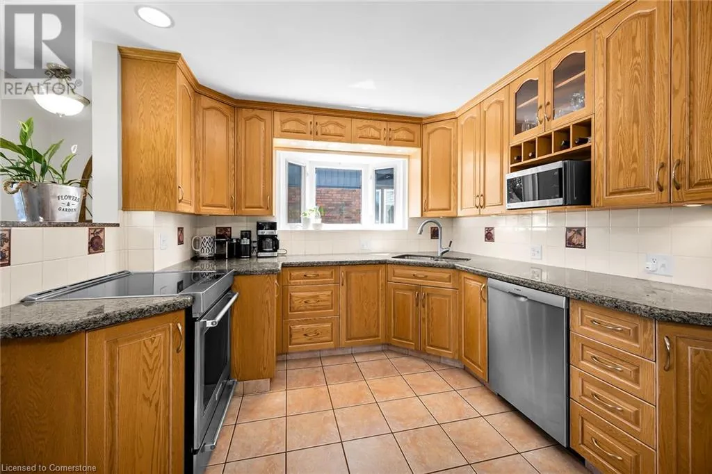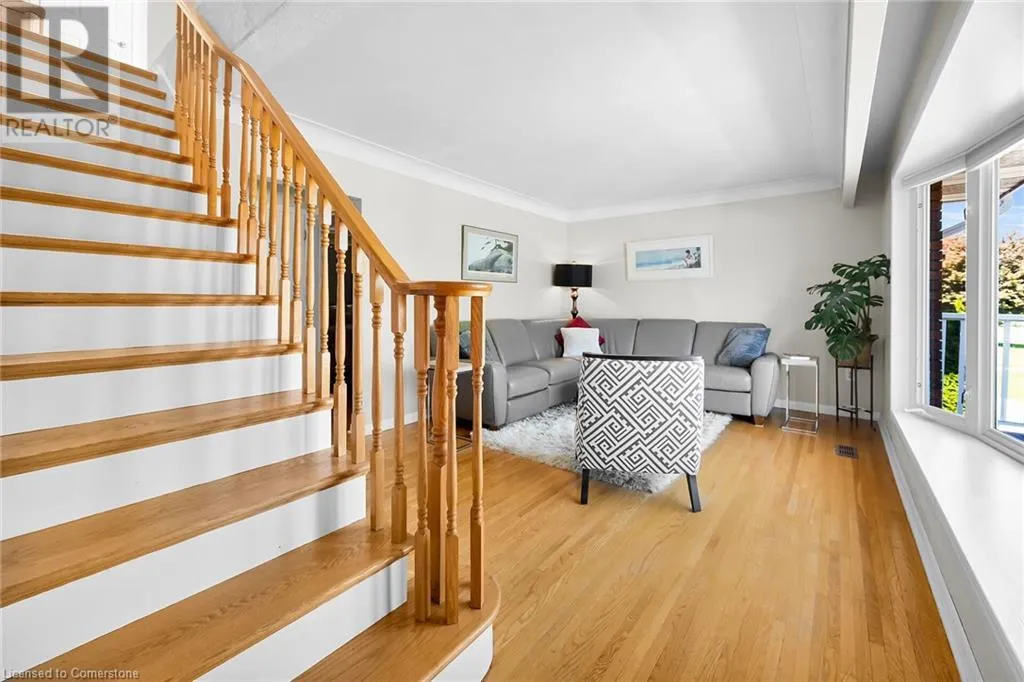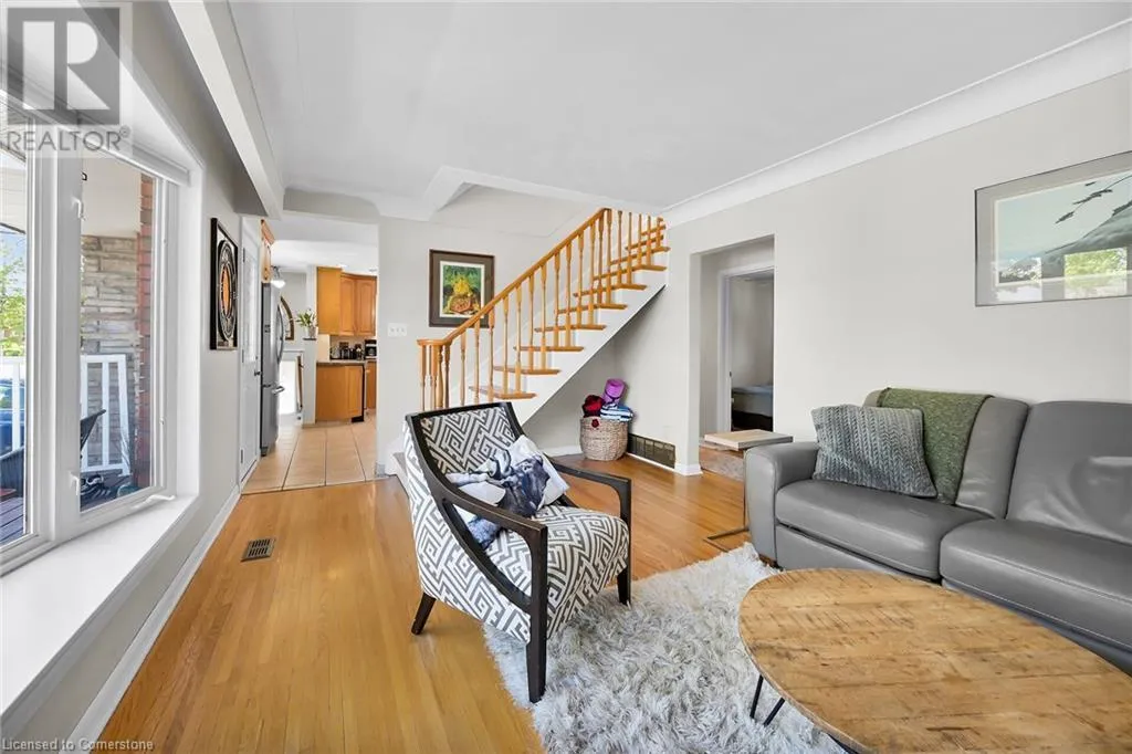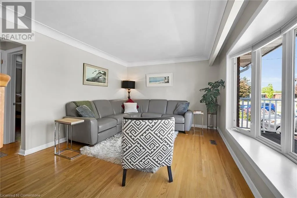 Garth St to Bendamere Ave to West 26th Charming 4-bedroom, 2-bath 2-storey home in highly sought after Hamilton West Mtn location. This home offers plenty of space for todays growing family. Main floor includes large eat-in-kitchen with ample cabinetry, spacious living room, two bedrooms, 3pcs bath and den with patio doors to rear yard deck & hot tub. Two second floor bedrooms and a large basement rec room with fireplace and bar, second bathroom plus storage make this home perfect for families looking for comfort, convenience and functionality. Front/side drive can accommodate parking for 5, plus one in the detached garage. This home is bright and welcoming, features hardwood floors, spacious rooms, and plenty of natural light all in a family friendly neighbourhood. Close to schools, parks, transit, shopping and highway access. (id:27476)