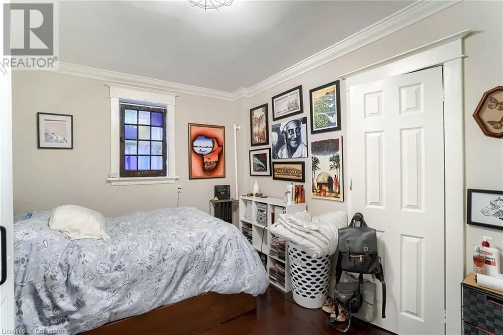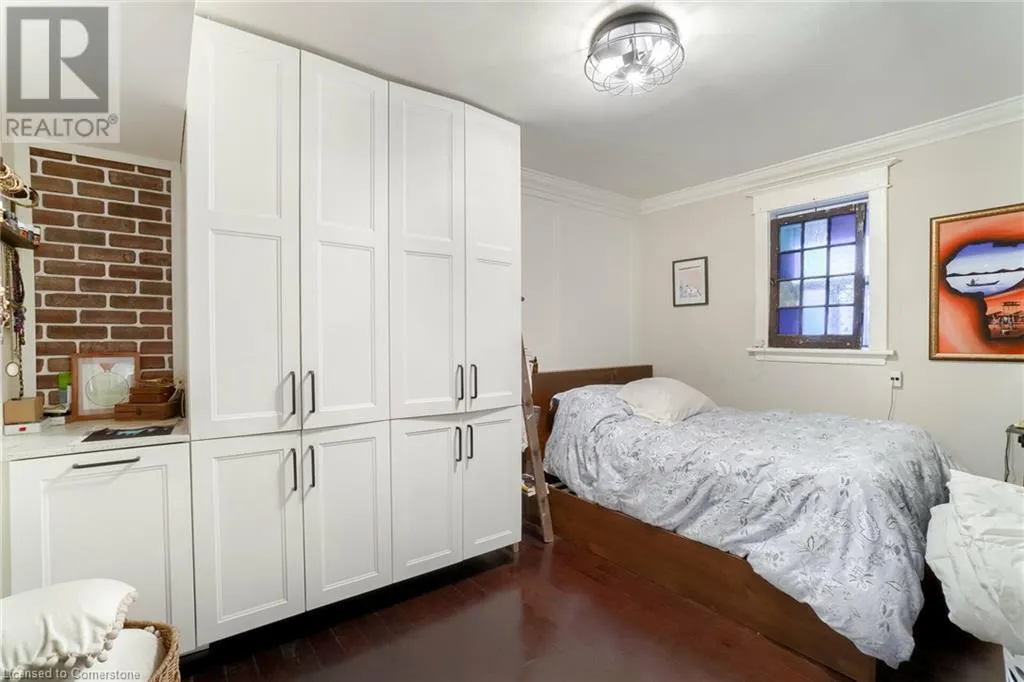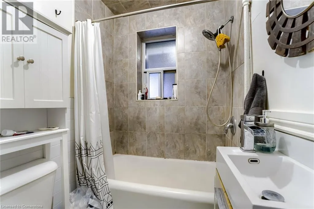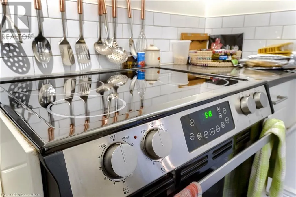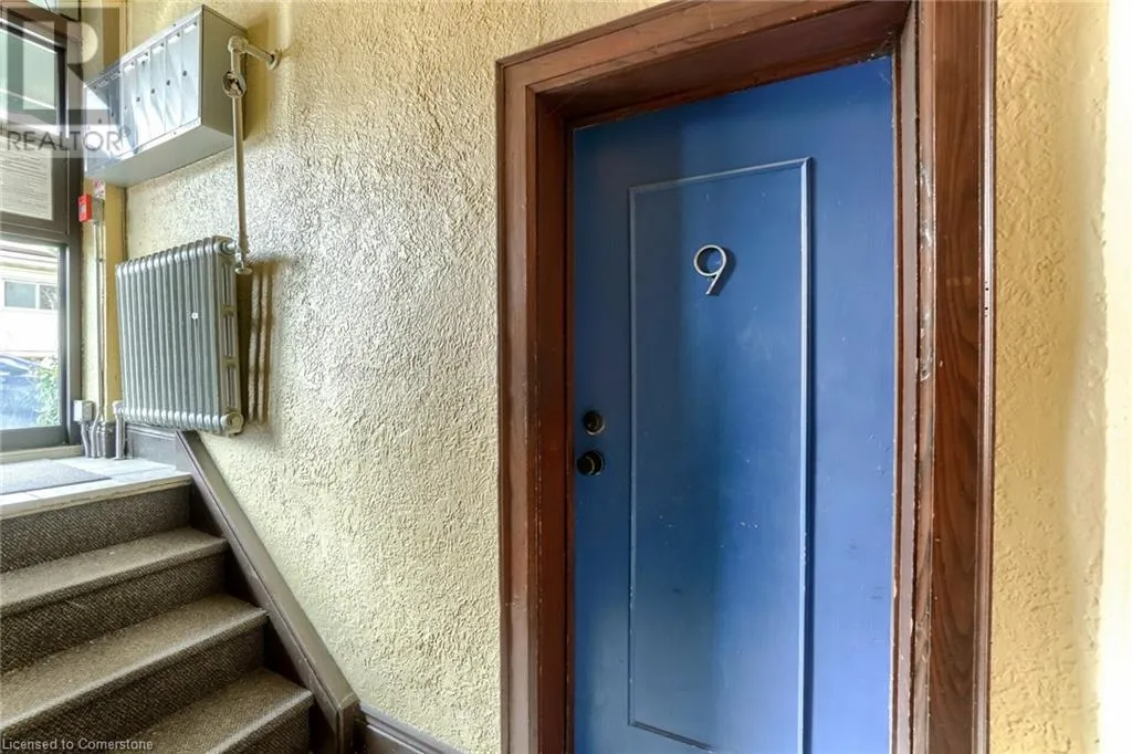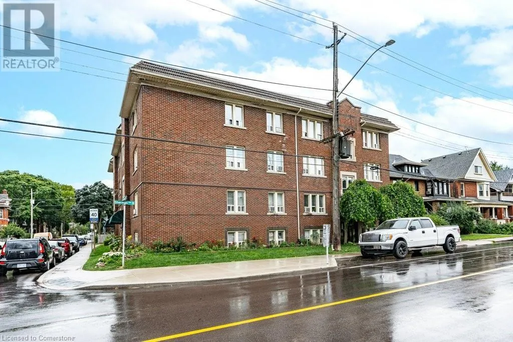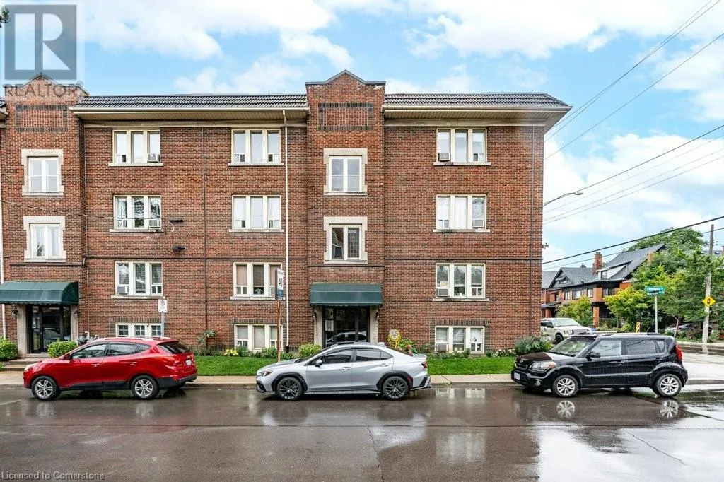 E on Main St E, N on Sherman Ave S, E on Vineland Ave This affordable condo in Hamilton's Gibson / Stipley South offers an incredible opportunity to enter the market. This fully renovated & updated 1 bedroom, 1 bathroom unit features incredible built-in storage, hardwood floors, & high-ceilings. Enter into the living room to be greeted by the white brick ornamental fireplace with bright oversized windows allowing significant light to fill the space, and convenient built-in storage offering ample space to tuck away coats & shoes. The updated 4pc bathroom with marble floors and the modern & sleek galley kitchen offers great functionality with a bistro-dining area, stainless steel appliances & white cabinetry. The large wardrobe in the primary bedroom offers fantastic storage. Condo fees include heat & water. Shared laundry conveniently located in the building & close to the unit. Great opportunity for a first-time home buyer or investor looking for a low-maintenance, move-in ready property. Fabulous proximity to shops, public transit, Playhouse Cinema, Tim Hortons Field & more. (id:27476)