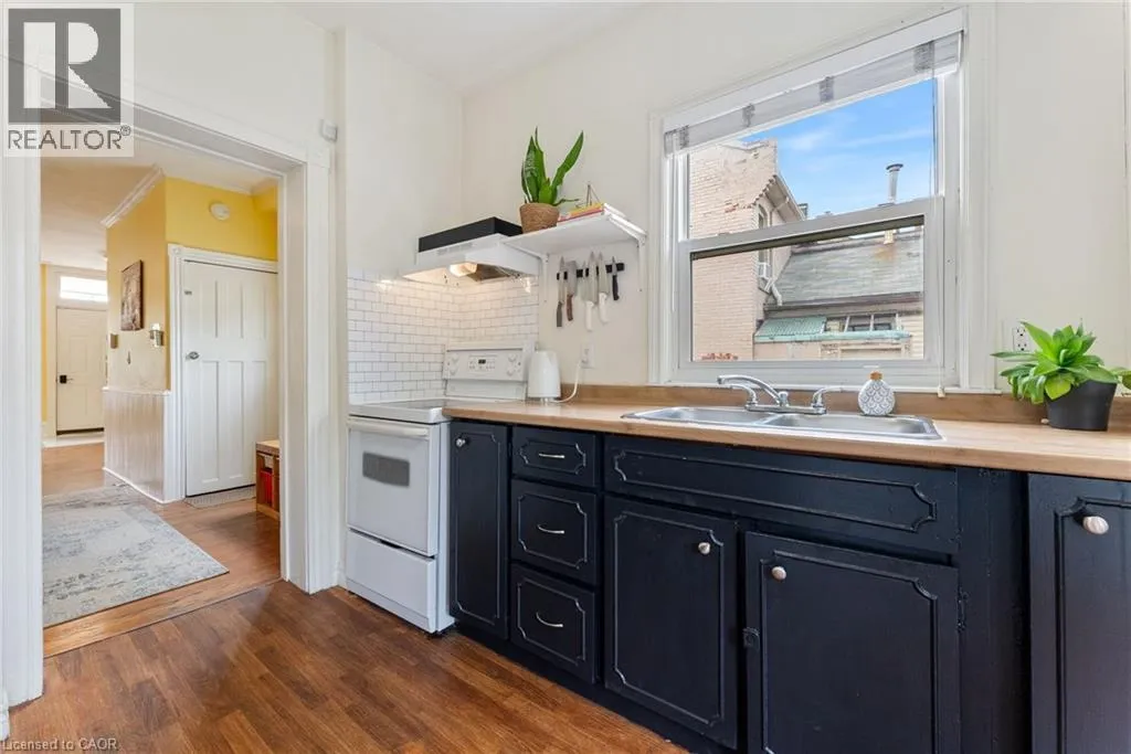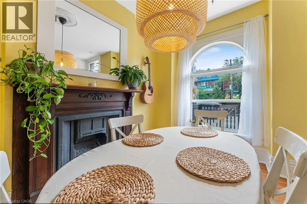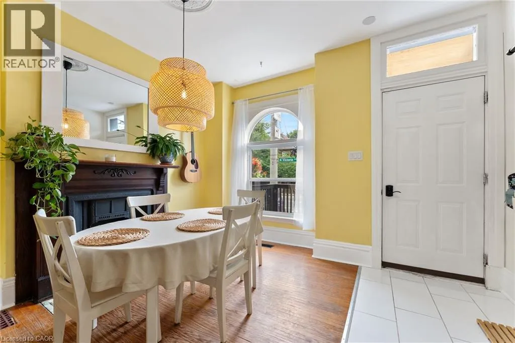 Northwest corner of Victoria Ave N & Evans Street Located in the heart of Hamilton, 137 Victoria Avenue North offers a rare bonus in the cityâparking for two vehiclesâand a perfect blend of modern updates and timeless character. The sun-filled main floor features original hardwood floors, a unique fireplace, cast iron grates, and a classic transom window that hint at the home's rich history. A thoughtful 2018 renovation added a modern kitchen, 2-piece powder room, and upgraded windows for enhanced comfort and style. Upstairs, enjoy the convenience of second-floor laundry, just steps from the bedrooms. The third-floor primary retreat provides a quiet escape, complete with a nook ideal for a home office or reading space. With full-home insulation completed in 2022, this home is move-in ready, efficient, and full of charm. Donât miss your chanceâbook your showing today! (id:27476)
