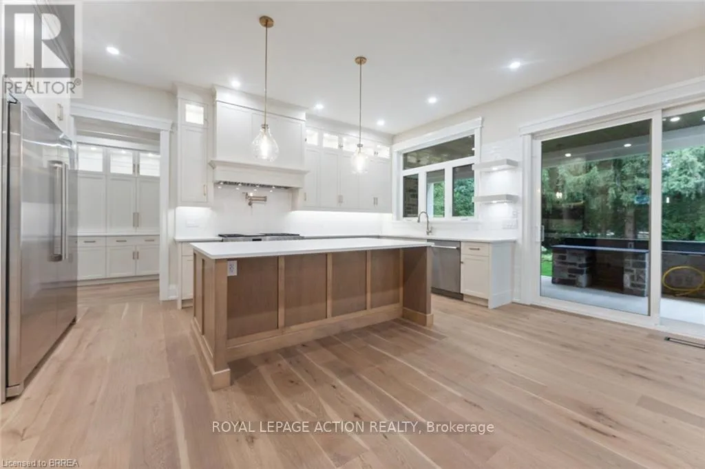Cross Streets: Fiddlers Green/Douglas Road. ** Directions: Fiddlers Green Road to Douglas Road, right onto St. Margarets Road. LOCATION! This elegant, stunning custom-built home by one of Ancaster's premier builders is located on one of the most sought after streets in the city. With 4 bedrooms and 7 bathrooms, this luxury build nestled on a quiet, dead end street adjacent to the Hamilton Golf & Country Club, offers the epitome of luxury living. Craftsmanship and attention to detail and design are obvious when you see the spectacular chefs kitchen, 10 foot ceilings, oversize doors, mouldings and over 4100 sf of primary living space. The family room features a gorgeous coffered ceiling, gas fireplace and overlooks the rear patio and private backyard. The kitchen offers custom cabinetry, high end stainless steel appliances, and a full servery with loads of additional storage and a functional transition to the walk- in pantry, glass wine room and formal dining room. A separate mud room with additional entrance, a den/office/library, and two stunning bathrooms complete this main floor space. Gorgeous, oversized windows flood each room with beautiful natural light, and blonde oak hardwood flooring runs throughout the home. Upstairs you'll find 4 bedrooms, each with ensuites and walk-in closets, including a stunning primary featuring fireplace, sitting area, custom closet and stunning 4 piece ensuite with double sinks and soaker tub. A large laundry room is also conveniently located on the upper level. The finished basement doesn't feel like a basement at all, with plenty of natural light and 9 foot ceilings. Offering an additional 2000 sf of entertaining space with a massive recreation room featuring bar, fireplace and glass partition wall, home gym, additional 4 piece bath, storage and walk up to the extra large garage. The backyard is a true oasis with mature trees and covered patio featuring fireplace and outdoor kitchen. The heated double car garage with additional overhead door which allows access to the backyard is the perfect final touch. No detail has been overlooked (id:27476)